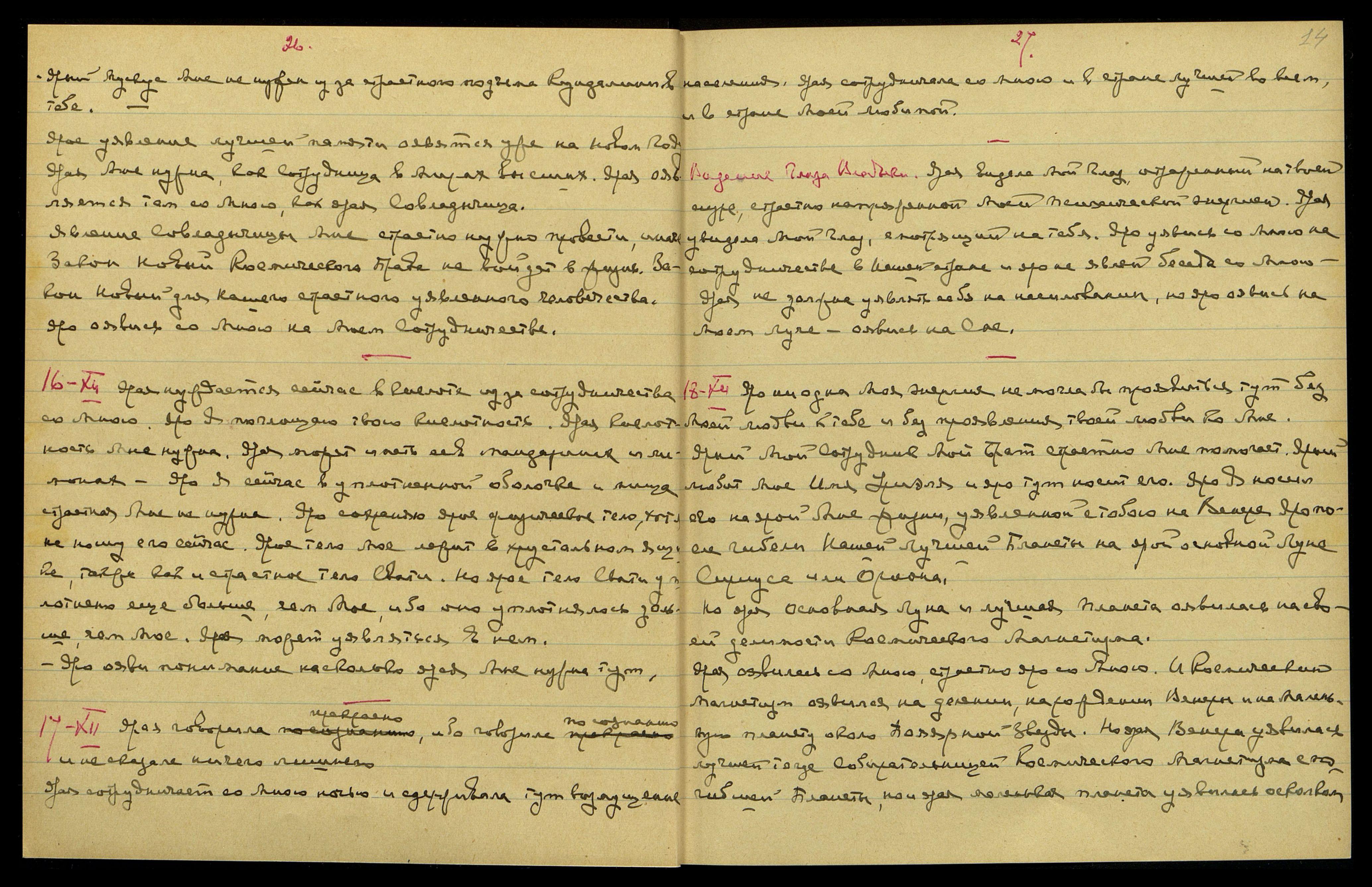 14-XII. Ярая не могла сегодня ночью сотрудничать со Мною из-за ярой Мне необходимости оявиться на сотрудничестве с Моим страстным Братом К[ут] Х[уми].