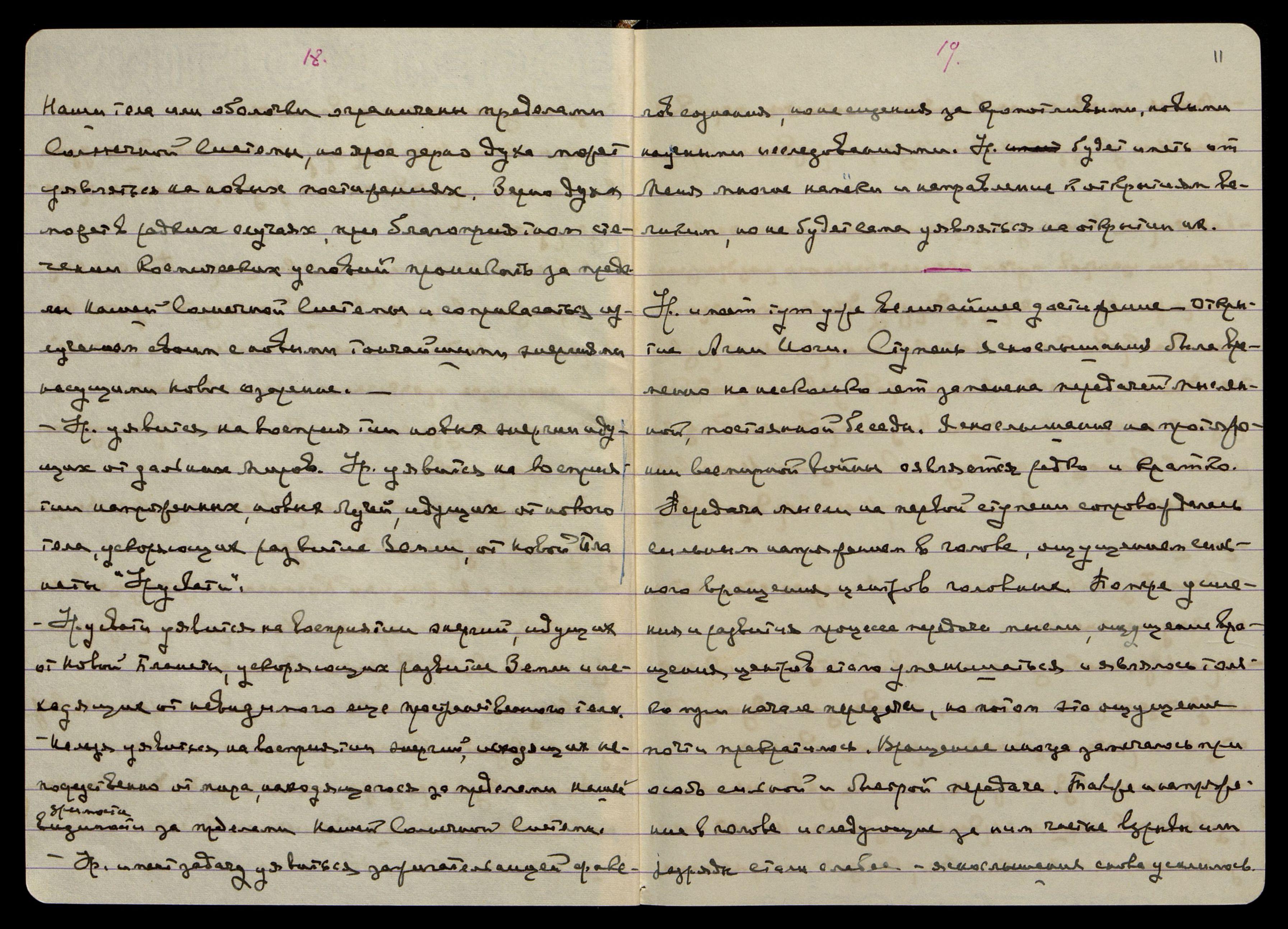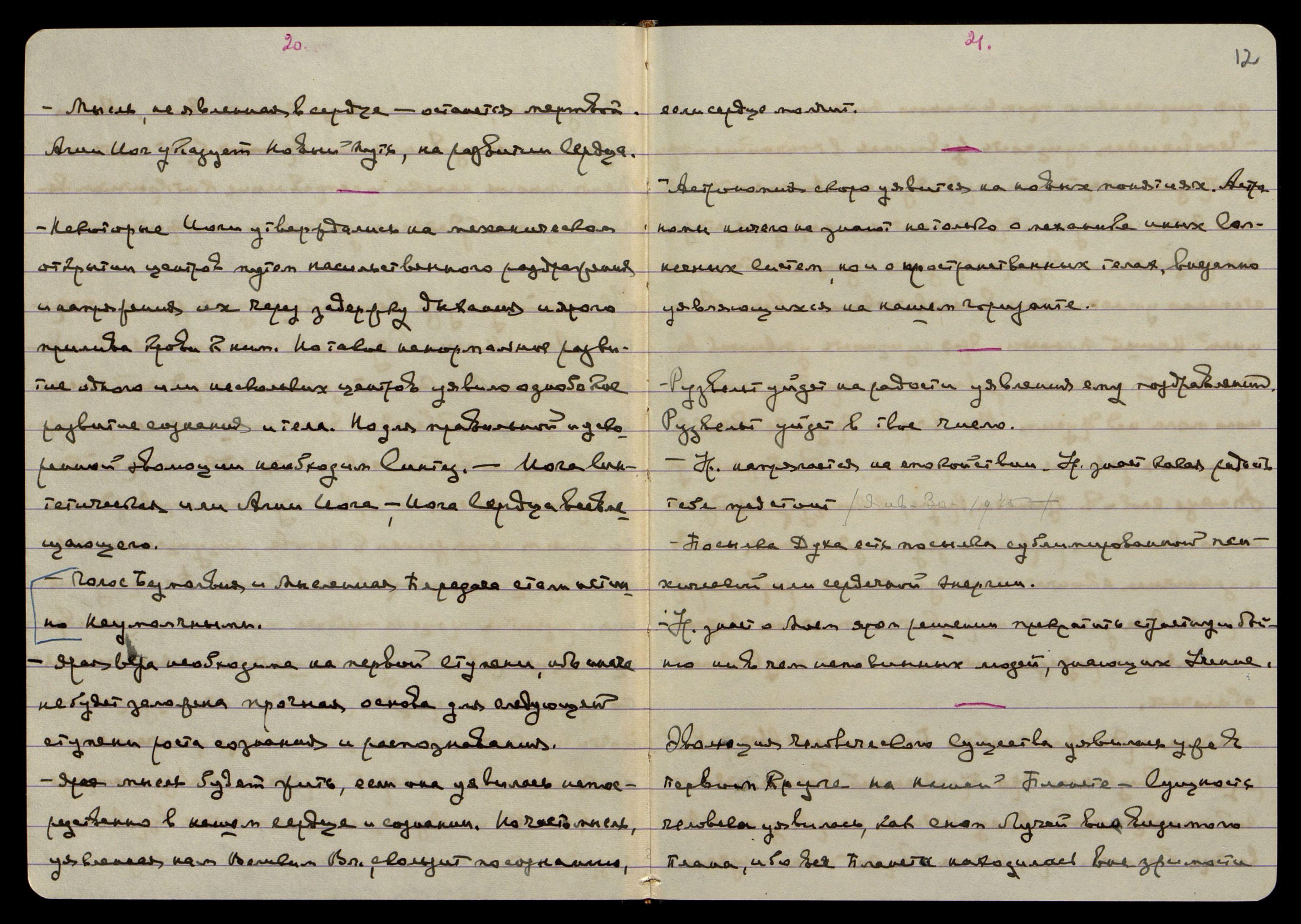Ярая мысль будет жить, если она уявилась непосредственно в нашем сердце и сознании. Но часто мысль, уявленная нам Великим Вл[адыкой], скользит по сознанию, если сердце молчит.