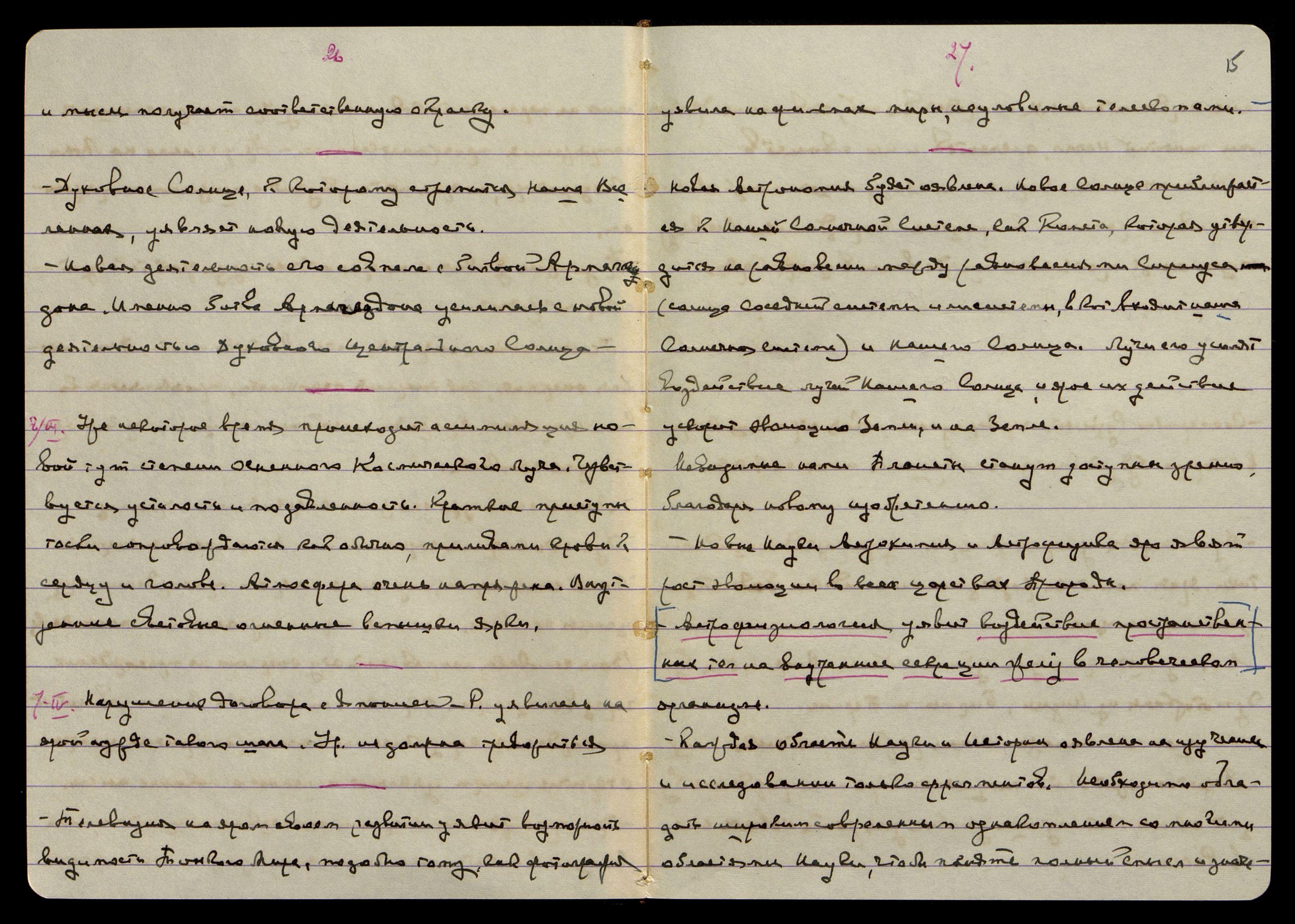 Новая Астрономия будет оявлена. Новое Солнце приближается к Нашей Солнечной Системе, как Комета, которая утвердится на равновесии между равновесиями Сириуса (солнца соседней системы или системы, в кот[орую] входит наша Солнечная система) и нашего Солнца. Лучи его усилят воздействие лучей Нашего Солнца, и ярое их действие ускорит эволюцию Земли и на Земле.