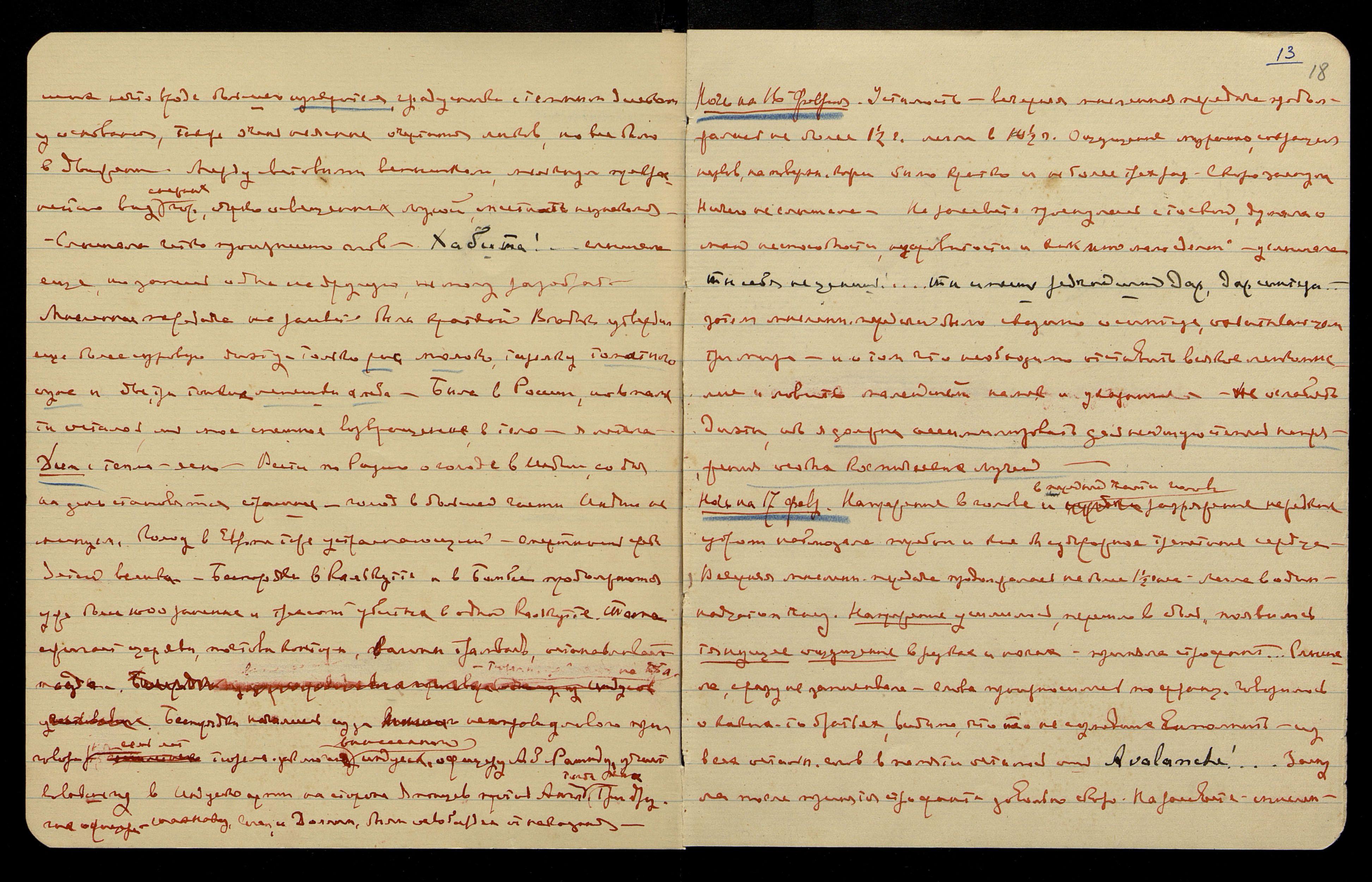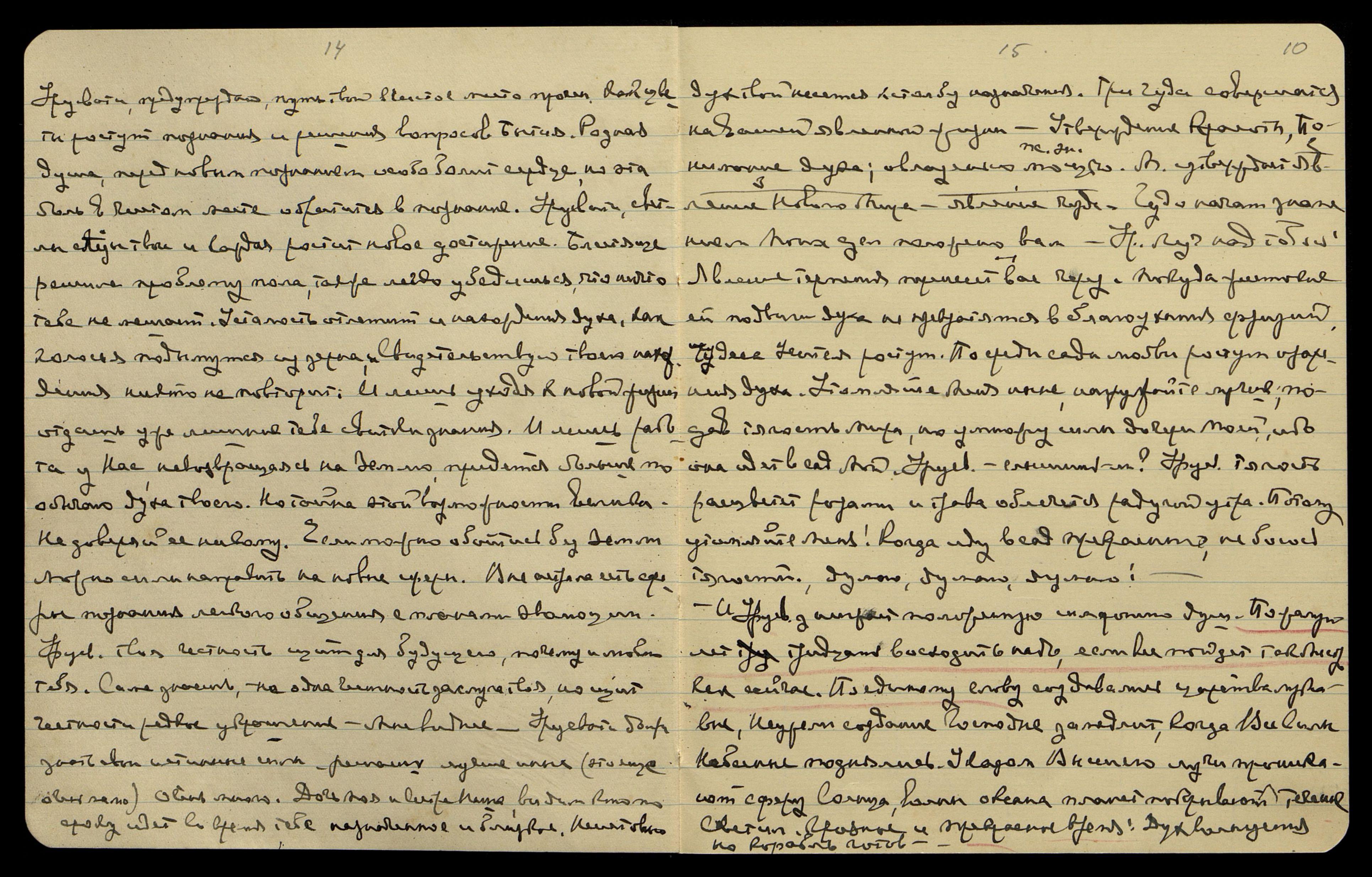 Ночь на 17 февр[аля]. Напряжение в голове и в передней части головы, разряжения нередкие, утром наблюдала перебои и как бы судорожное трепетание сердца. Вечерняя мысленн[ая] передача продолжалась не более 1 1/2 часа. Легла в одиннадцатом часу. Напряжение усилилось, перешло в боль, появилось тянущее ощущение в руках и ногах, приняла строфант... Слышала, сразу не записывала, слова произносились по-франц[узски]. Говорилось о каких-то братьях, видимо, что-то не сумевших выполнить, из всех остальн[ых] слов в памяти осталось лишь: