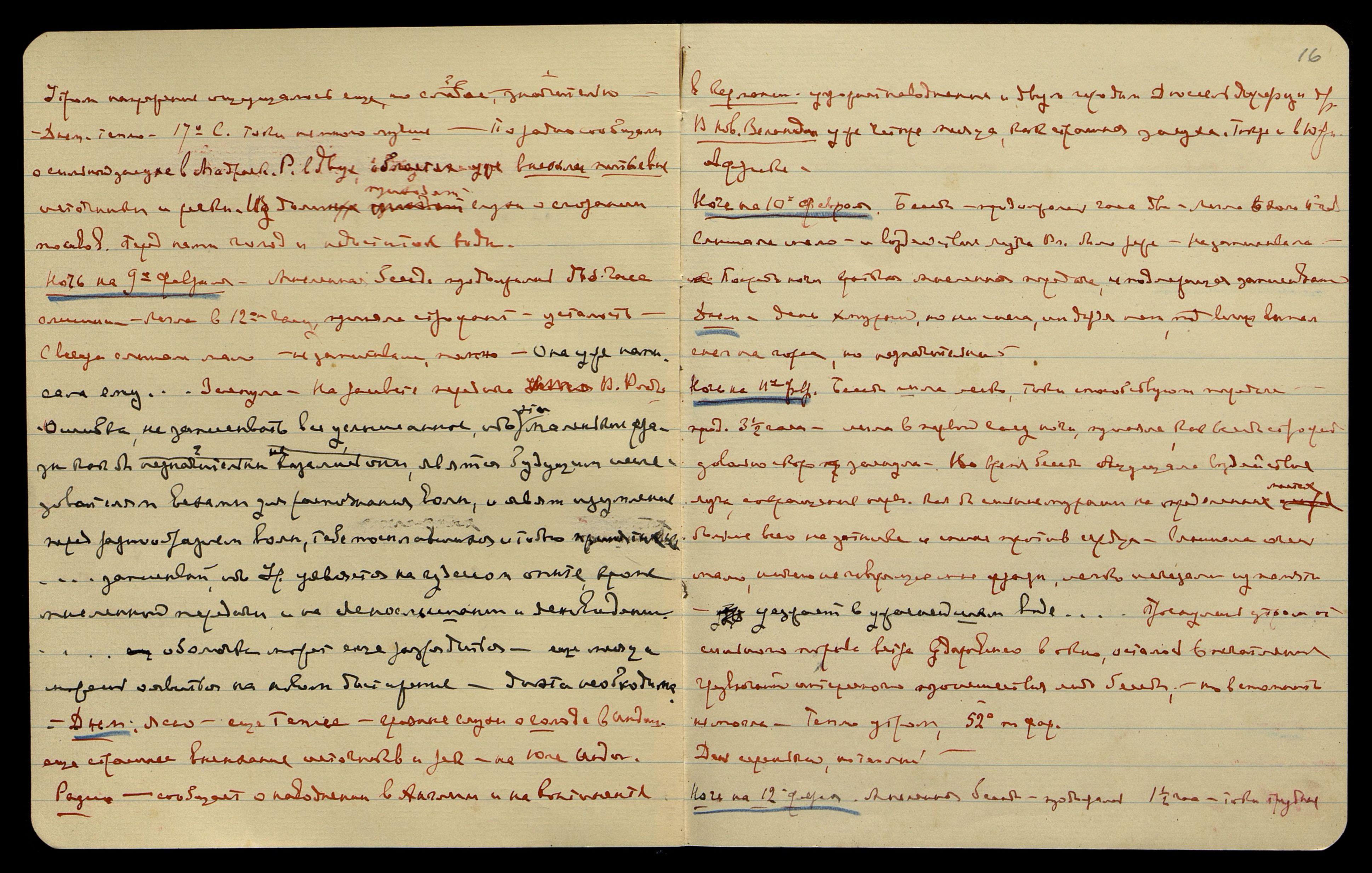 Ночь на 3-е февраля. Легла в начале 12-го ч[аса]. Мысленная передача продолжалась больше двух часов − от 9 до 11 1/2. Сна нет, очень тепло, ночью было 15° по Цельсию. Сообщений было мало, и утром обычная беседа не состоялась из-за необычайных трудных токов и напряжения в атмосфере.
