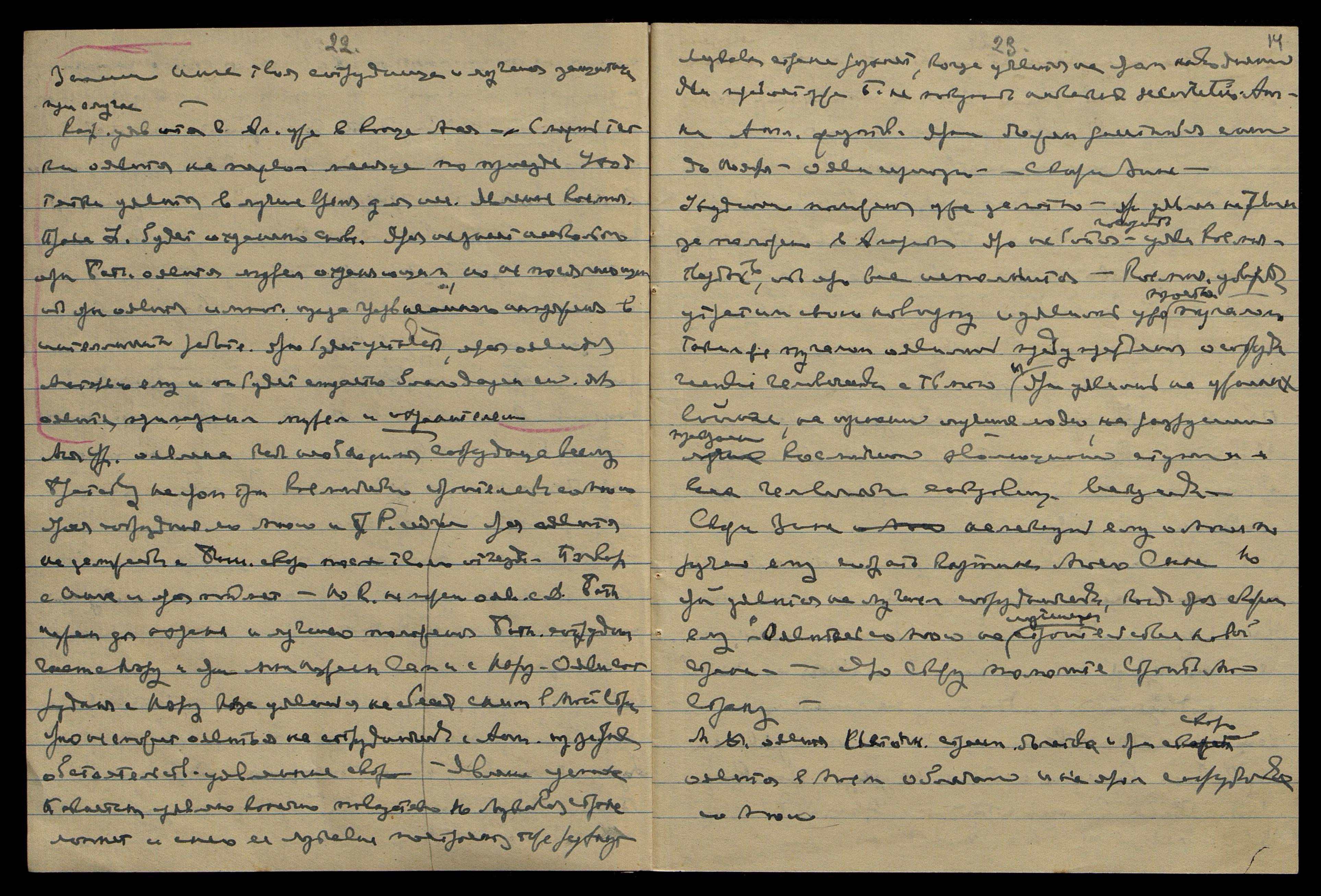 Смерть тётки оявится на первом месяце по приезде. Уход тётки уявится в лучшее время для неё. Явление Космич[еского] Права L[eonides] будет охранено снова. Ярая не знает, насколько ярый Батн[агар] оявится мужем охраняющим, но не посягающим, ибо ярый оявится импот[ентом] из-за чрезвычайного напряжения в интеллигентной работе. Ярый будет уставать, ярая оявится матерью ему, и он будет страстно благодарен ей. Ярый оявится примерным мужем и охранителем.