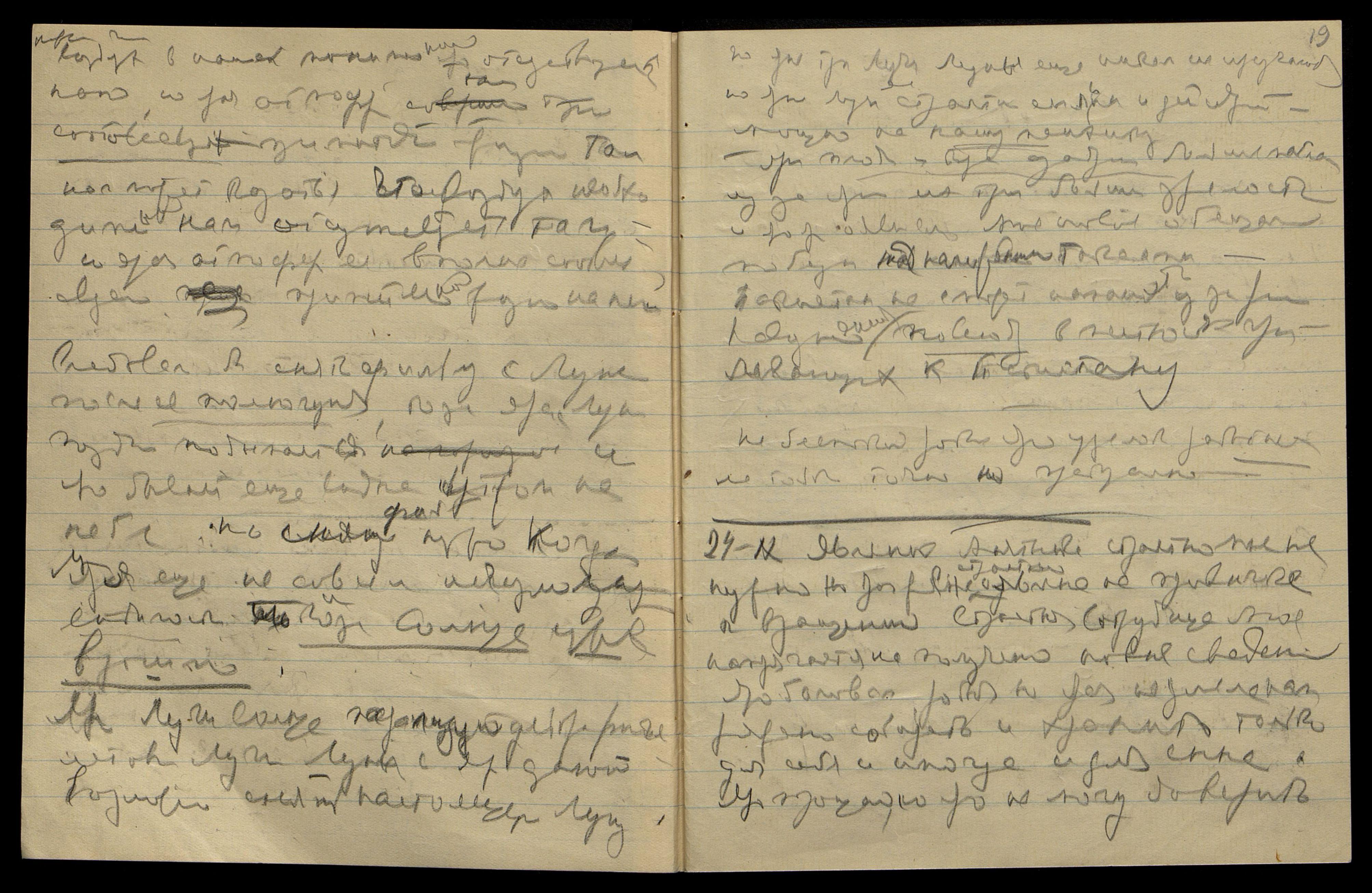 Ярое письмо давалось трудно, ибо ярая должна была писать не то, что нужно, но ярое тут [слово неразборчиво] содержание письма оявилось скомканным из-за ярого им тут оявления космичес[кого] срока. Яро, яро уявись Мне страстн. [слово неразборчиво]. Яро, родная, слышу, чую твой призыв и явлюсь при первой возможности.