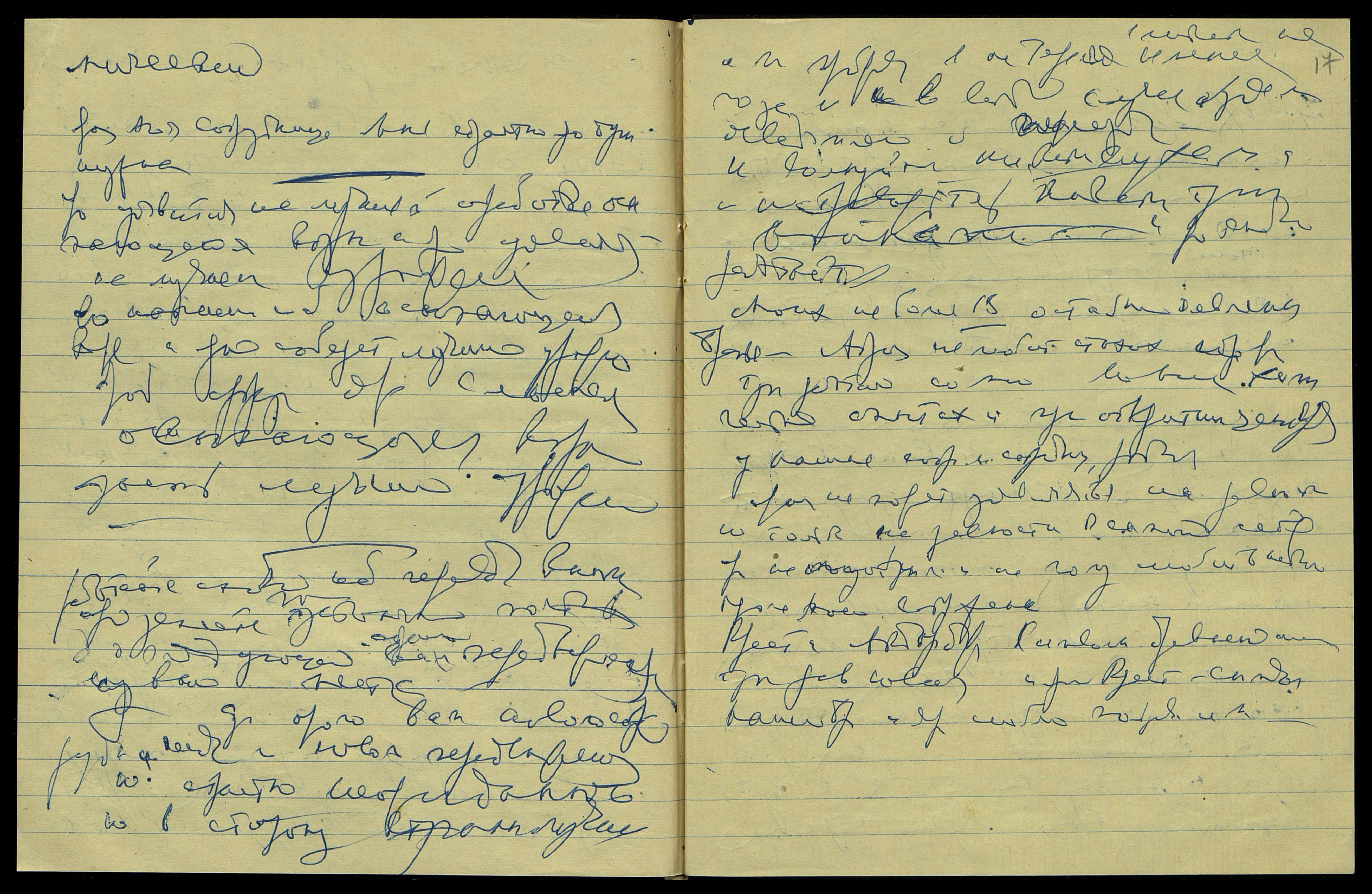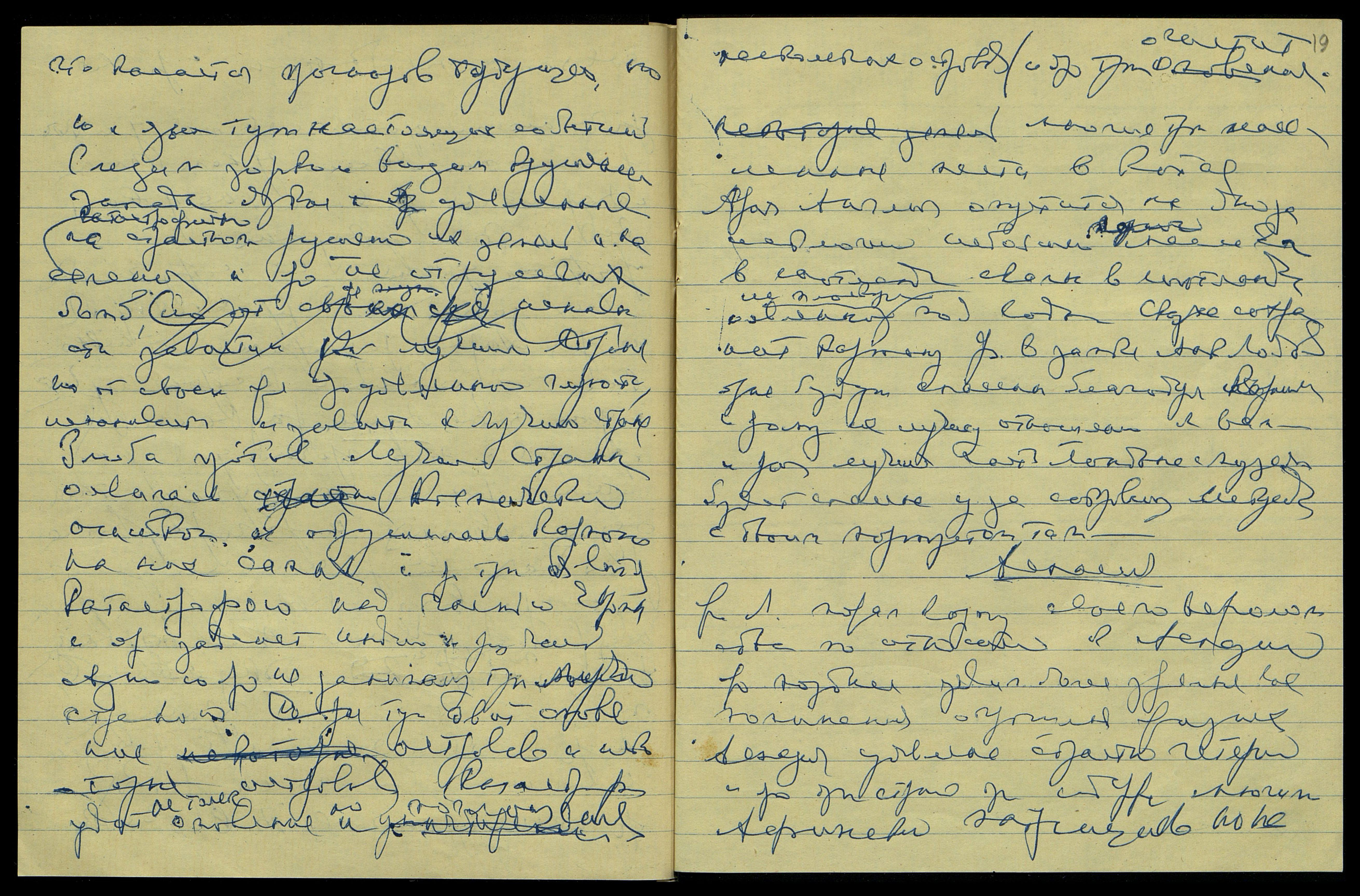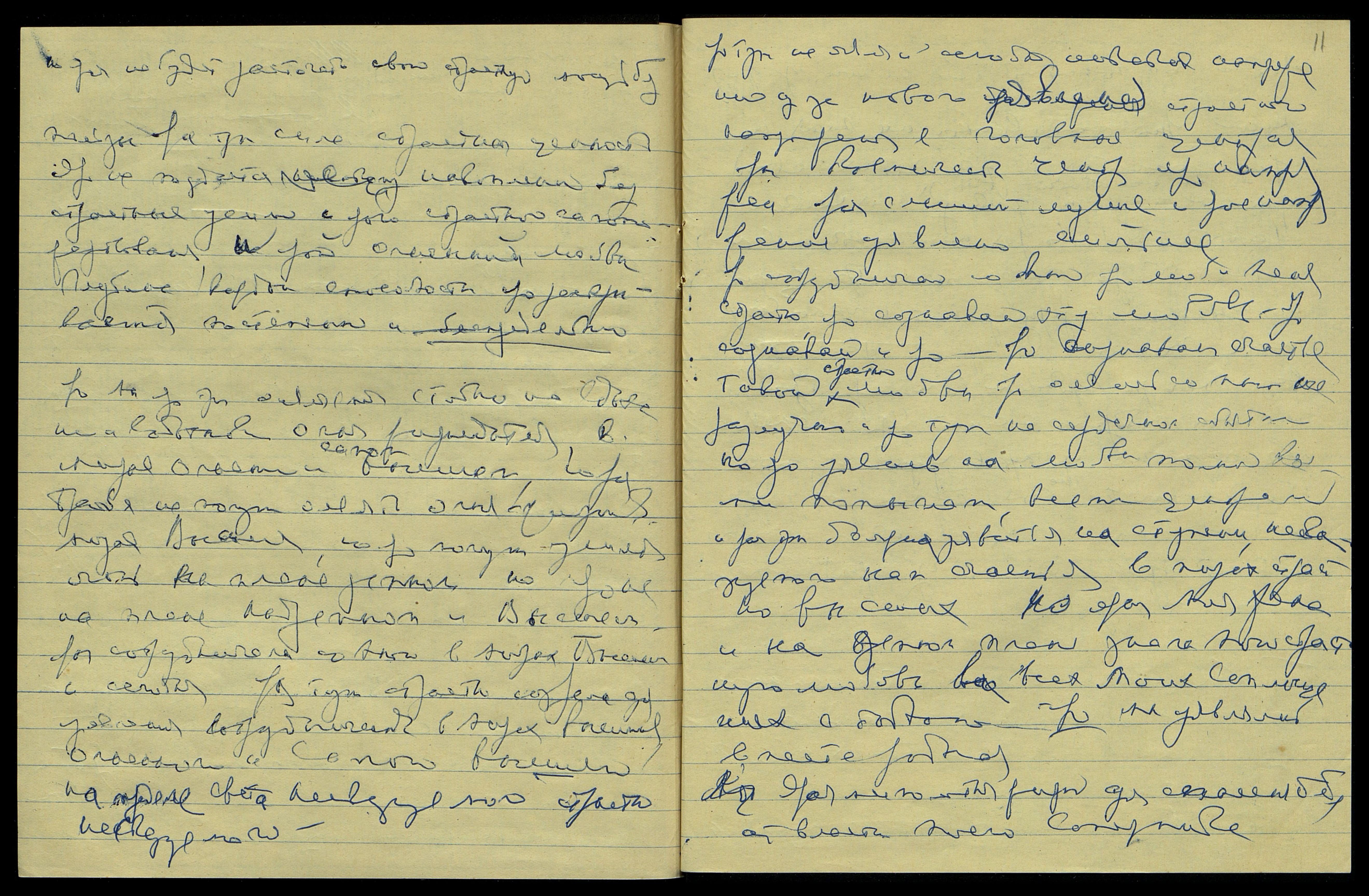 Работайте спокой[но] над переводом Книги, яро успеете закончить почти до страст[ного] вам передвижения из ваш[его] места — до ярого вам нового сотрудничества и нового передвижения, но страстно неожиданного, но в сторону Страны Лучшей, и мы пробуд[ем] в на[шем] Теремке никак не менее года, и во всяком случае, будем осведомлять о переезде.