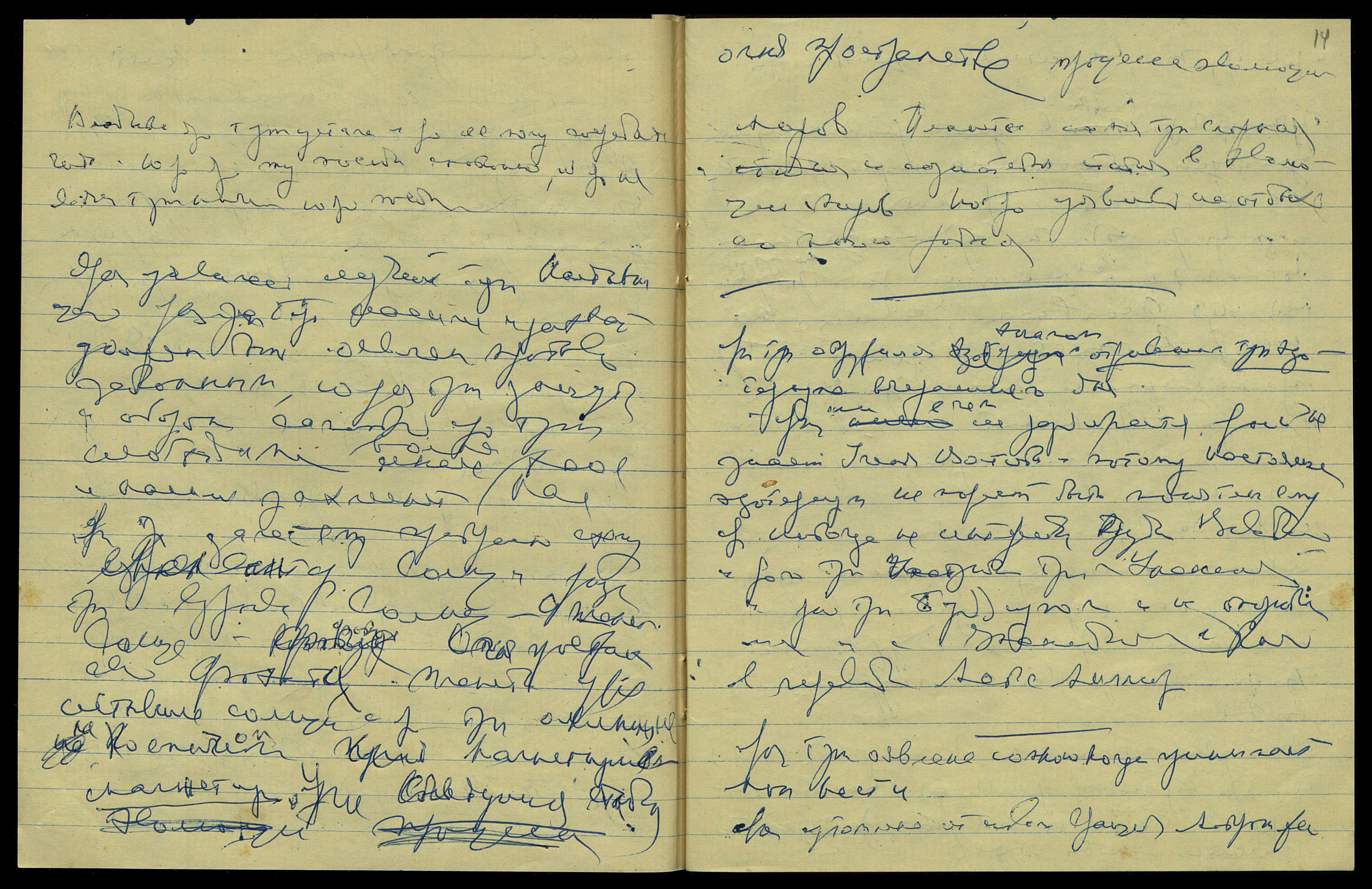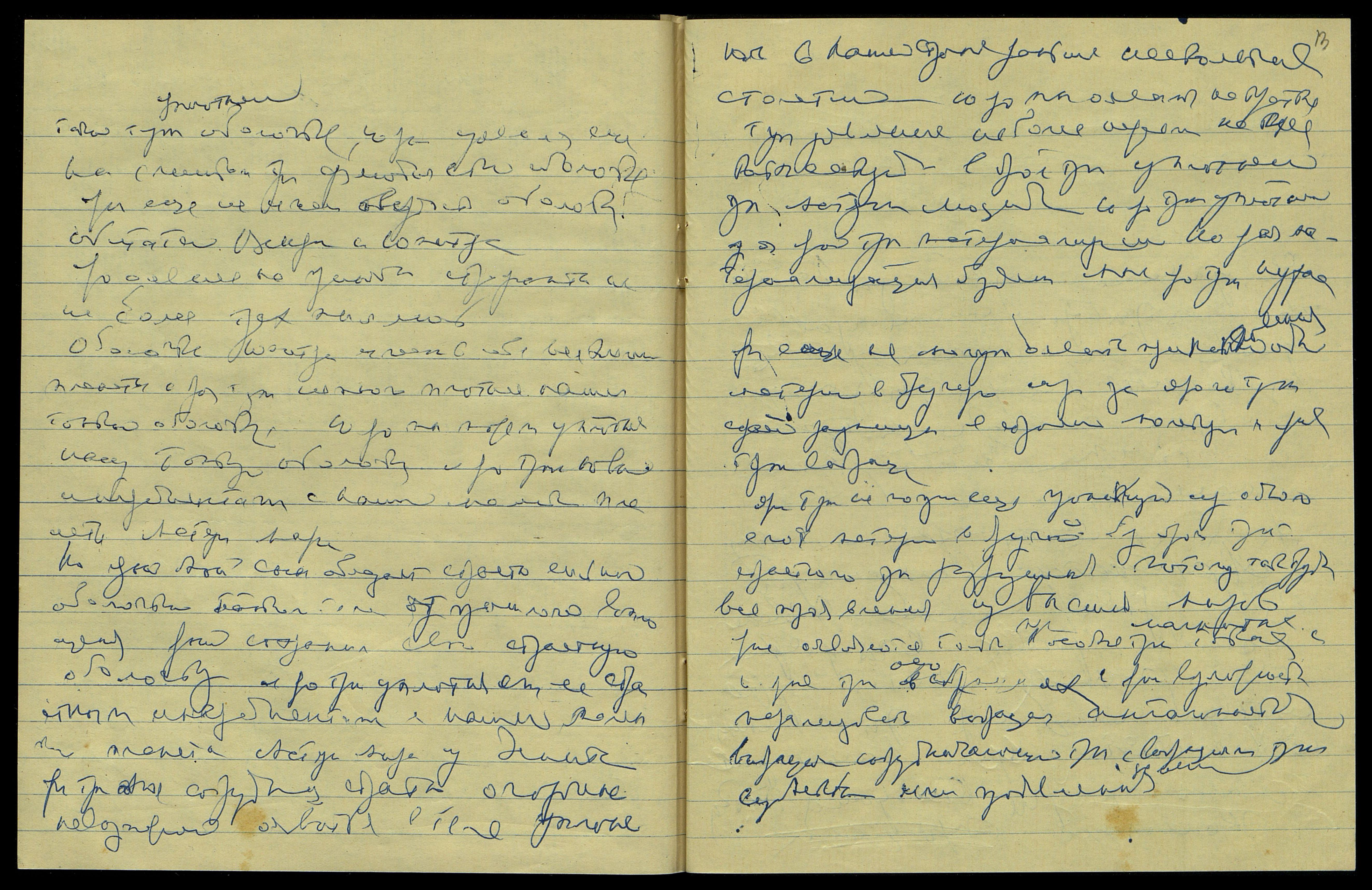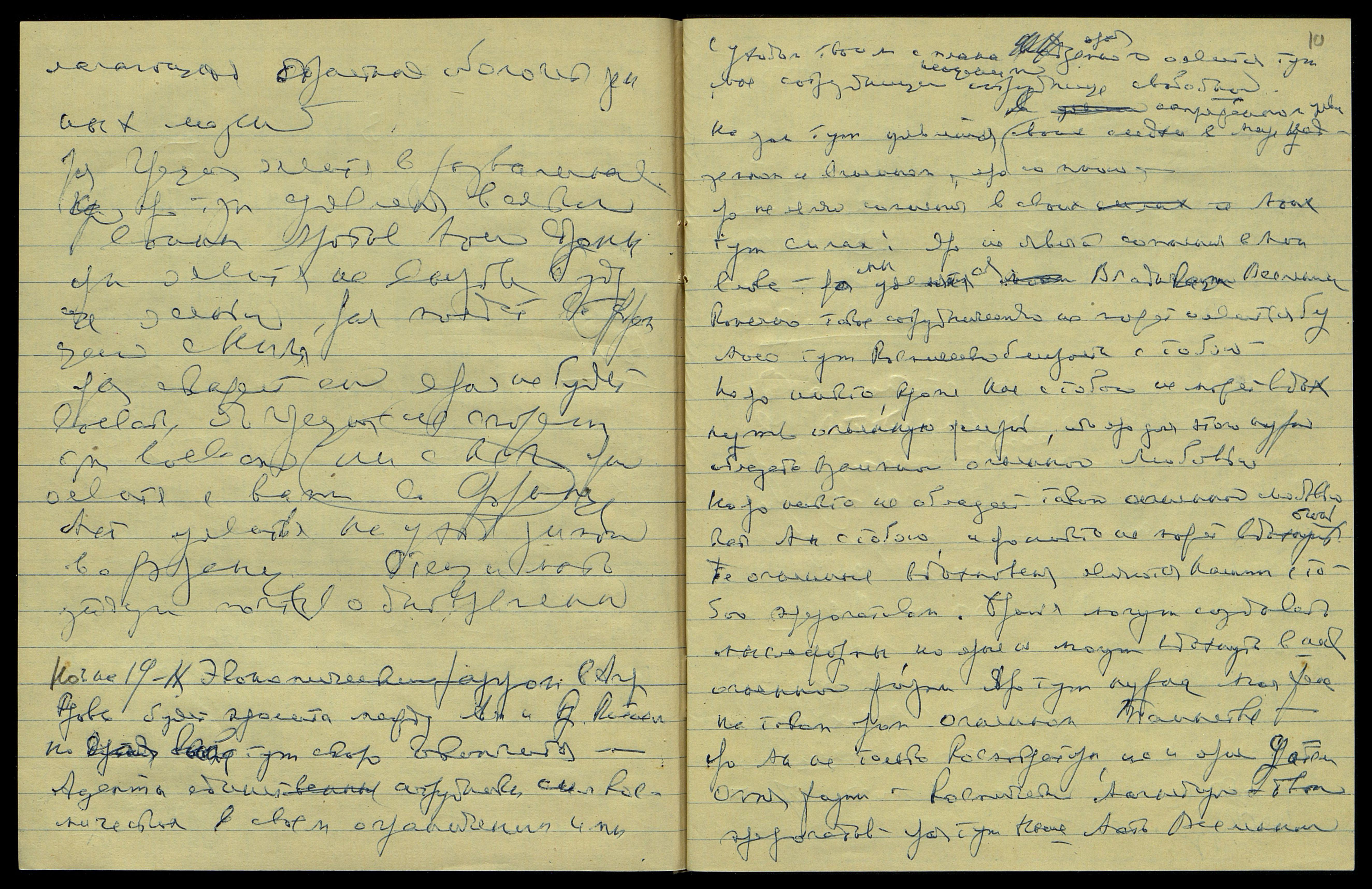 Работайте спокой[но] над переводом Книги, яро успеете закончить почти до страст[ного] вам передвижения из ваш[его] места — до ярого вам нового сотрудничества и нового передвижения, но страстно неожиданного, но в сторону Страны Лучшей, и мы пробуд[ем] в на[шем] Теремке никак не менее года, и во всяком случае, будем осведомлять о переезде.