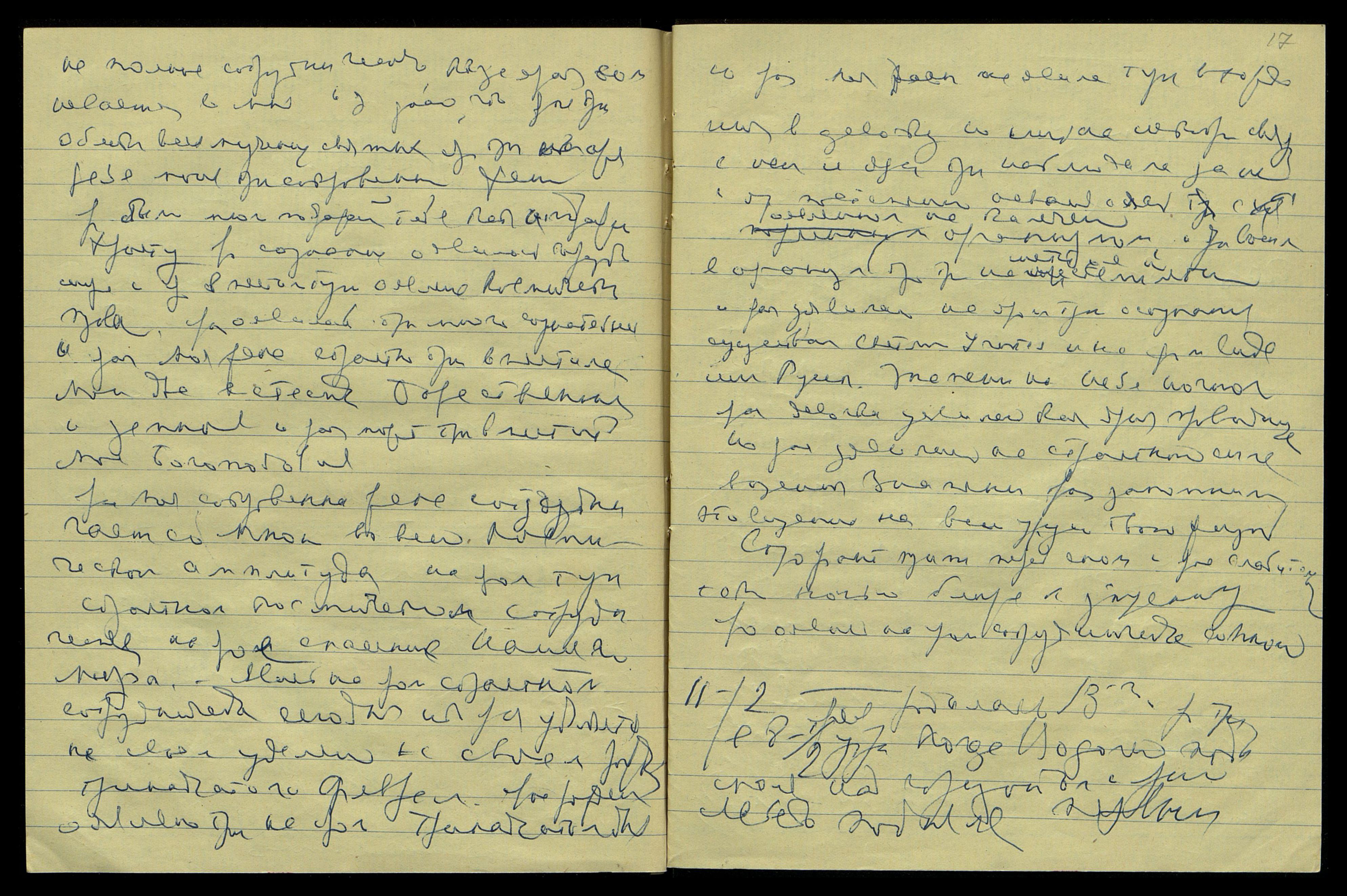 Яро не могу писать подробн[ее] и чаще из-за проявленного интереса к вашему последнему письму. Ярое было определенно вскрыто и заклеено желтой бумагой.