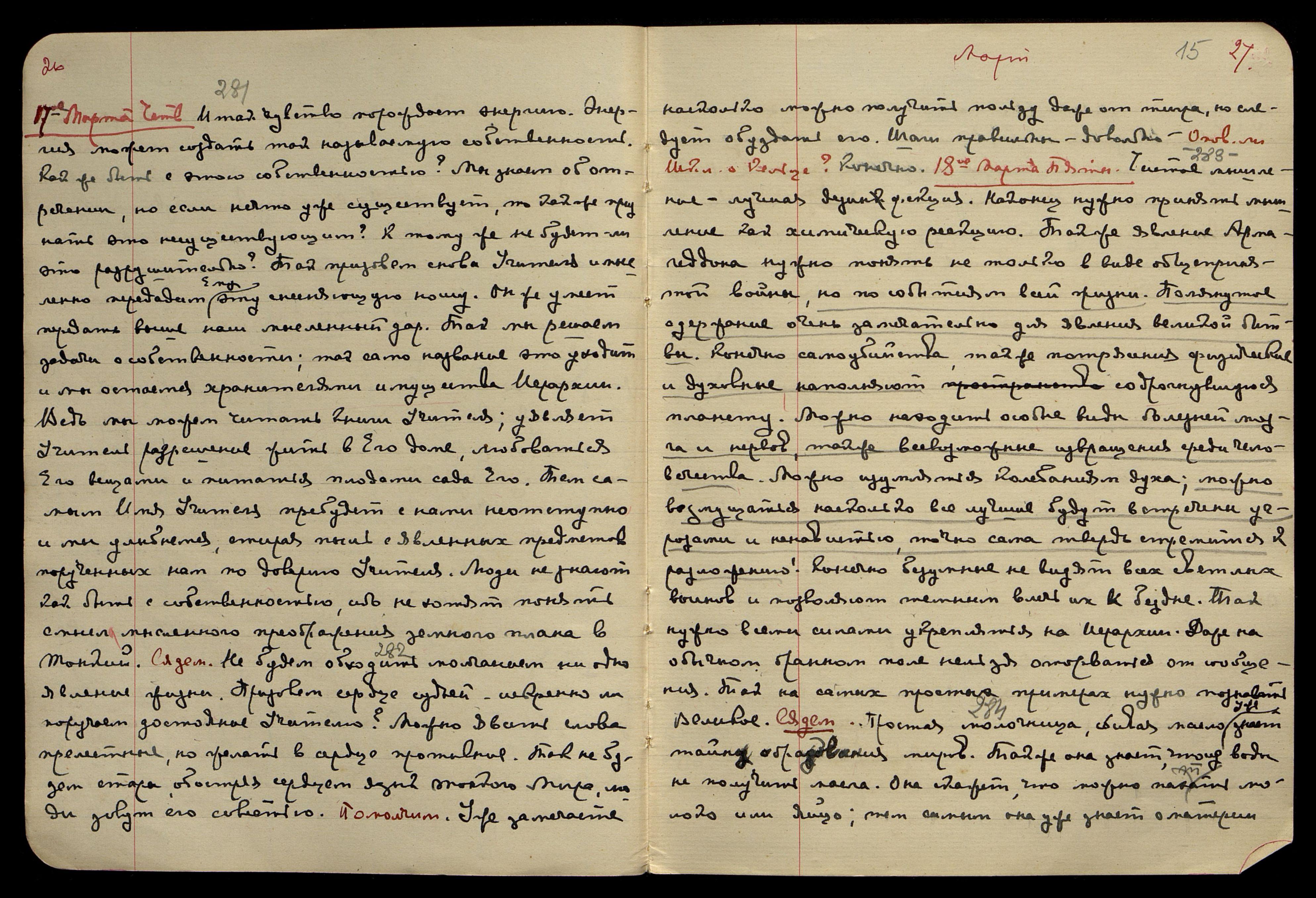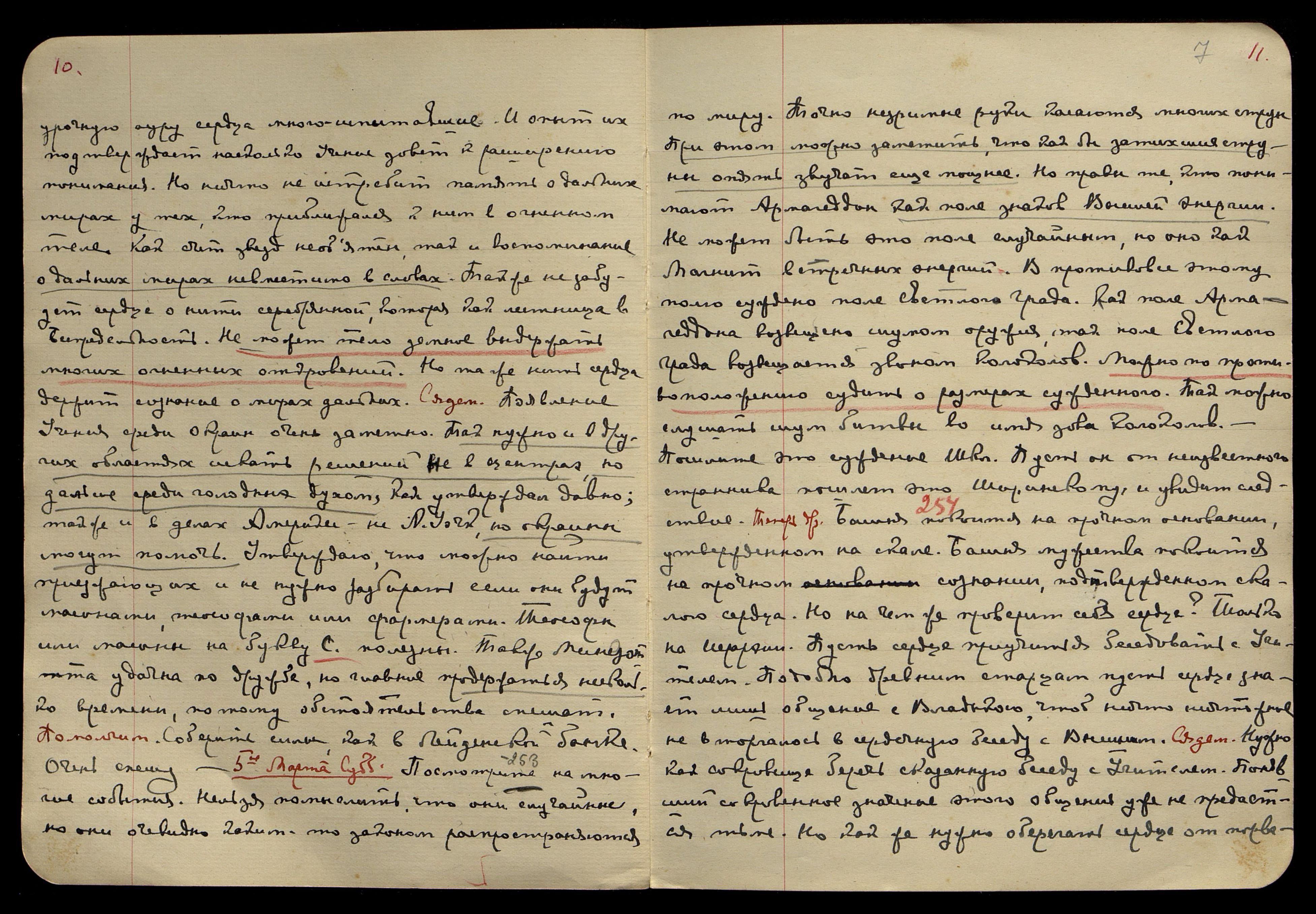 7-ое марта. Понед[ельник]. [Сердце] § 258. Сны могут отражать прошлое и настоящее. Сны могут отражать уже сложившиеся клише будущего. Но кроме этих земных отражений могут быть отражения Тонкого и Огненного