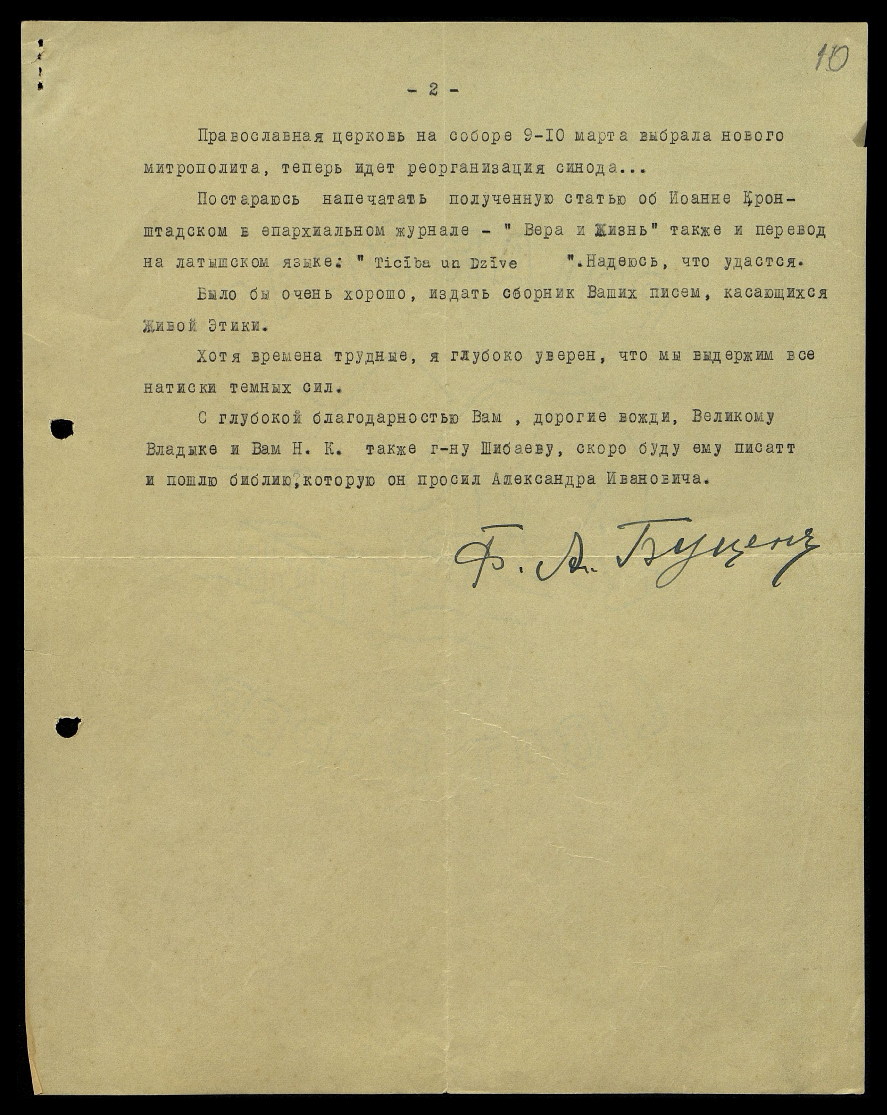 С сердечной благодарностью В[еликому] Владыке и Вам с профессором за светлое Божественное учение, которое освещает все вопросы, и искренним уважением.