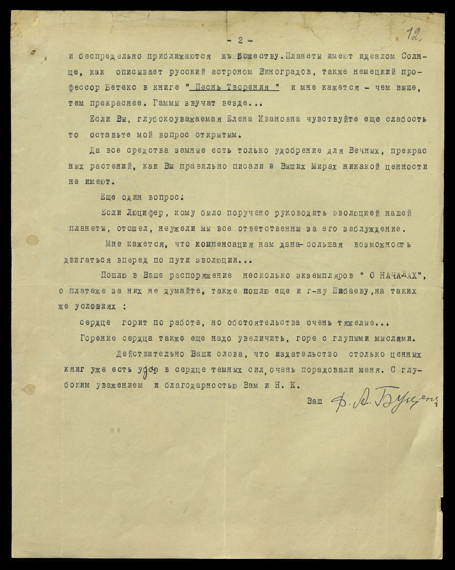 Re: Письма Ф.А. Буцен к Е.И. Рерих