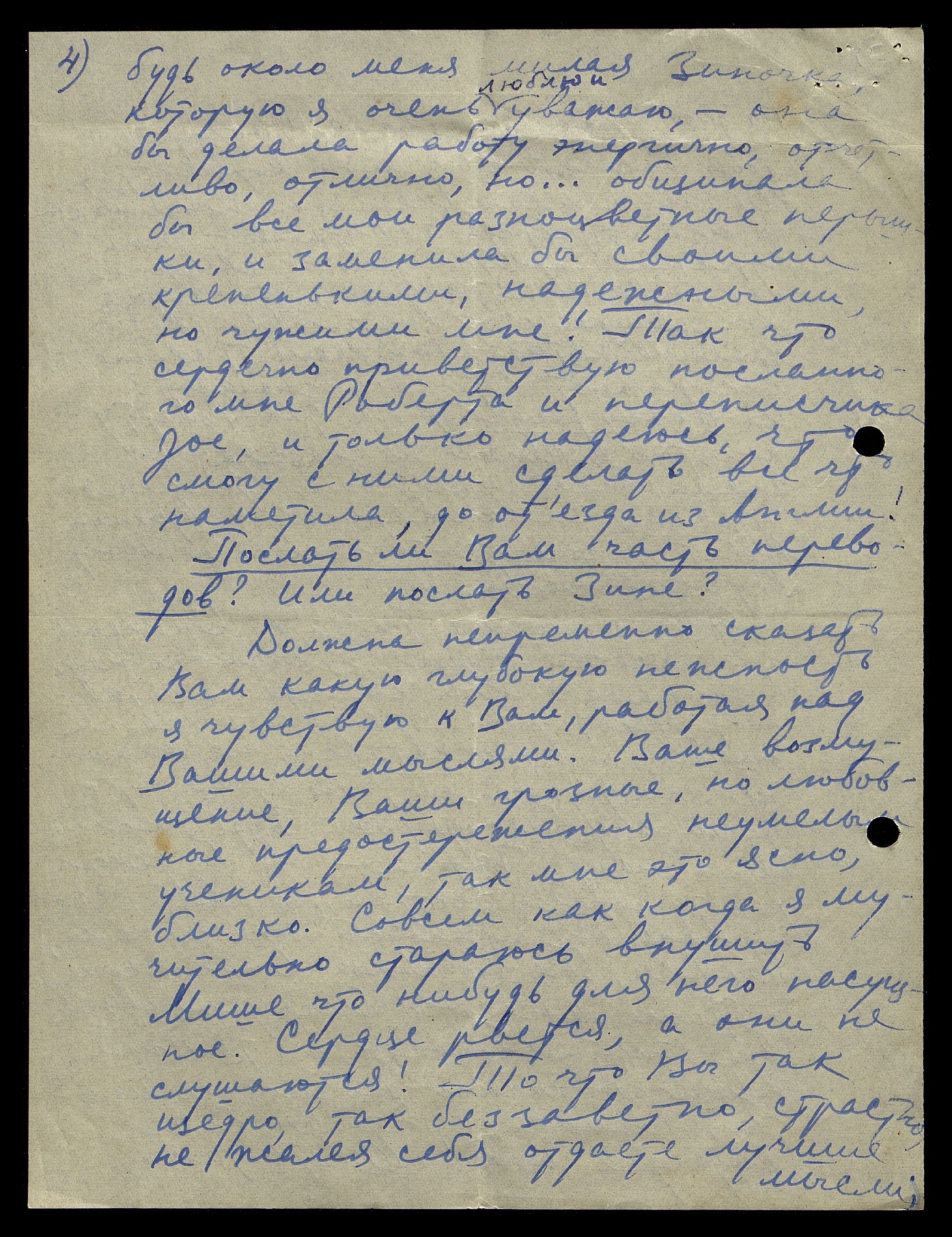 Послать ли Вам часть переводов? Или послать Зине?