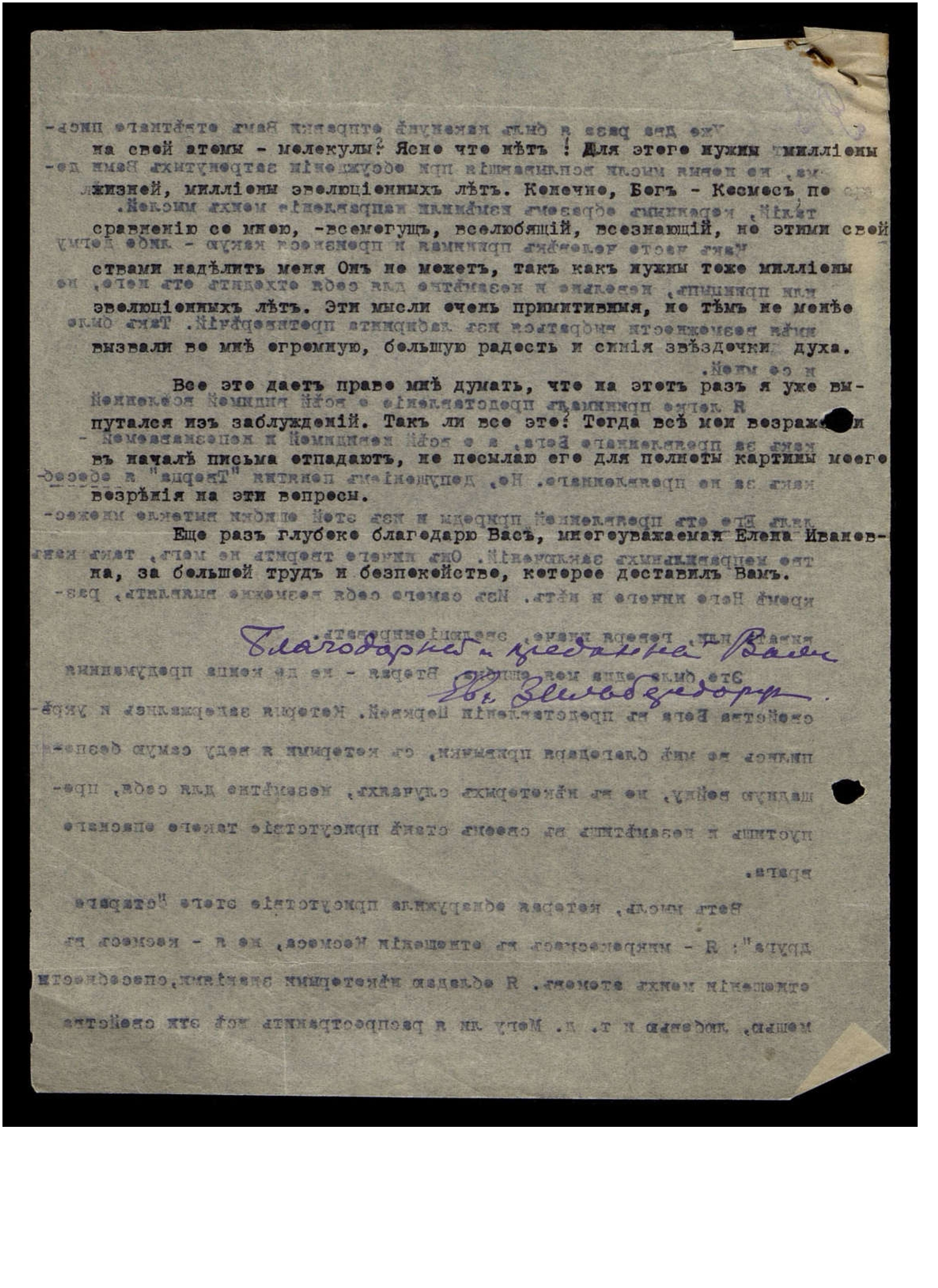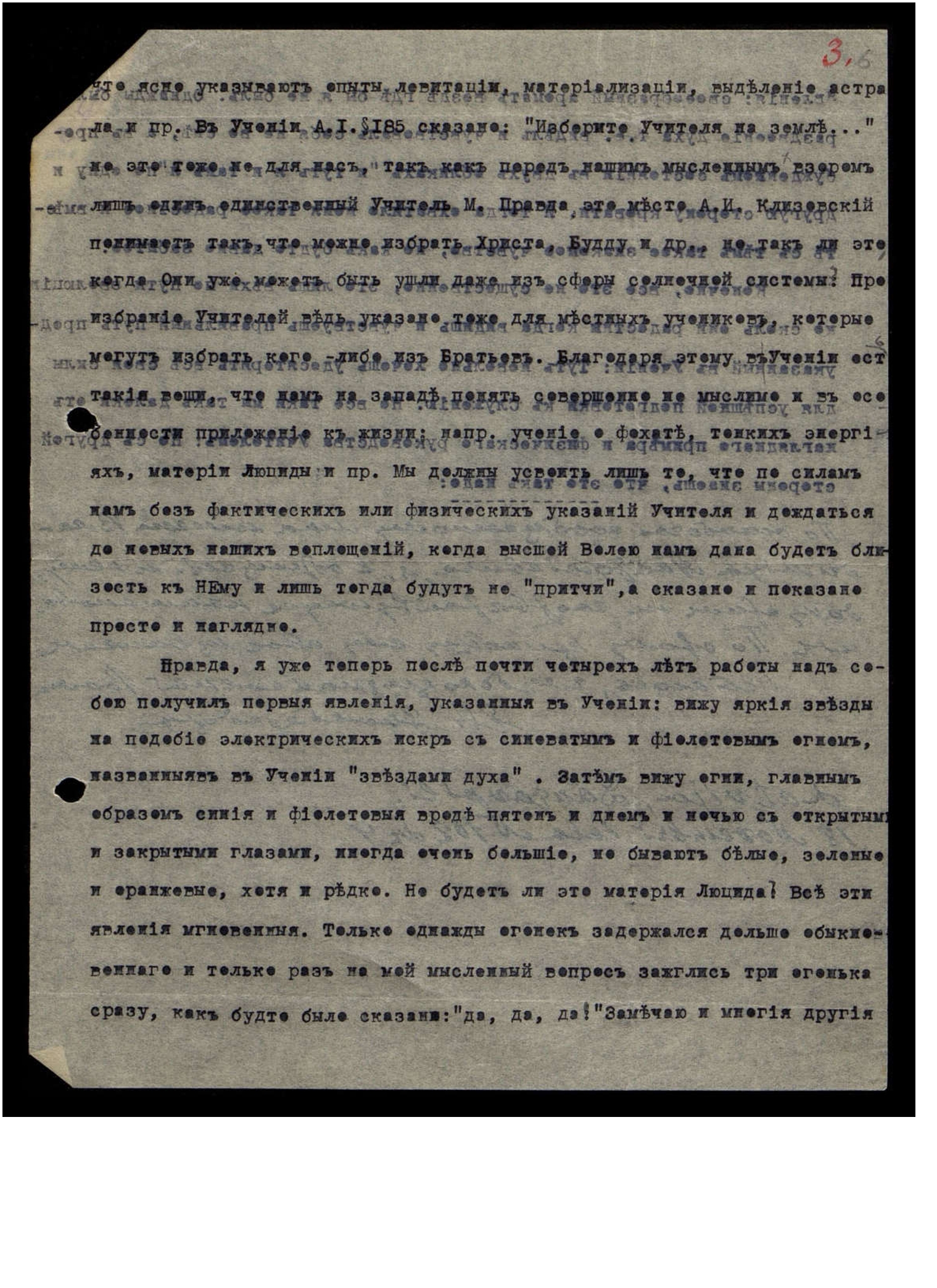 Быть может Вас будет интересовать не взгляды, выраженные там, но тот большой интерес [несколько слов неразборчивы] голодом духовным у людей, но связанность сознания которых, ложными понятиями и привычками задерживает нарождение новой эпохи.