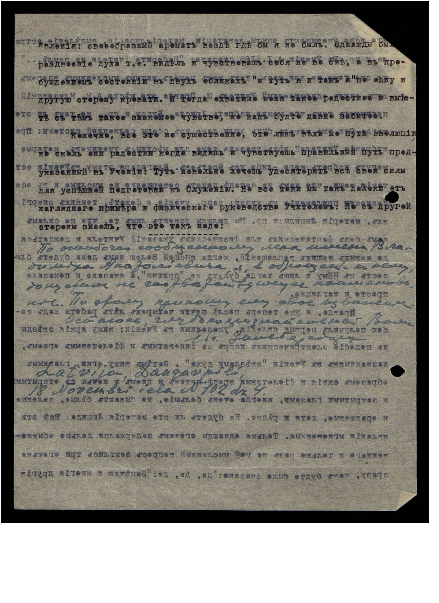 Многоуважаемая Елена Ивановна! Шлю Вам перевод газетной статьи "Latvijas kareivis" (Латвийский солдат) №59 от 10/III 1935 г.