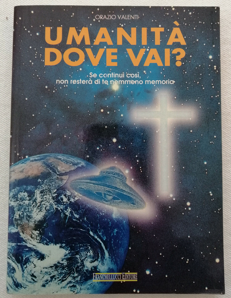 Ваша версия с самиздатом ошибочная, т.к. оригинал книги Орацио Валенти, "Куда идешь человечество?" издан в 1993 году. См. Orazio Valenti "Umanità dove vai?", 1993, Franchellucci Editore. Вот её обложка: Информация на сайте ВКонтакте неверная, в ссылки на pdf-книгу указан 1992 год, а везде в интернете выдаёт 1993 год, если набрать название издательства: Центр Духовного Развития.Михаил Л писал(а): 16 мар 2023, 13:42 Второй снимок сделан очевидно не ранее конца 80-х гг, возможно, с распространяемой самиздатовской версии перевода книги Орацио Валенти, "Куда идешь человечество?" (которую позже после редактирования опубликуют в 1992)