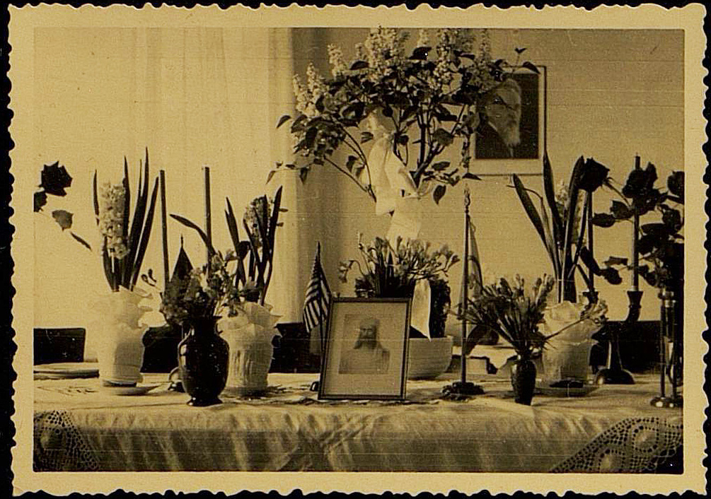 24-го марта на торжественном собрании мы праздновали День Учителя. Прилагаю три снимка уголка нашего зала в день Учителя, на столе видны фризии, положенные от имени Е.И. и Н.К. 28-го марта состоялся торжественный вечер памяти Феликса Денисовича [Лукина]. Прилагаю четыре снимка этого вечера, с пометками на обороте.* Программа была интересная и богатая. Также и в День Учителя. Пел хор нашего общества, также солисты, была и музыка, декламации, рефераты, отдельные параграфы из Учения и т.д. Исполнителями были только наши члены. На снимке за портретом Учителя видны Фризии, положенные Феликсу Денисовичу от имени Е.Ив. и Н.К. Недавно мы отправили Вам маленький альбомчик с разными снимками из нашей жизни и видами Латвии. Прилагаю краткую опись содержания альбома.