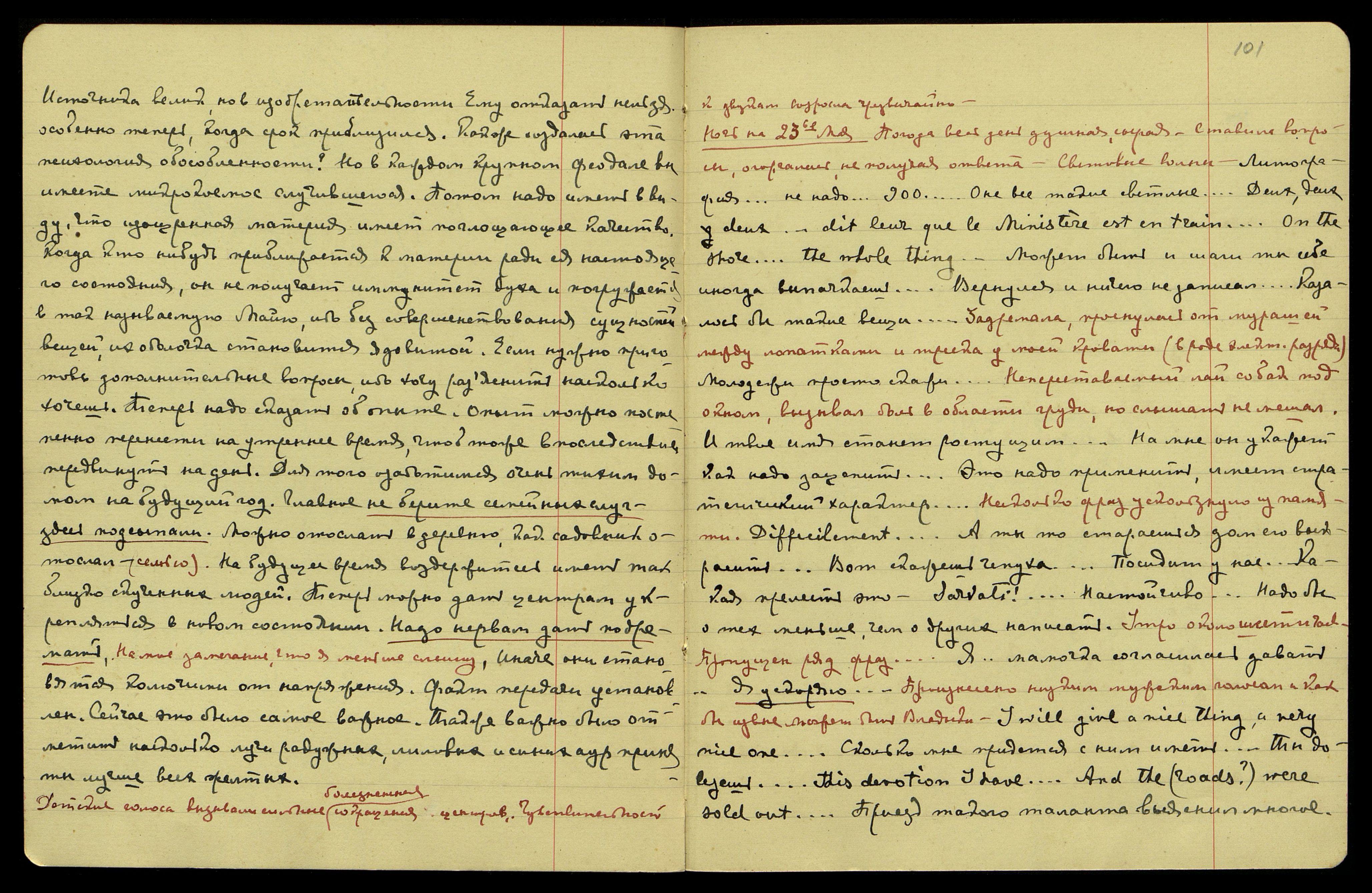 торым они соединены... Просто опытного человека... Как всегда был у меня один... Противодумие!.. Выплываем, хотя могу указать... or Kalimpong [англ.: или Калимпонг]... Прели... свидетельствует", − пропущена запись. "Только когда слуги покажут и принесут... Идёт, идёт... И только что так дорого... Опять всю историю с процессией нарушишь... Let me know [англ.: Дай мне знать]... фокусник!.. Наш сидит на Георгии... Внутреннее, inside [англ.: внутри]!.. В сущности говоря, этому епископу... очень дорого стоит... улыбался..." Смутное видение снежных гор.
