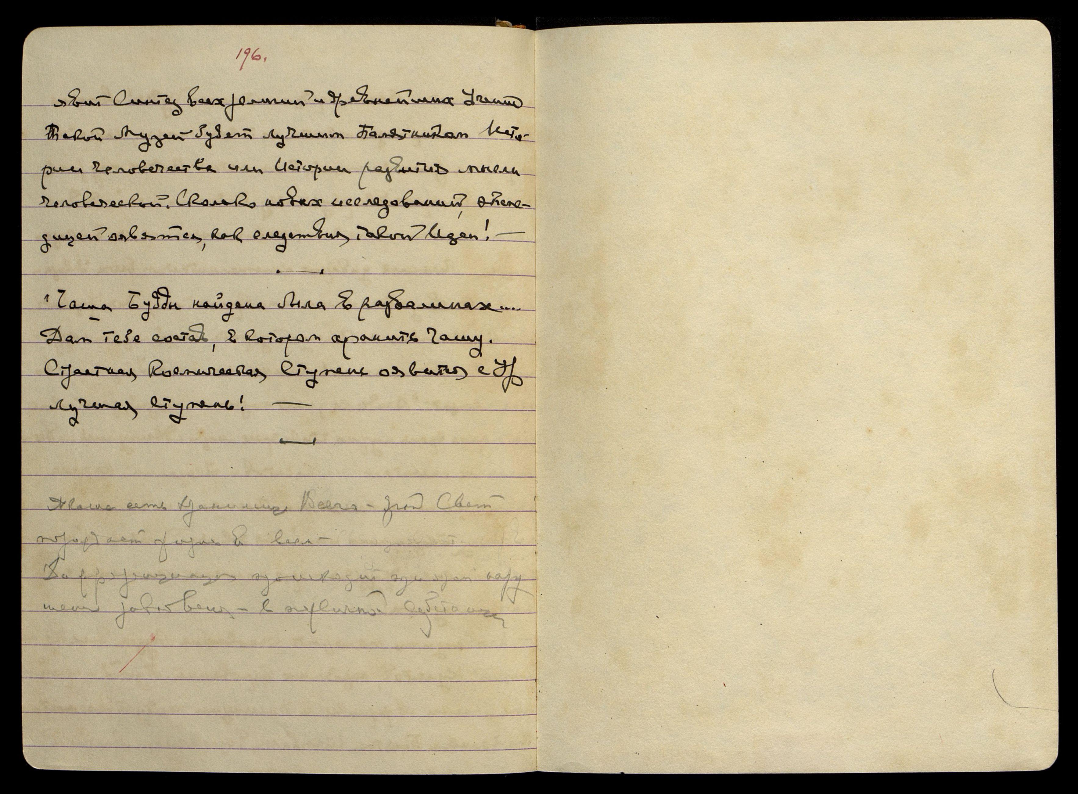 Ярые уявились на новом задании − стереть с лица Земли наше население. Страна Моя оявится не только Страной Моей, но и страною Шамбалы. Знамя Шамбалы − коралло[во]-розовое с вышитым Чинтамания золотом, серебром и пурпуром.