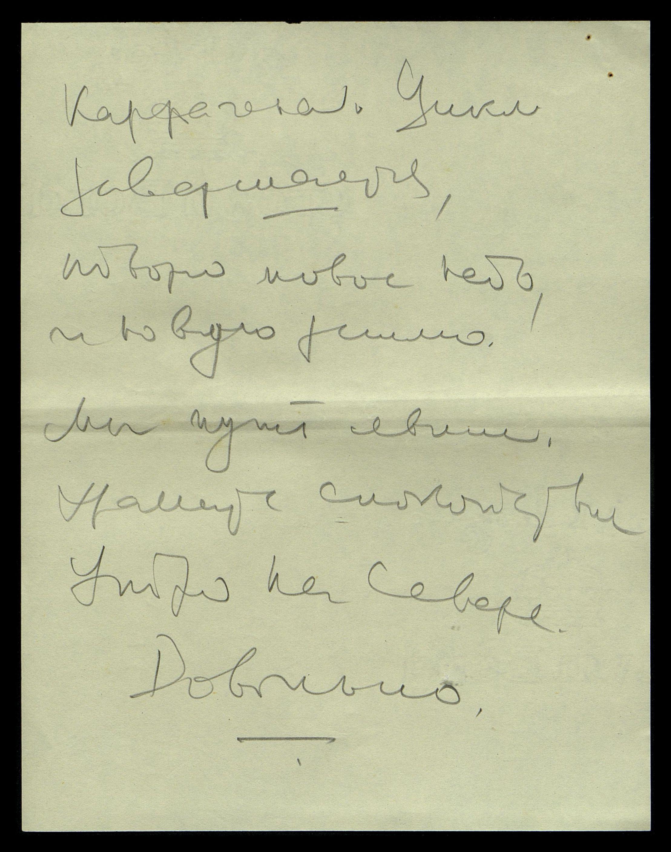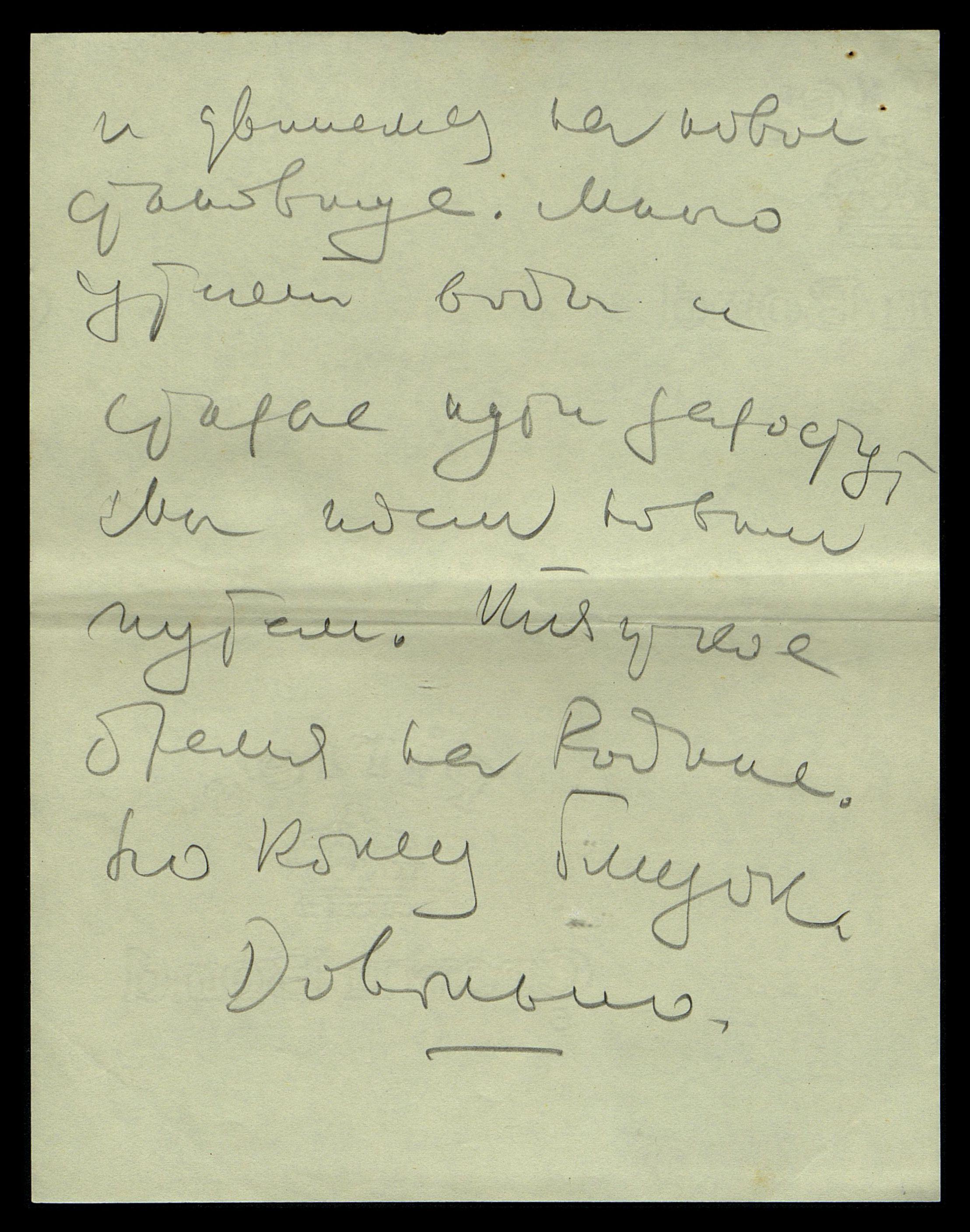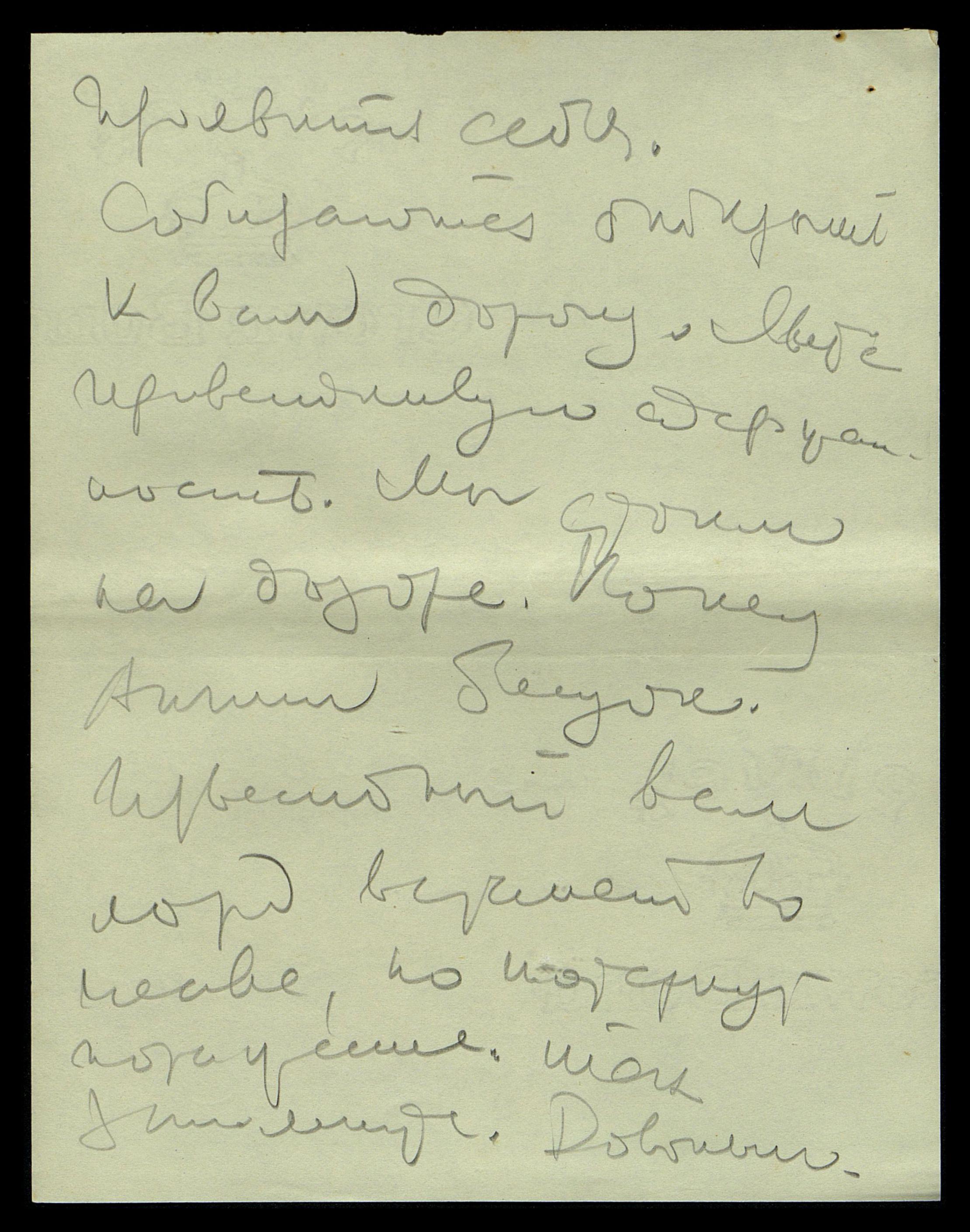 Собираются открыть к вам дорогу. Явите приветливую сдержанность. Мы стоим на дозоре. Конец Англии близок. Известный вам лорд [два слова неразборчиво], но потерпит поражение. Так запомните. Довольно.