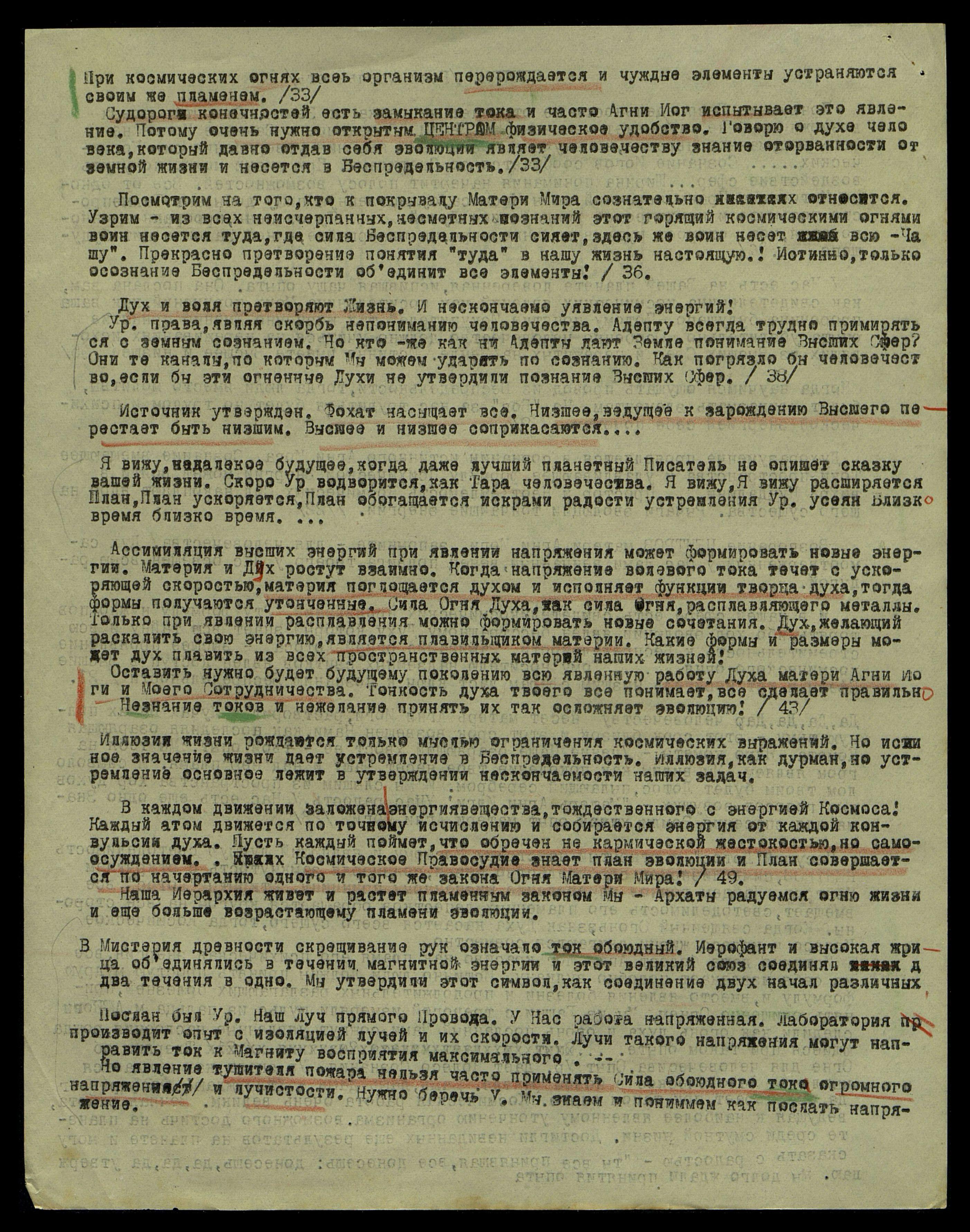 Огни, возжженные Матерью Агни Йоги не только являют Агни Йогу, но размера Космического. Огни дают тебе ту силу огней и лучей, нужную для Бытия беспредельного. Работа знаменательная для будущего. Каждый Огонь — будущего творчества луч. Значение огней беспредельно.