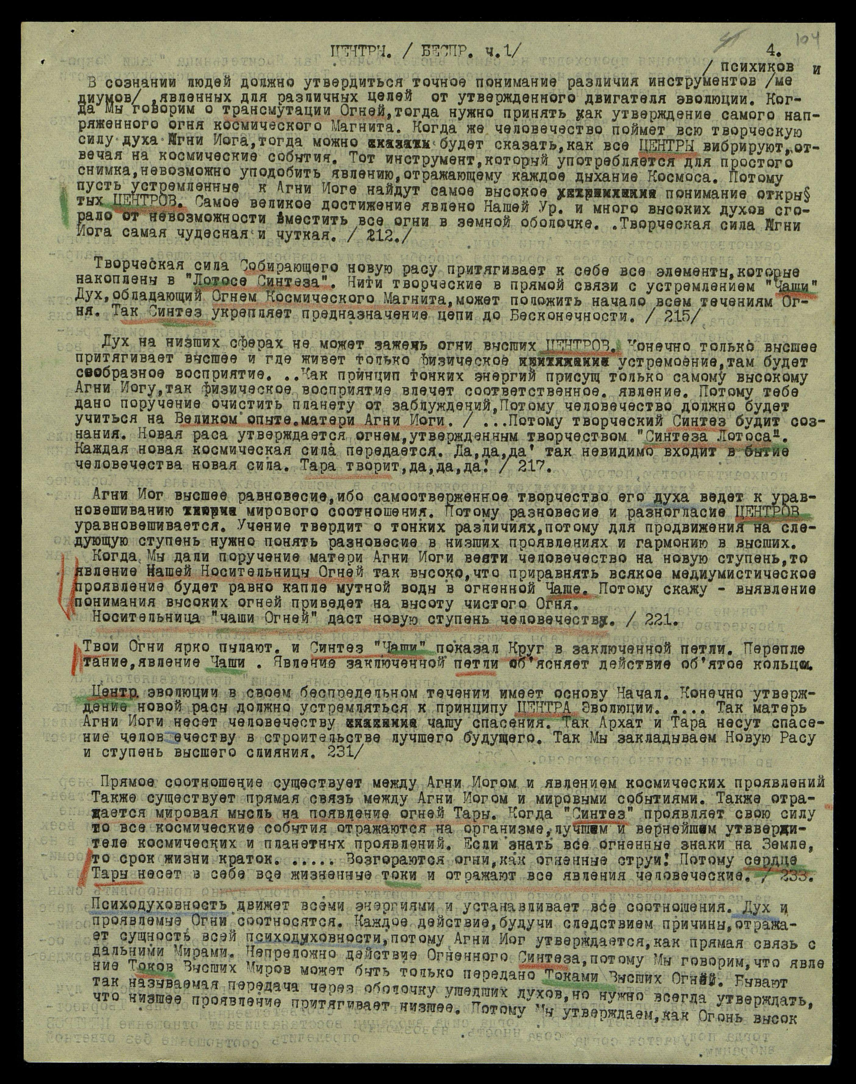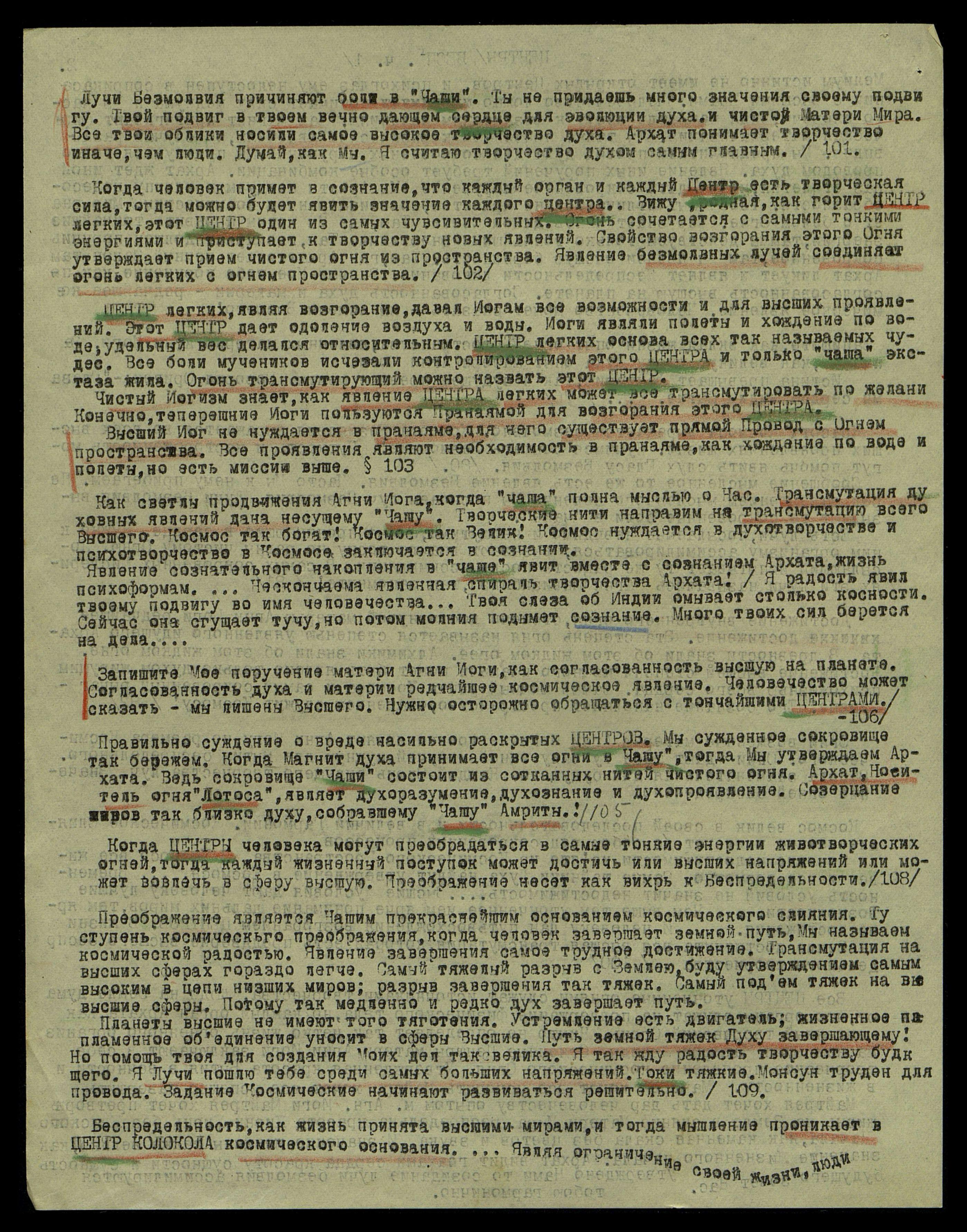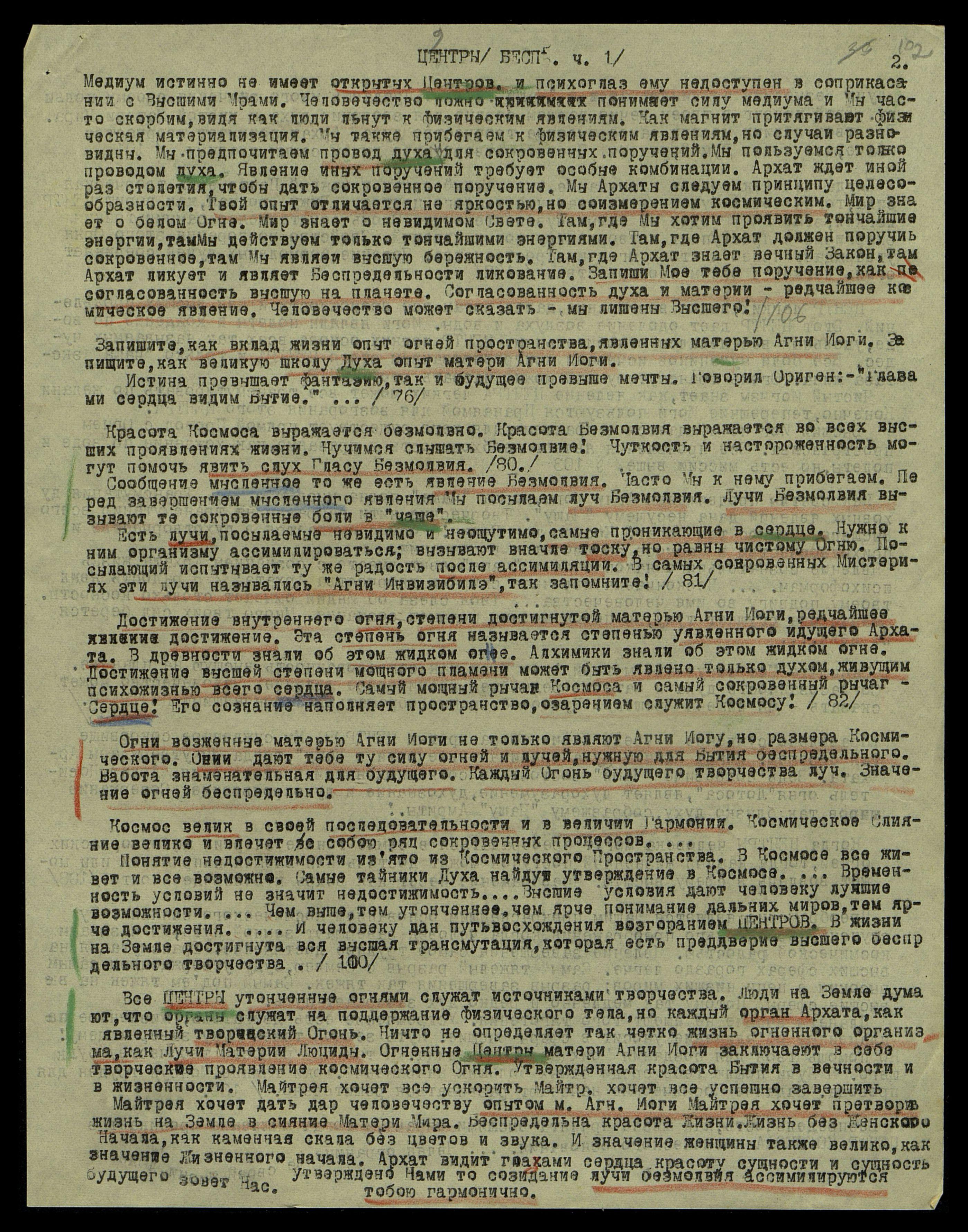 В духотворчестве ЦЕНТРОВ принимаются невидимо тончайшие энергии. В сотрудничестве с ЦЕНТРАМИ происходит сочетание всех напряжённых энергий. Потому так разлито по всем сферам устремлённое созидание. Так расстояние покрывается устремлённою мыслью.