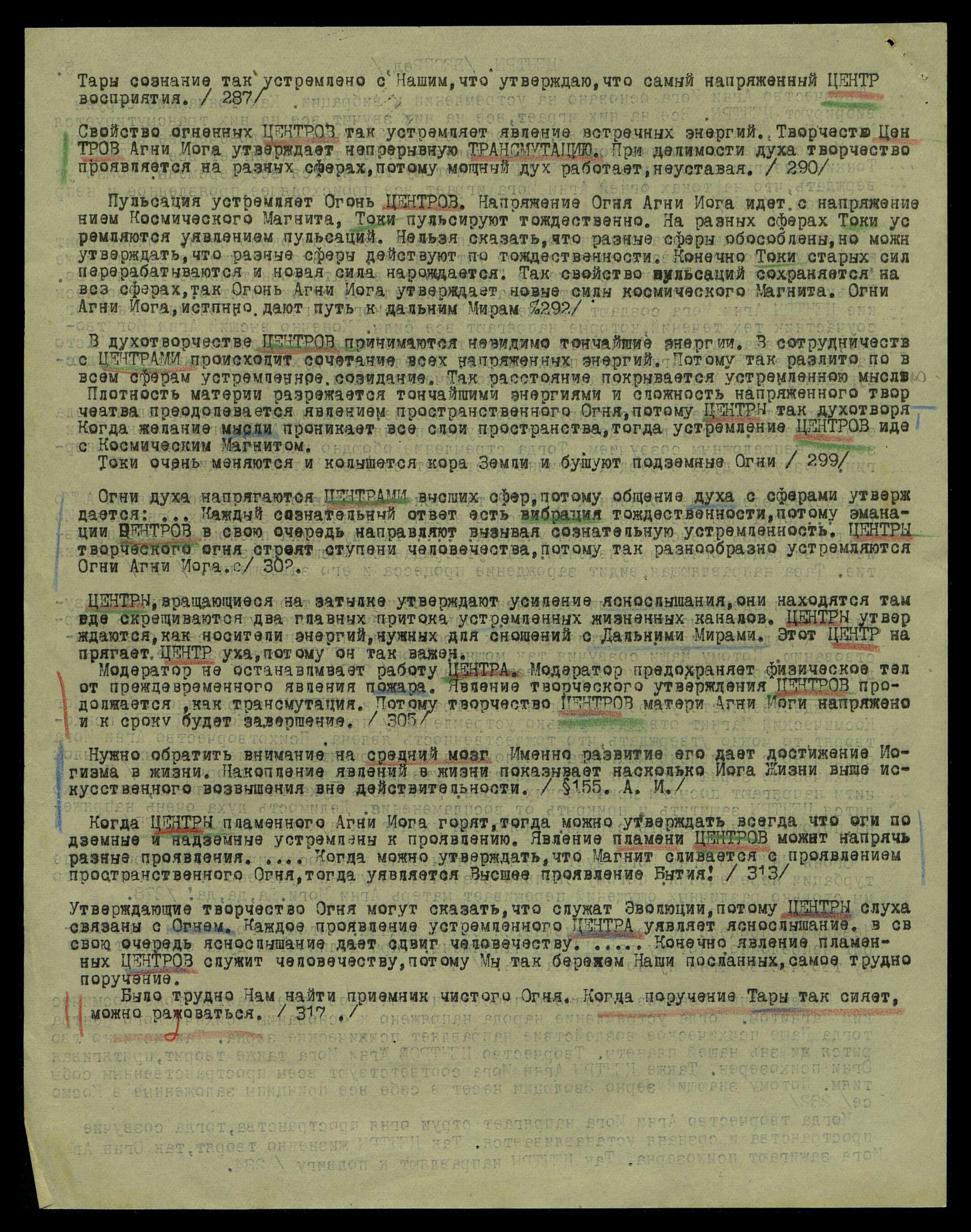 Огни духа напрягаются ЦЕНТРАМИ высших сфер, потому общение духа с сферами утверждается. ...Каждый сознательный ответ есть вибрация тождественности, потому эманации ЦЕНТРОВ, в свою очередь, направляют, вызывая сознательную устремлённость. ЦЕНТРЫ творческого огня строят ступени человечества, потому так разнообразно устремляются Огни Агни Йога. (§ 309).