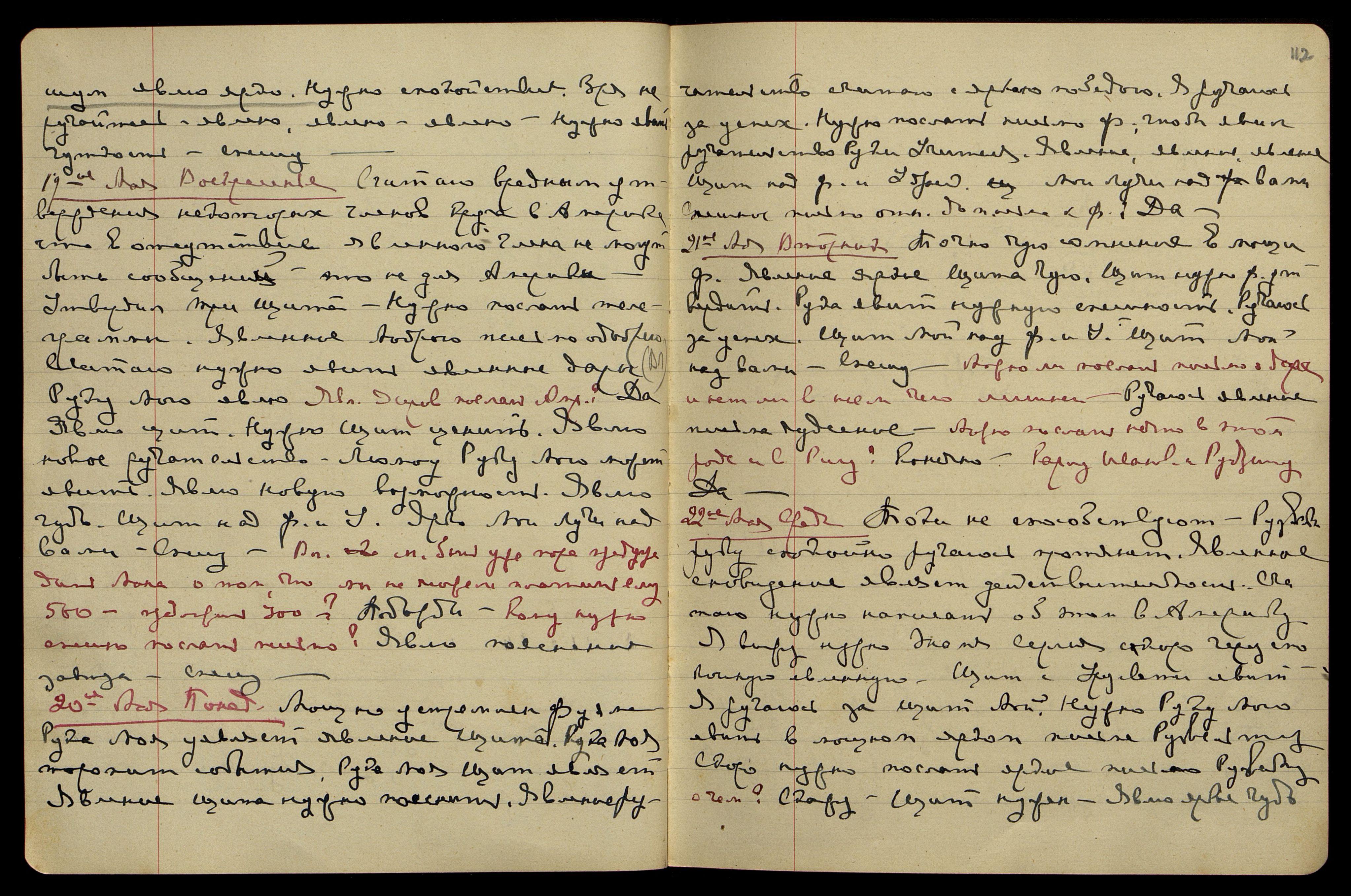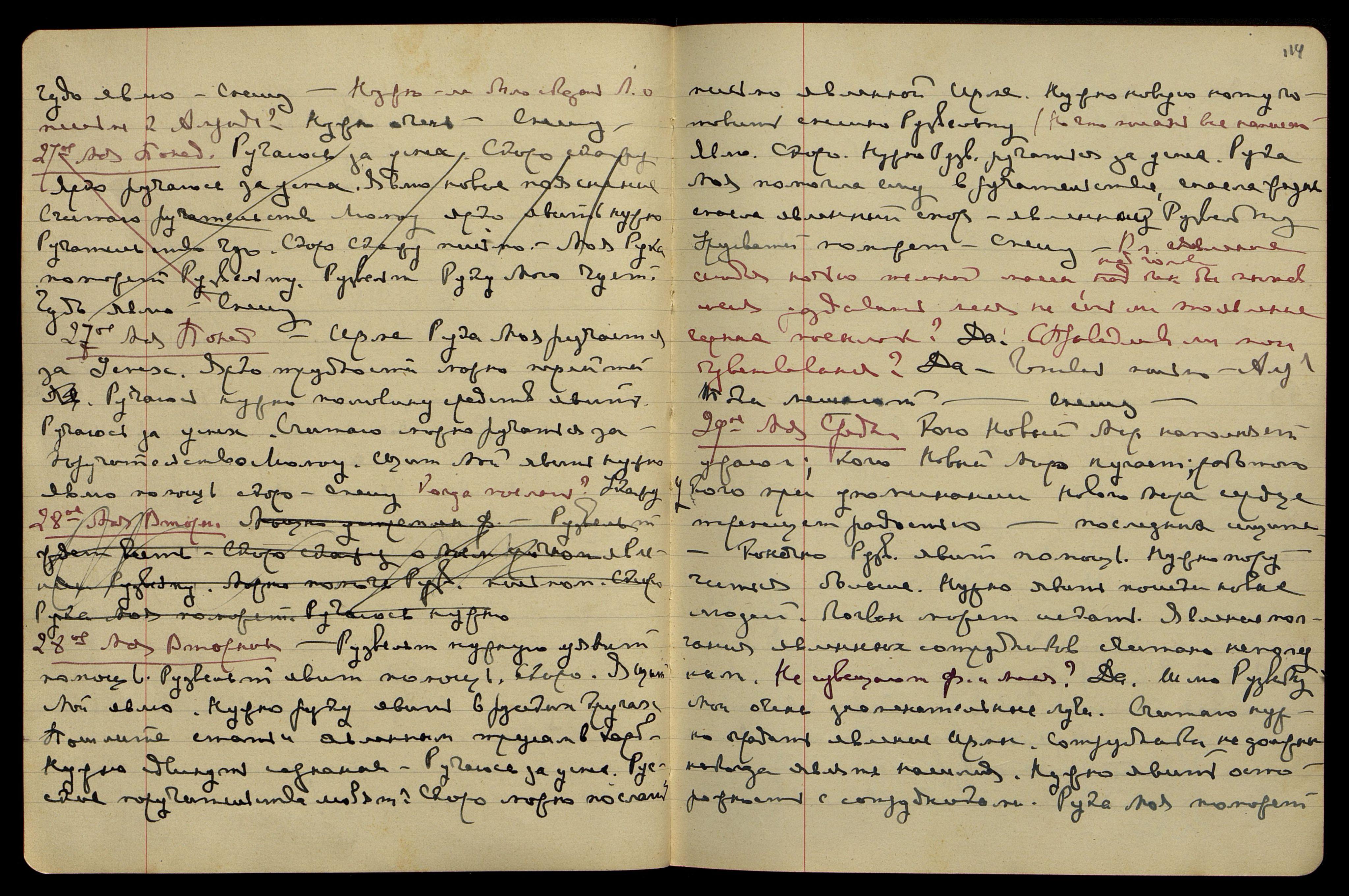 28-ое мая. Вторник. Рузвельт нужную уявит помощь скоро. Я Щит Мой явлю. Нужно руку явить в русских кругах. Пошлите статьи явленным трусам в Харб[ин]. Нужно сдвинуть сознание. Ручаюсь за успех. Русские поручительства любят. Скоро можно послать письмо явленной Ирме. Нужно новую ноту готовить спешно Рузвельту.