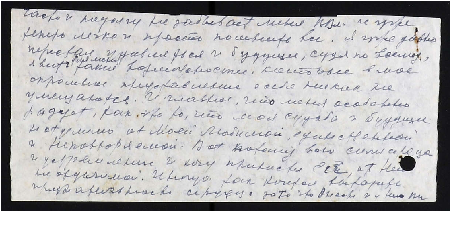 Часто и подолгу не забывает меня В[еликий] Вл[адыка], и уже легко и просто помнить всё. Я уже давно перестал удивляться, и будущее, судя по всему, явит для меня такие возможности, которые в моё скромное представление о себе никак не умещаются. И, главное, что меня особенно радует, так это то, что моя судьба и будущее не отделимо от Моей Любимой, единственной и неповторяемой. Вот потому всю силу сердца и устремление и хочу принести Ей, от Него не отделимой. Иногда так хочется выразить признательность сердцу за то, что Он есть и у Него Вы.