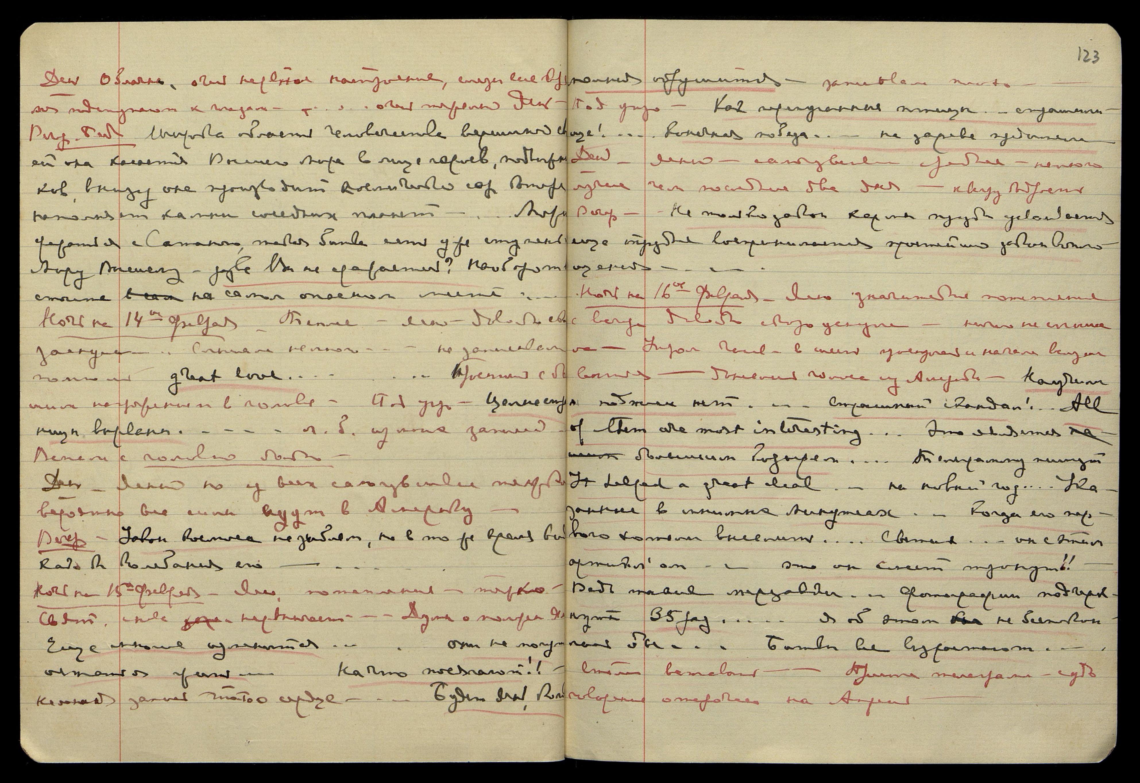 День. Довольно ясный. Пришла телеграмма от Катрин, спрашивает для какого [слово неразборчиво] указан Милликан? Также следует ли начинать дело из-за возможной публикации. Всё нет телеграммы от Фран[сис], Зины относительно решения судоговорения бывшего 31-го декабря, очень тревожимся этим.