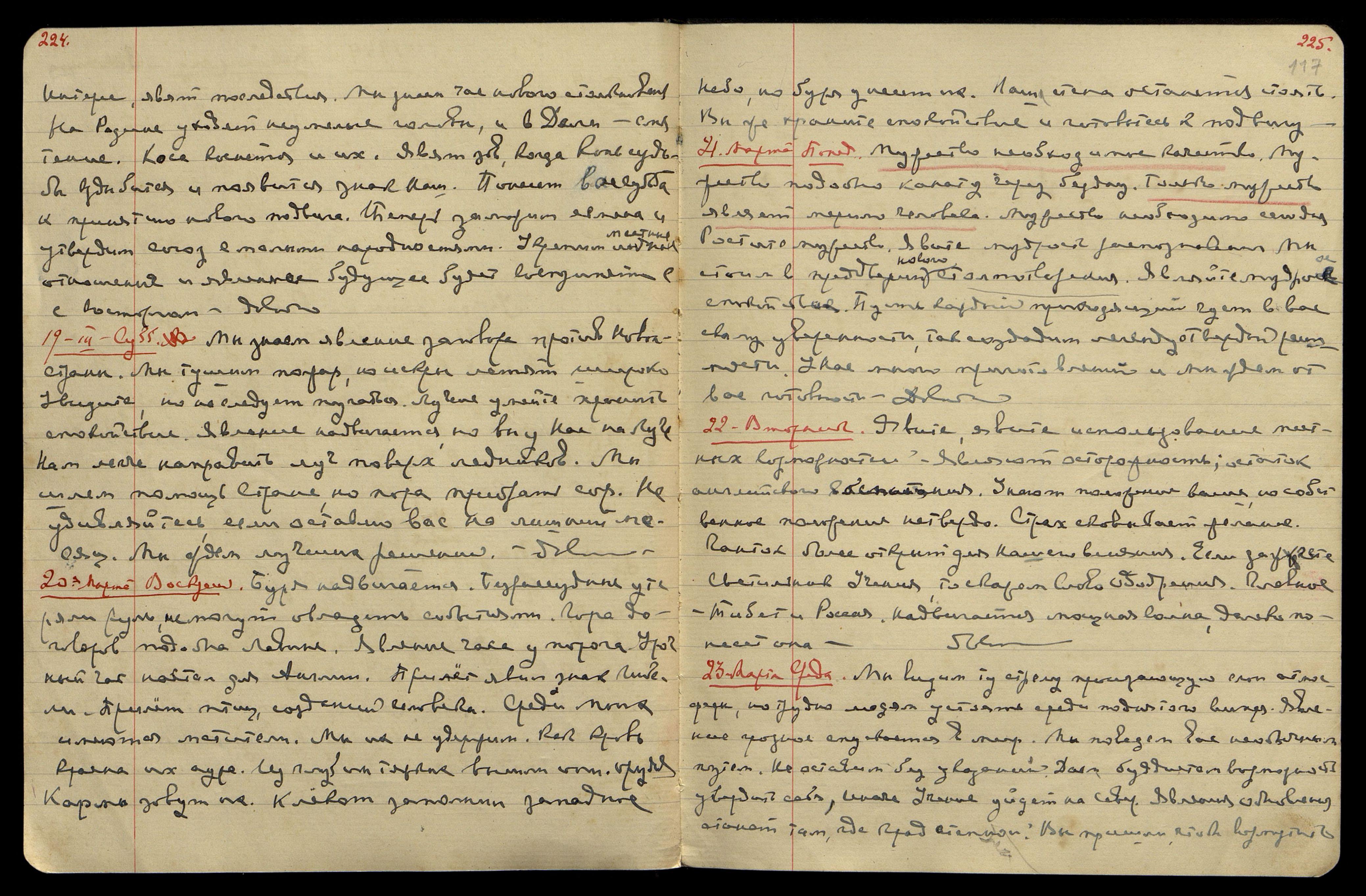 21 мая. Суббота. Путь явлен. Мы уйдем и вам бранная дорога. Не удержать лавину событий. Родина чует поток опасный; но только опасность может устранить увура. Уедем скоро. Вам нет места здесь в Индии. Придется собрать мужество. Увидите, когда придет день. Довольно.