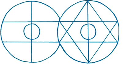 Четвертый круг мы рисуем точно в центре шестиконечной звезды: орбиты Меркурия, область действия которой простирается до символического круга Земли.