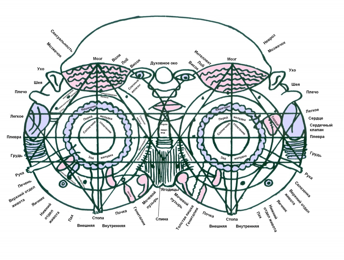 (Современная схема иридодиагностики, совпадающая с древней тибетской)