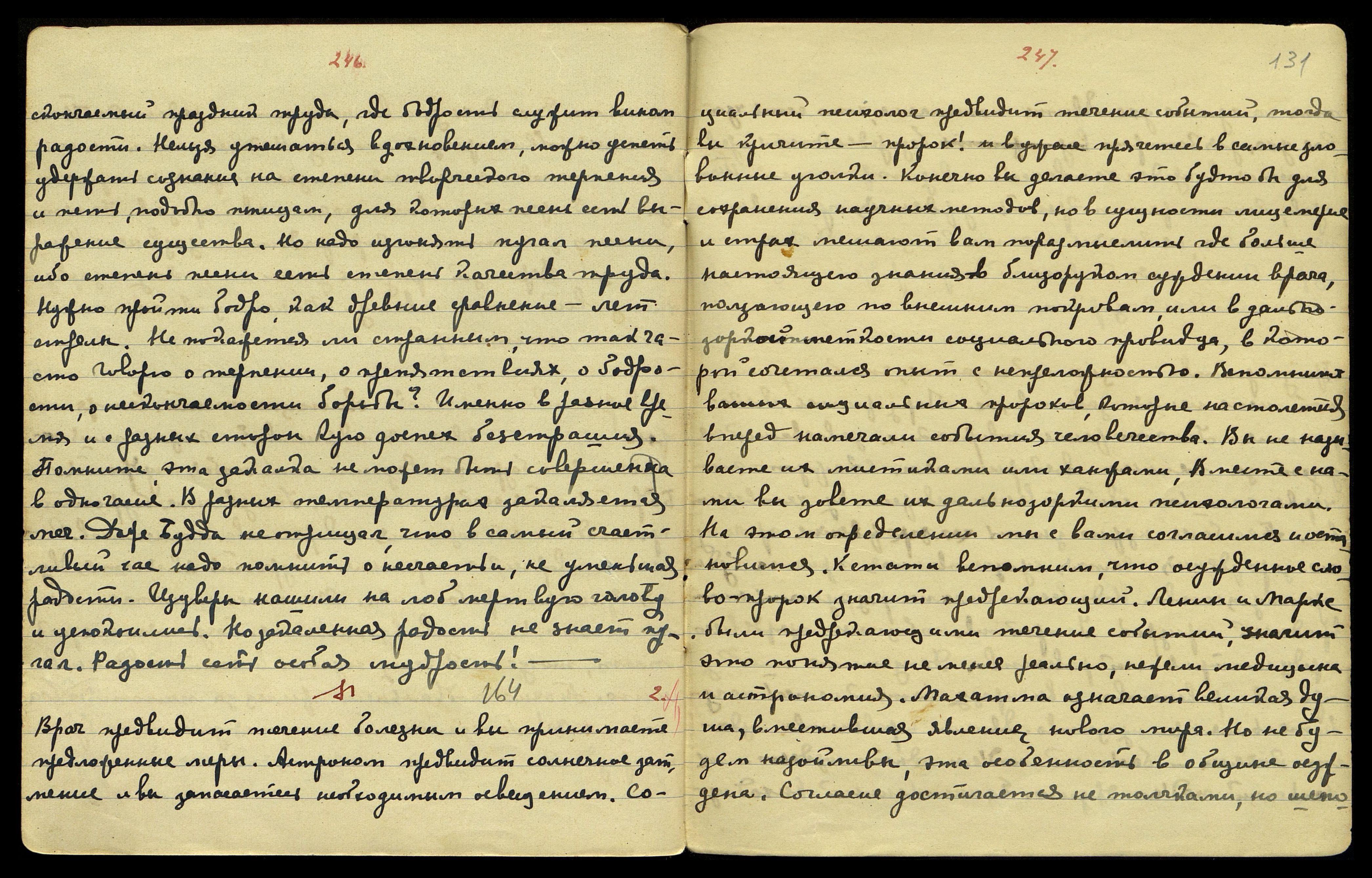 [§] 166. Истинный жар-цвет — настоящее бескорыстие, но оно должно быть проявлено не только поступками, но именно, в сознании. Поступки, как блуждающие тени, являются не точным отражением, и вихрь дрожащих условностей скрадывает смысл действия. Можно-ли судить поступок без причины и следствия? Тогда спаситель окажется оскорбителем, и отдавший покажется