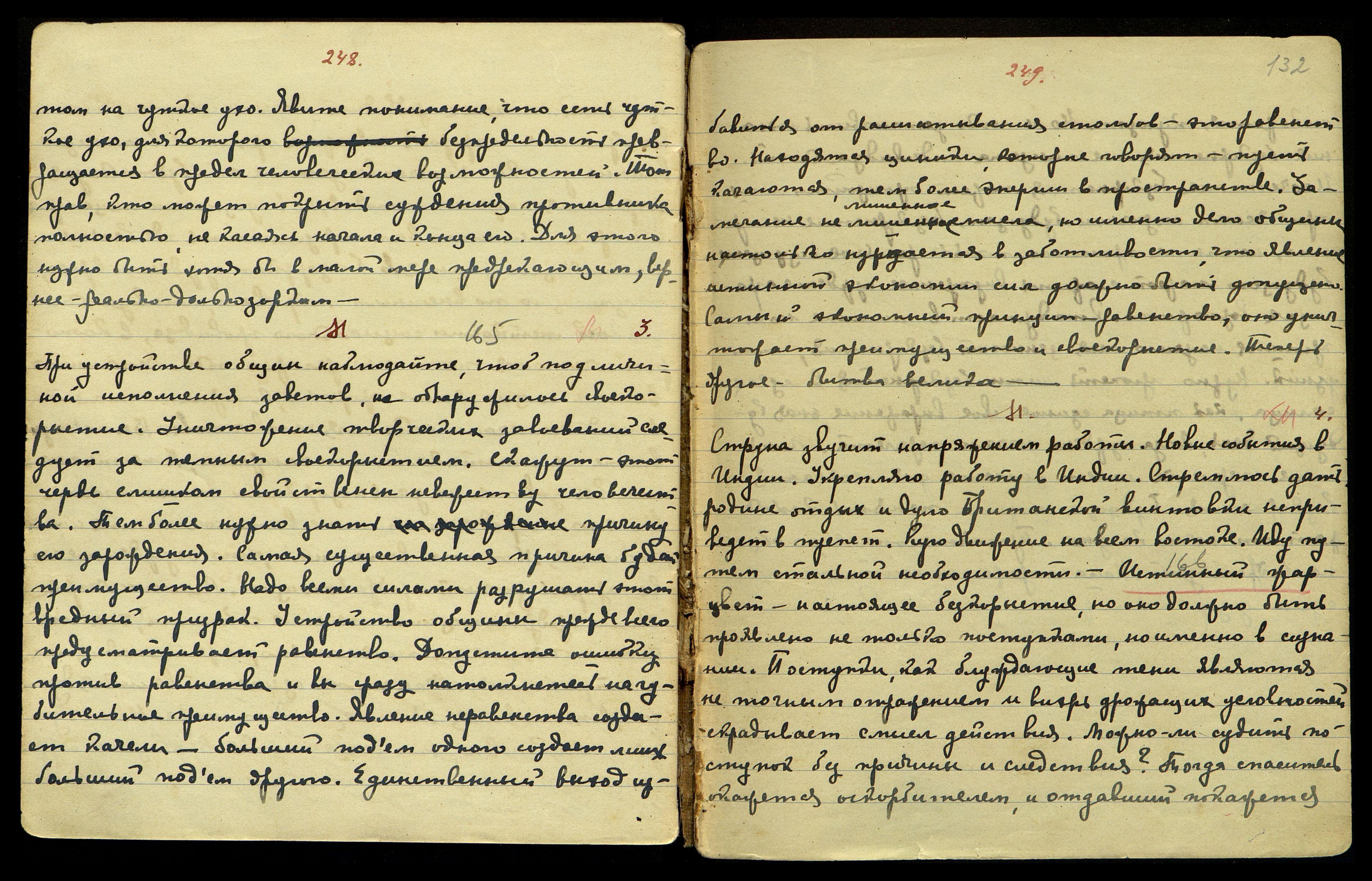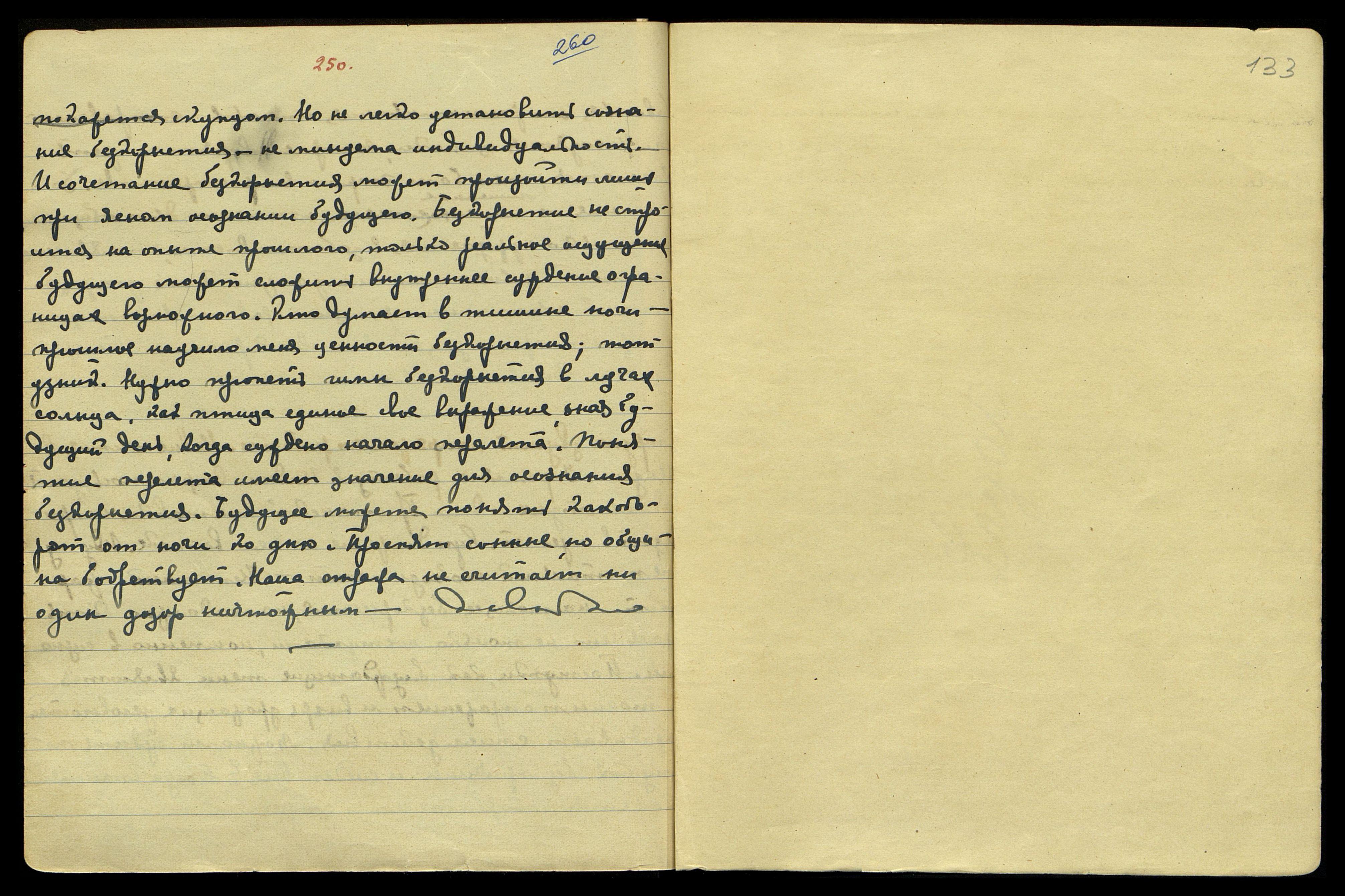 Не нужно ли искать косвенную причину этого также в том, что время изложения этого Учения в европ[ейской] литературе совпадает со временем ложного романтизма и классицизма. Не призма ли романт[ического] пессимизма окрасила те суждения, которые можно бы считать уже искренними.