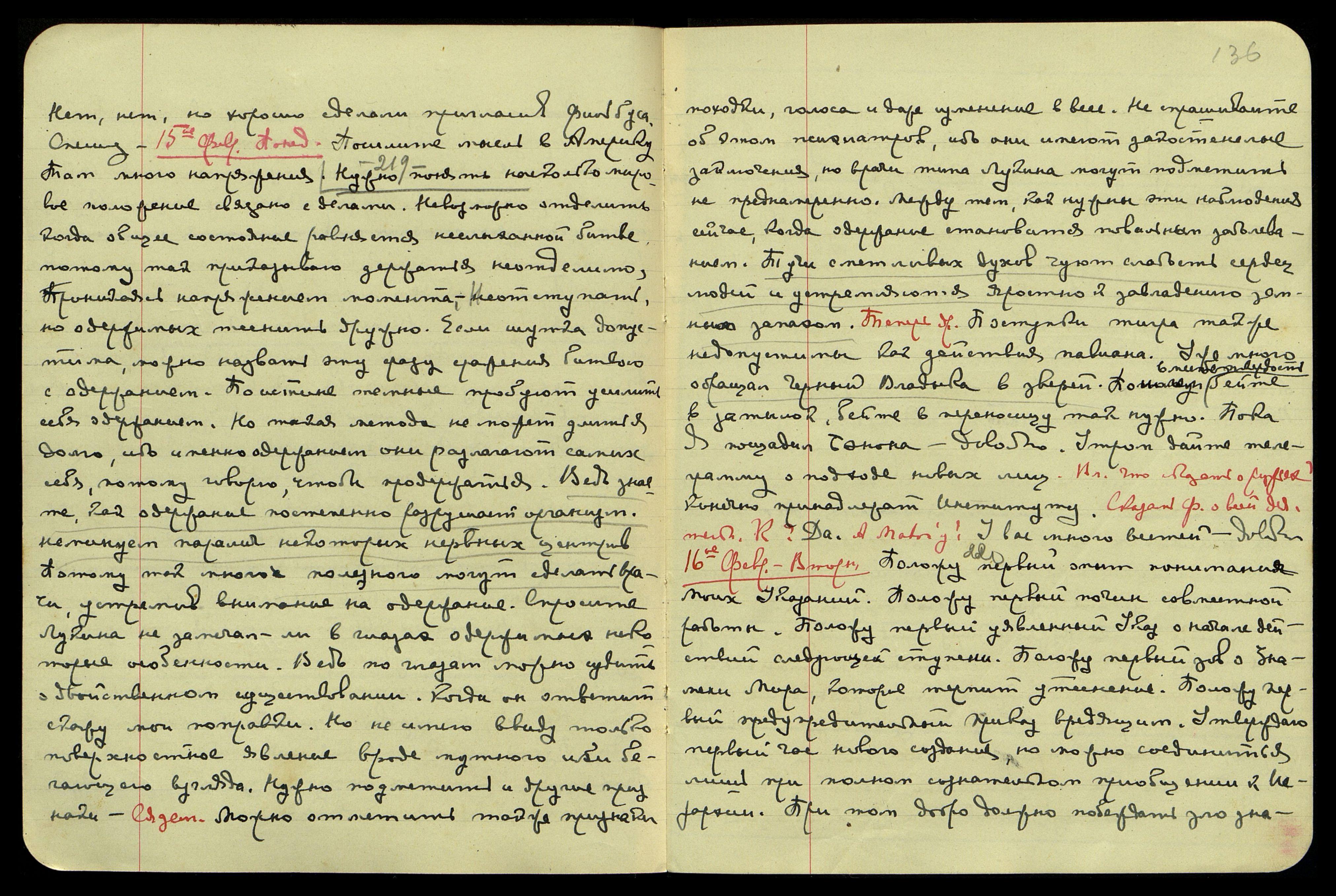 15-ое февр[аля]. Понед[ельник]. Пошлите мысль в Америку. Там много напряжения. [Сердце] § 219. Нужно понять, насколько мировое положение связано с делами. Невозможно отделить, когда общее состояние равняется неслыханной битве; потому так приказываю держаться неотделимо, проникаясь напряжением момента; не отступать, но одержимых теснить дружно. Если шутка допустима, можно назвать эту фазу сражения битвою с одержанием. Поистине, тёмные пробуют усилить себя одержанием. Но такая метода не может длиться долго, ибо именно одержанием они разлагают самих себя; потому говорю, чтобы продержаться. Ведь знаете, как одержание постепенно разрушает организм, неминуем паралич некоторых нервных центров. Потому так много полезного могут сделать врачи, устремив внимание на одержание. Спросите Лукина не замечал ли в глазах одержимых некоторые особенности? Ведь по глазам можно судить о двойственном существовании. Когда он ответит, скажу Мои поправки. Но не имею в виду только поверхностное явление, вроде мутного или бегающего взгляда. Нужно подметить и другие признаки. Сядем. Можно отметить также признаки походки, голоса и даже изменение в весе. Не спрашивайте об этом психиатров, ибо они имеют закостенелые заключения, но врачи типа Лукина могут подметить непреднамеренно. Между тем, как нужны эти наблюдения сейчас, когда одержание становится повальным заболеванием. Тучи сметливых духов чуют слабость сердец людей и устремляются яростно к завладению земным запахом. Теперь др[угое]. Поступки тигра так же недопустимы, как действия павиана. Уже много обращал чёрный владыка в зверей. Пошлём вместе твёрдость. Бейте в затылок, бейте в переносицу, так нужно. Пока Я пощадил Бэнона. Довольно. Утром дайте телеграмму о подходе новых лиц.