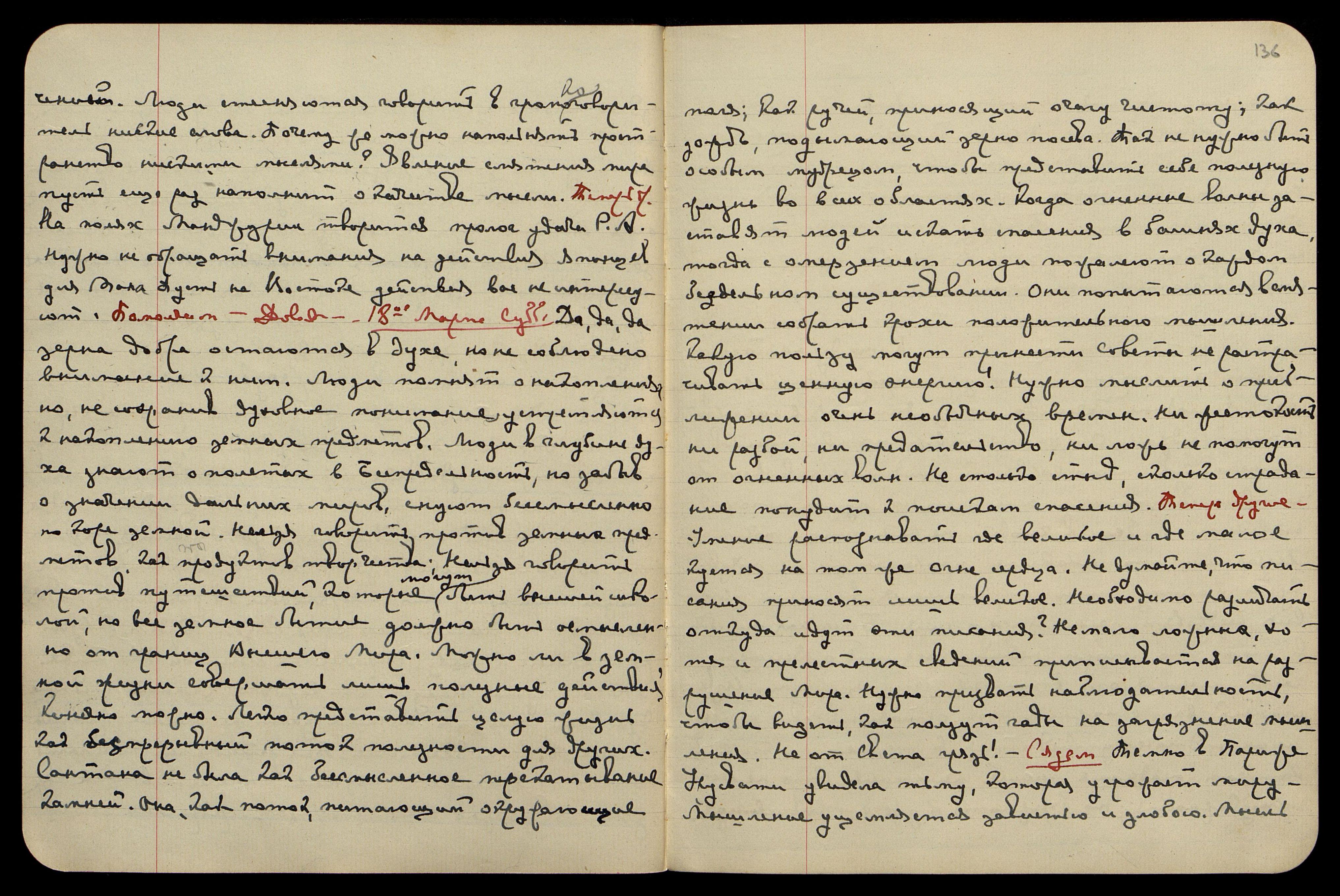 — Вл[адыка], правильно ли я понимаю значение нашей поездки в М[оскву]? Помимо предупреждения, кот[орое] делается по закону каждое столетие определён[ной] стране, мы должны были исторически, реально закрепить факт предложения Прав[ительству] стать во главе нового строительства, чтобы не говорилось потом, что мы сов[етовали] это Вост[оку] и не дали возможность самим русским... Кроме того, Вл[адыке] нужно было видеть, какие сочетания и воздействия вызовут наши ауры ..., и, м[ожет] б[ыть], наша аура недостаточно зацепила ... ?
