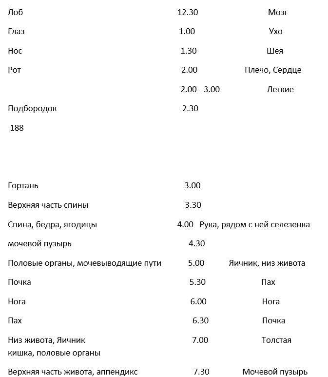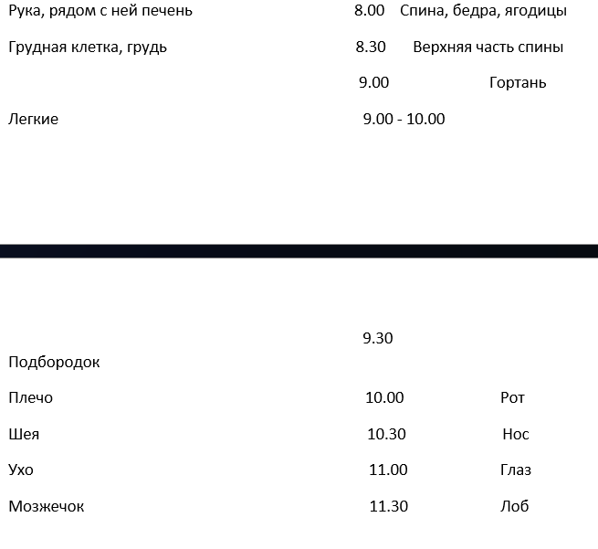 Современным методом изучения сегментов радужной оболочки глаза является так называемый вахтовый метод. При этом вы соединяете сегменты органов правого и левого глаза с циферблатом часов.