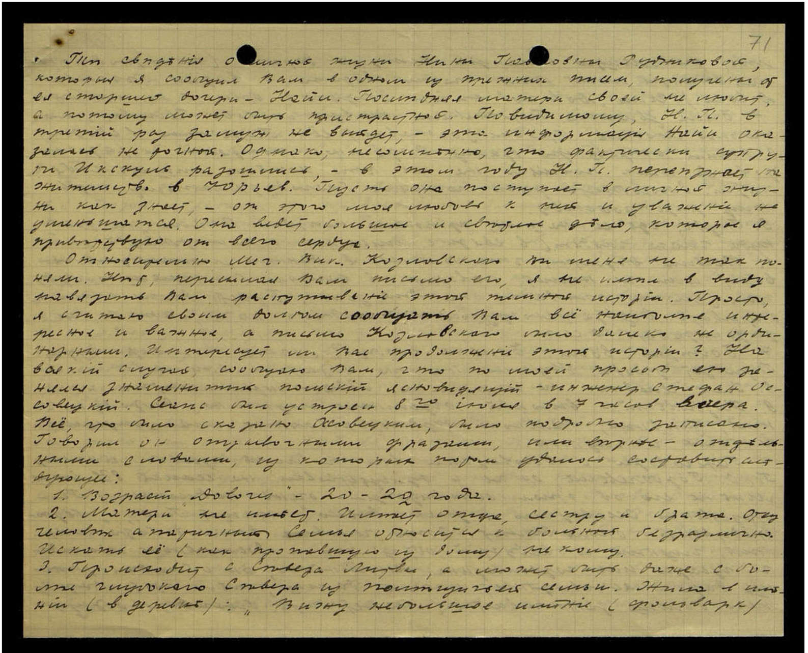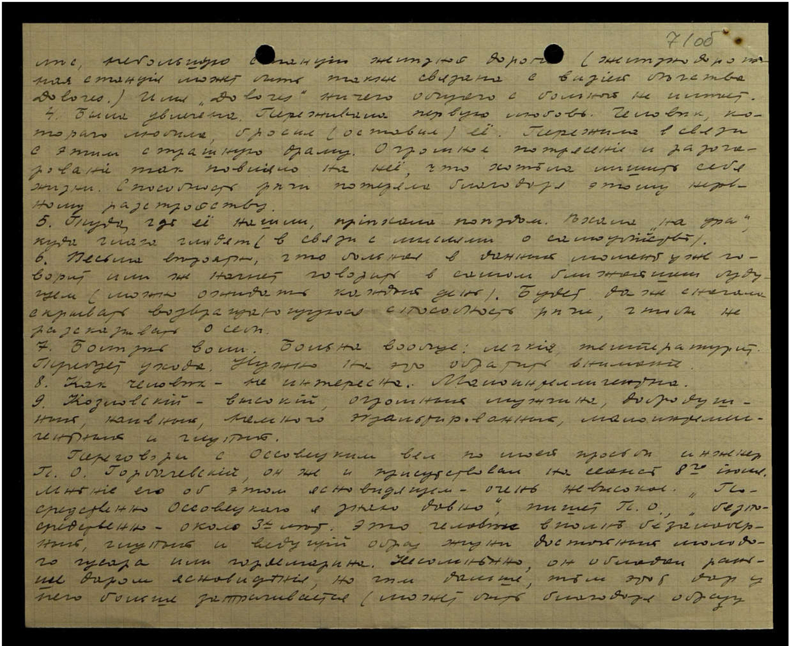 7. [Одно слово неразборчиво] воли. Больна вообще: лёгкие, температурит. Требует ухода. Нужно на это обратить внимание.