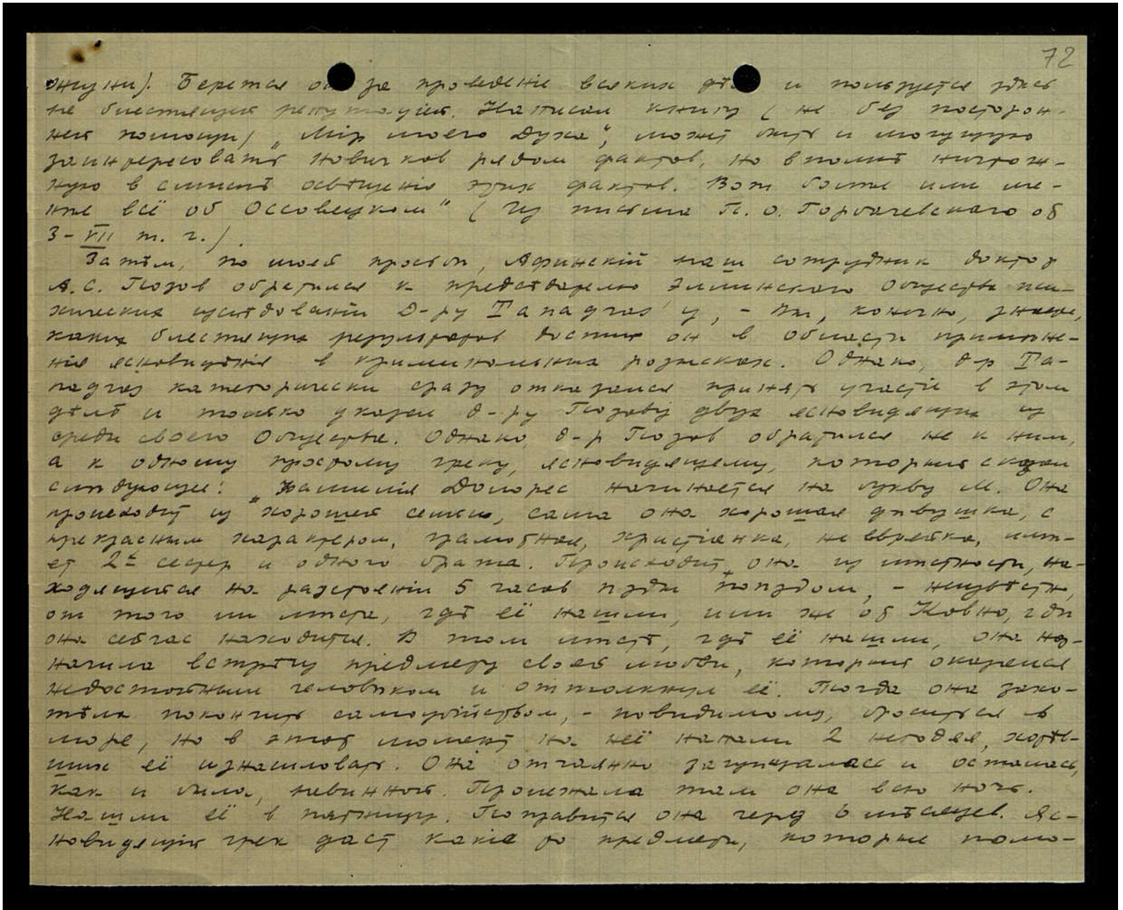 Относительно М. Вик. Козловского Вы меня не так поняли. Нет, пересылая Вам письмо его, я не имел в виду навязать Вам распутывание этой тёмной истории. Просто, я считаю своим долгом сообщать Вам всё наиболее интересное и важное, а письмо Козловского было далеко не ординарным. Интересует ли Вас продолжение этой истории? На всякий случай, сообщаю Вам, что по моей просьбе ею занялся знаменитый польский ясновидящий — инженер Стефан Оссовецкий. Сеанс был устроен 8-го июля в 7 часов вечера. Всё, что было сказано Оссовецким, было подробно записано. Говорил он отрывочными фразами, или вернее — отдельными словами, из которых потом удалось составить следующее: