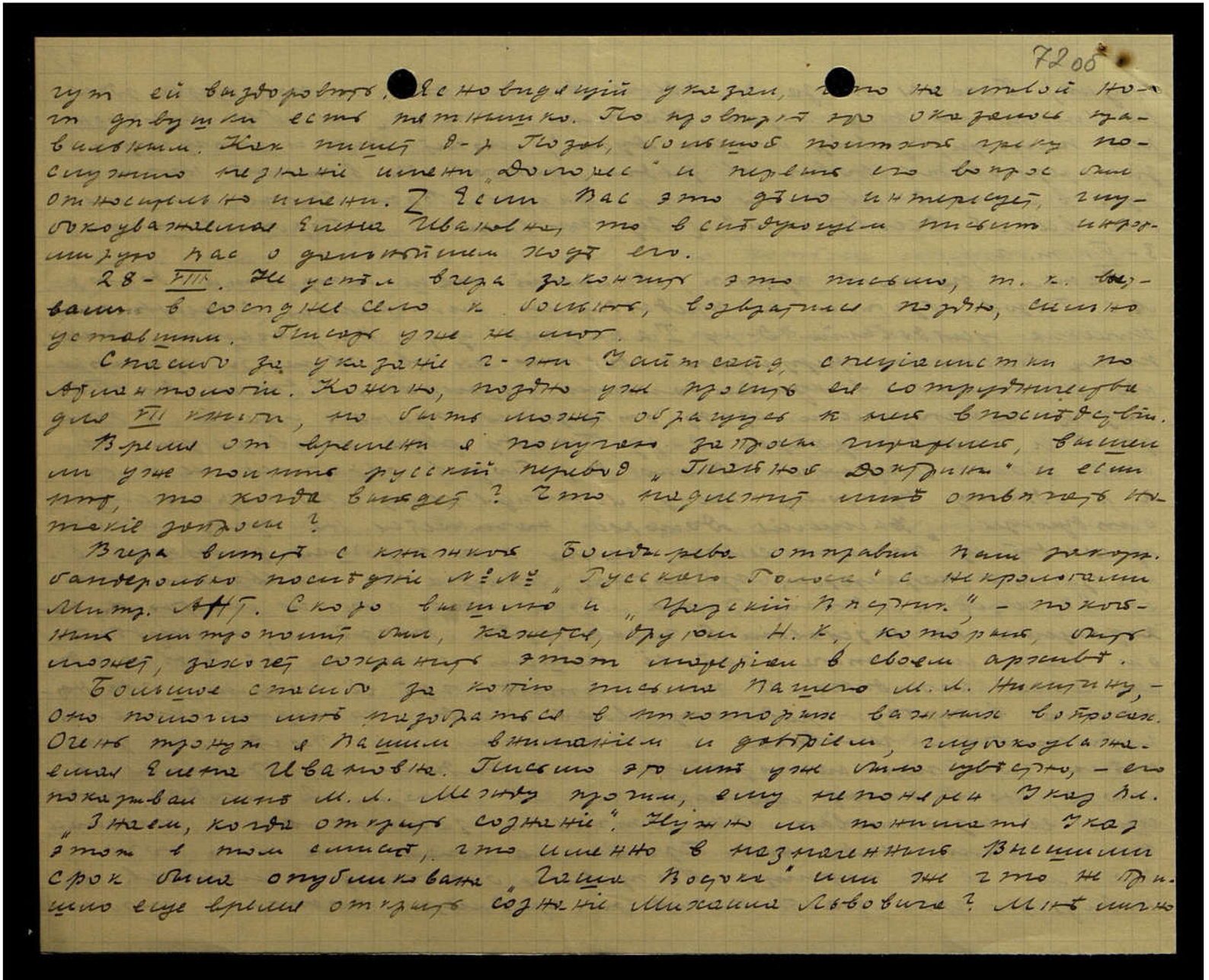 Вчера вместе с книжкой Болдарева отправил Вам заказ[ной] бандеролью последние №№ "Русского Голоса" с некрологами Митр. АНТ. Скоро вышлю и "Градский Вестник", покойный митрополит был, кажется, другом Н[иколая] К[онстантиновича], который, быть может, захочет сохранить этот материал в своём архиве.