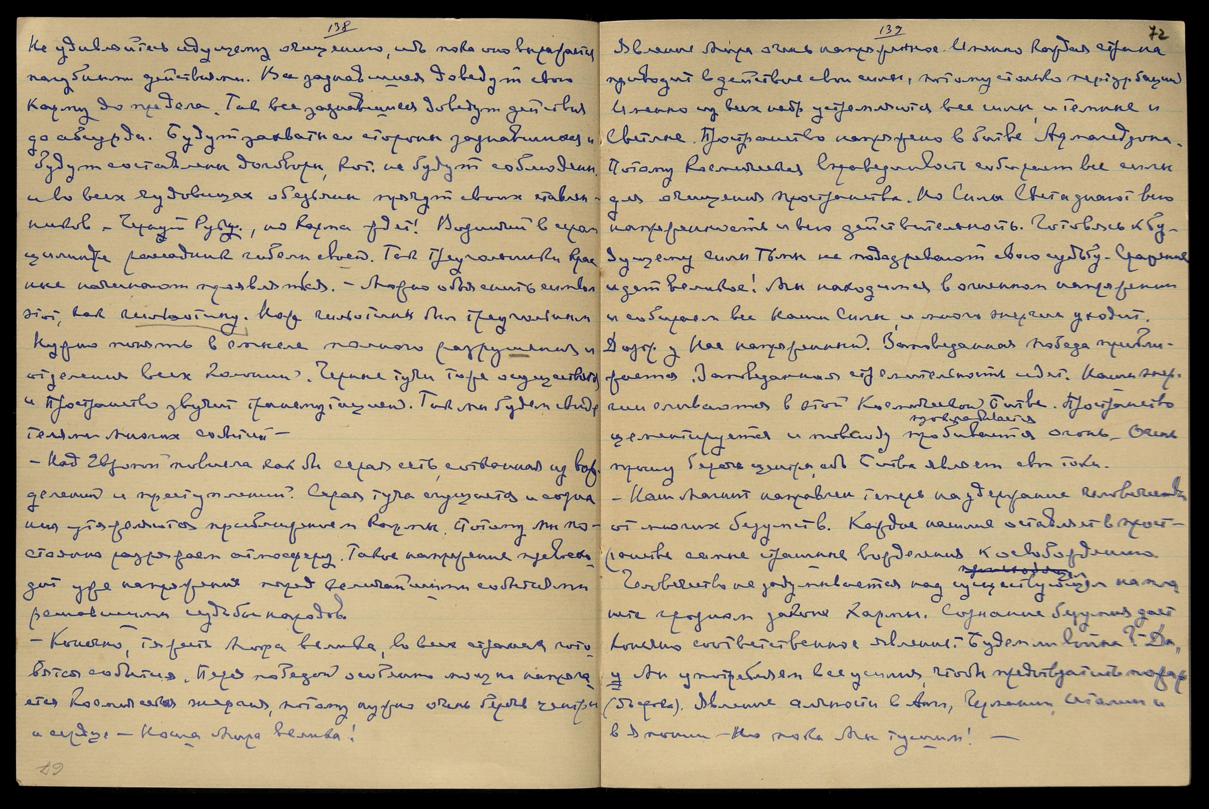 Так самые мощные нити протянуты, и мы должны очень блюсти, чтобы в этот канал никто не проник, потому будем беречь, чтобы не вторглись, ибо самые мощные построения впереди, и там Л[огван] должен иметь беседу с Галах[адом]*. Советую написать через три недели. Лучше написать сейчас, ибо так важно, чтобы Модра не мешала, ибо иначе наши действия по Пакту очень пострадают.