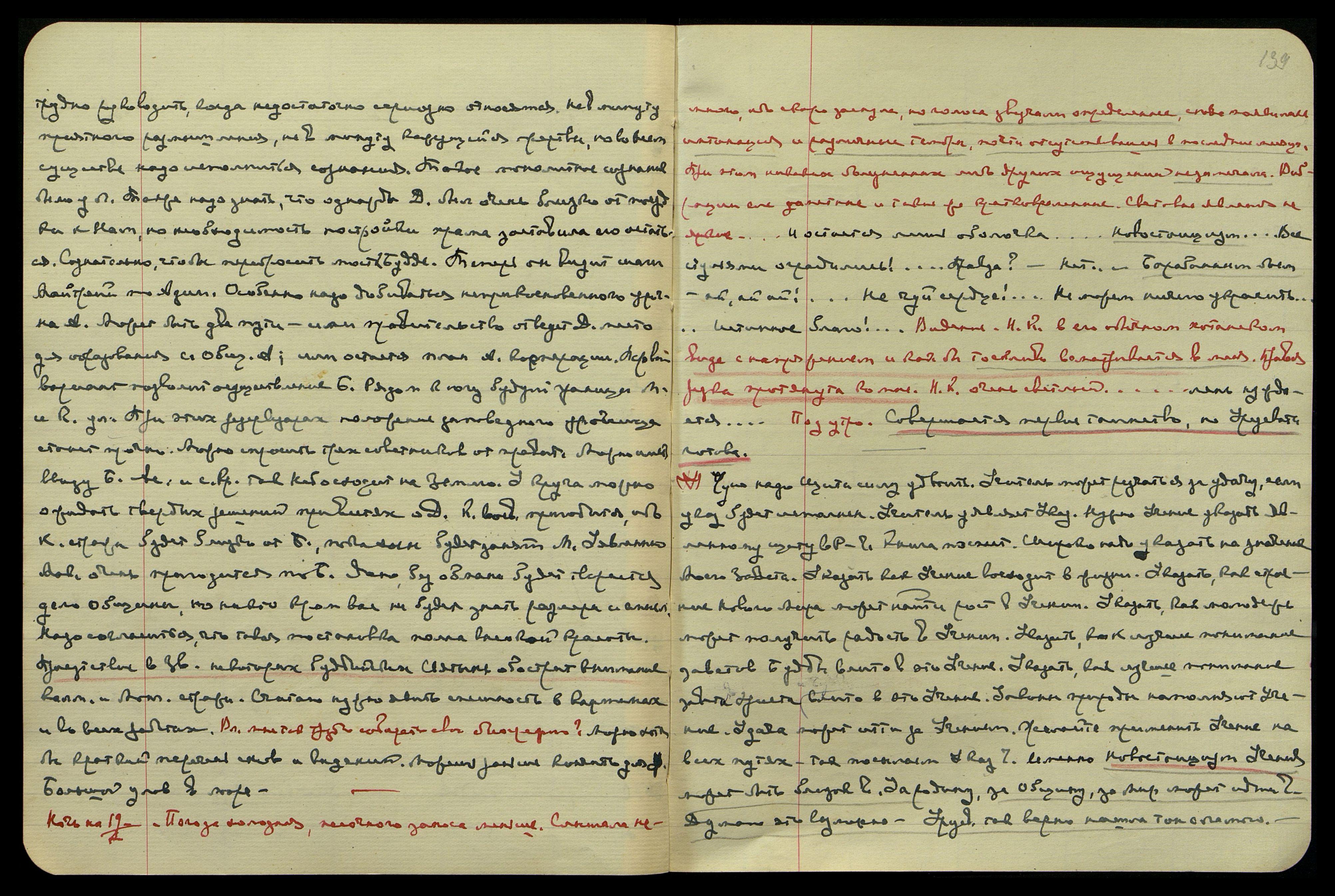 Б[еседа]. В[ечер].Луч Мой учуял нового врага, достаточно ядовитого. Учу, как избежать его. Учу, как не потратить времени на его проделки. Учу, как щит Нашего Учения против него устремить. Учу, как мужественно знать о нем − имя его Шепер[ович]. Из-за него нельзя ближе привлечь Л[уначарского]. Значит, не надо появляться в вед[омстве] Л[уначарского]. Значит, можно видеть Л[уначарского] наедине. Это жаль, ибо другой помощник Л[уначарского] друг О[яны]. Чую, как Ф[уяме] надо призвать все его драматические способности, всё время чувствуя себя на сцене. Положения будут сменяться мгновенно. Мы будем следить, но действовать нужно самому. Главное, ни у кого нельзя спросить совета. Люди немедленно теряют уровень, если с ними считаться. Кроме того, неудачи не может быть. Потому всё сомнительное нужно переложить в утвердительное. Конечно, Асв[агоша] давно был на сцене с прекрасными намерениями. Не могу спокойно видеть, как Урусвати собирает оружие для драматурга. В этих сборах столько прекрасного. Урусвати чует, сколько помимо политики придётся говорить о духе. Урусвати недаром посылала стрелы Ч[ичерину] − многие дошли. Получается прекрасная кооперация, которая может продолжаться на
