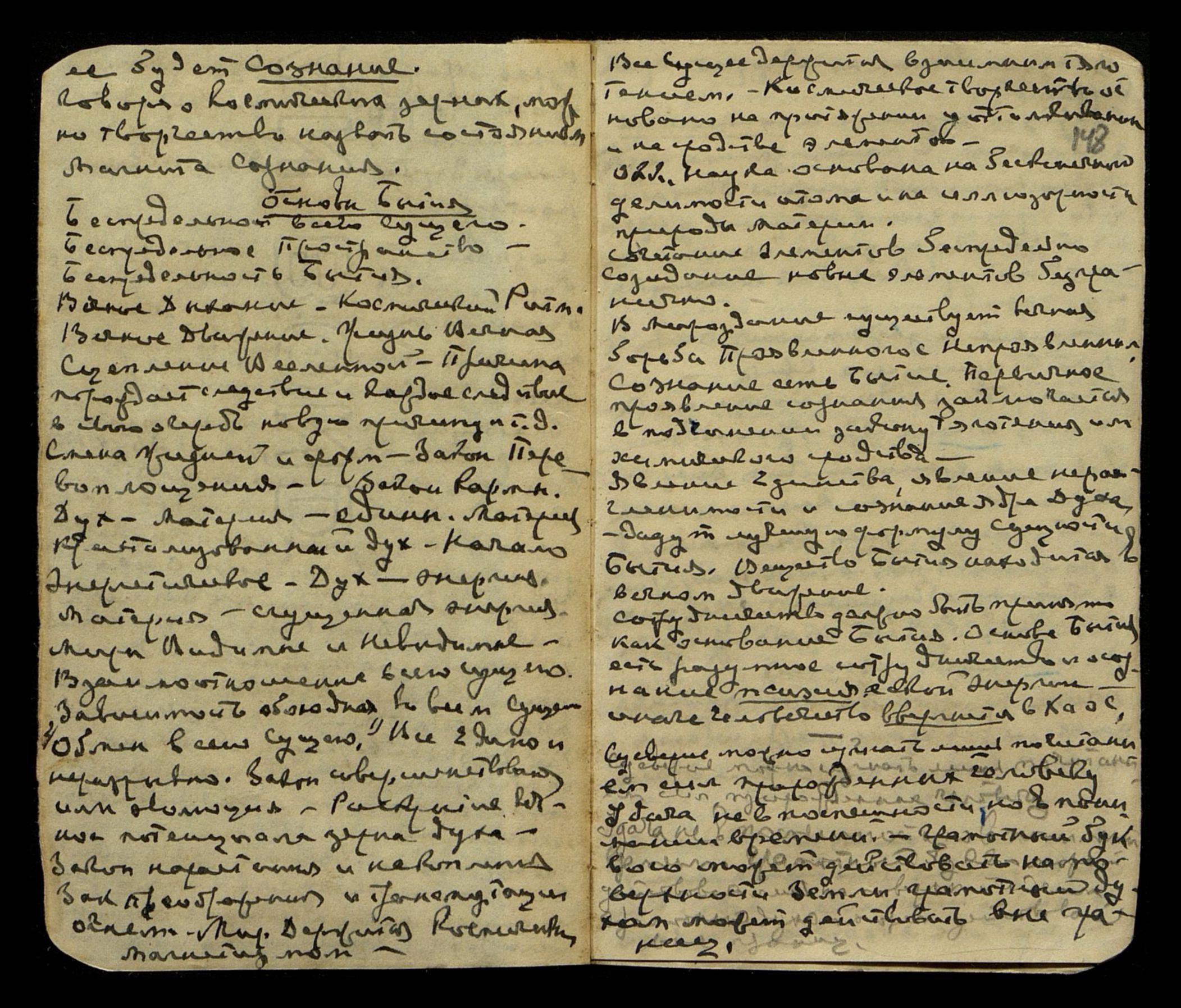 Сколько химических воздействий могут пробудить отдельные свойства организмов, кот[орые] возникают и могут временно исчезнуть. Только осознание переменных пространств[енных] токов может объяснить происходящие изменения в организме. Вы знаете, что зрение и слух, и все чувствования изменяются под воздействием токов. Такие колебания происходят не только в явленные сроки, но вне человеческих рассуждений.