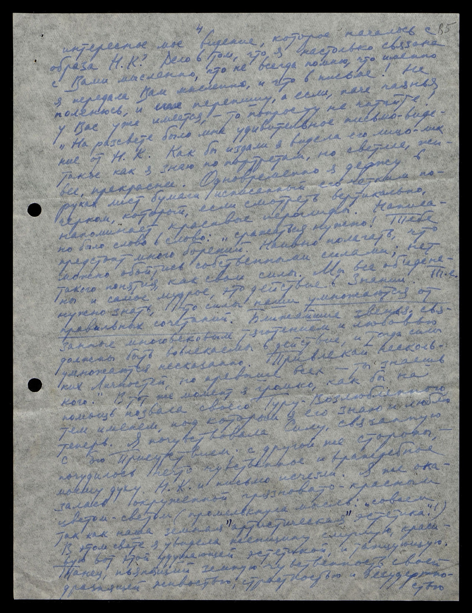 интересное моё видение, которое началось с образа Н[иколая] К[онстантиновича]? Дело в том, что я настолько связана с Вами мысленно, что не всегда помню, что именно я передала Вам мысленно и что в письме! Не поленюсь и перепишу, а если, паче чаянья, у Вас уже имеется, то попросту не читайте!