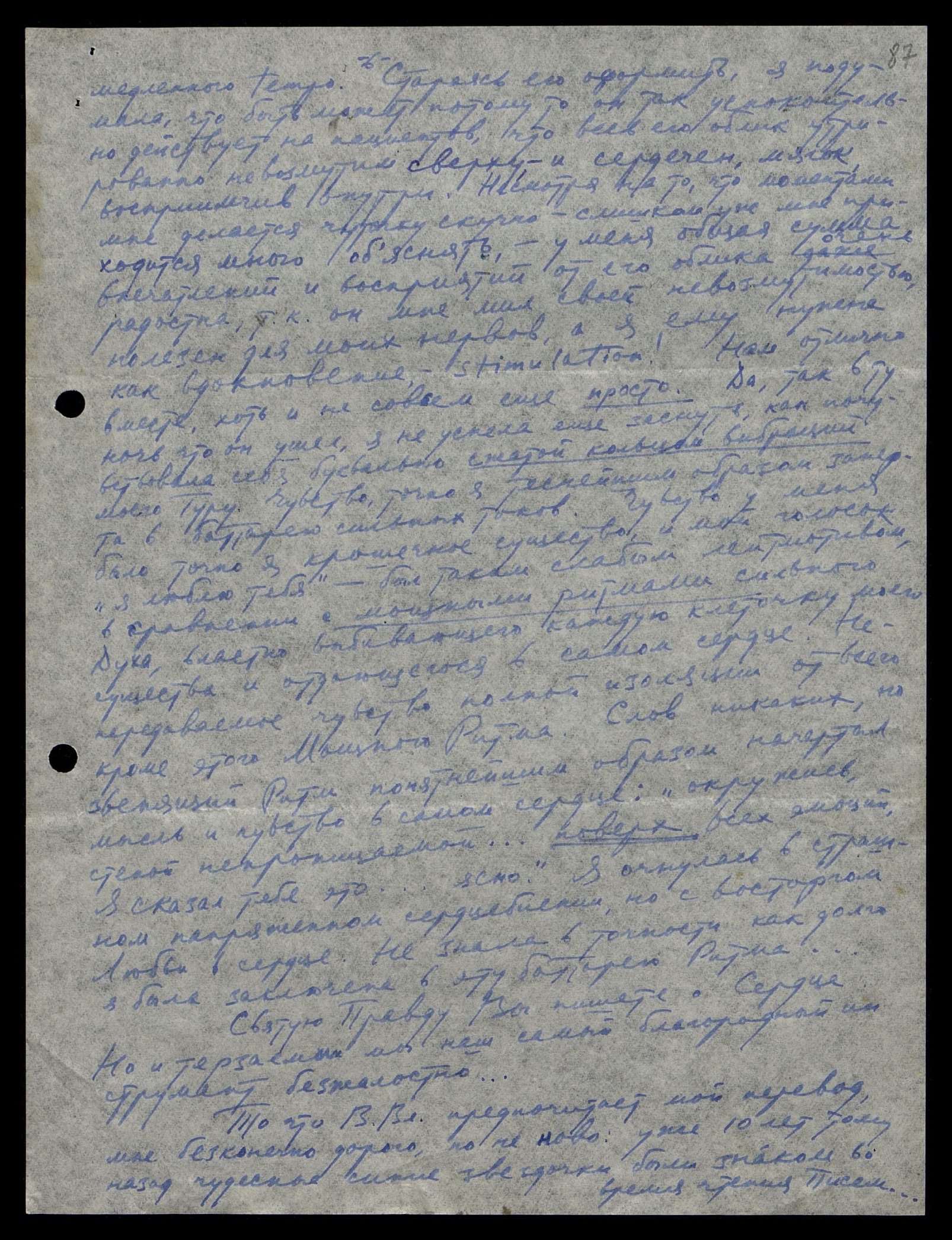 То, что В[еликий] Вл[адыка] предпочитает мой перевод, мне бесконечно дорого, но не ново: уже 10 лет тому назад чудесные синие звёздочки, были знаком во время чтения Писем…