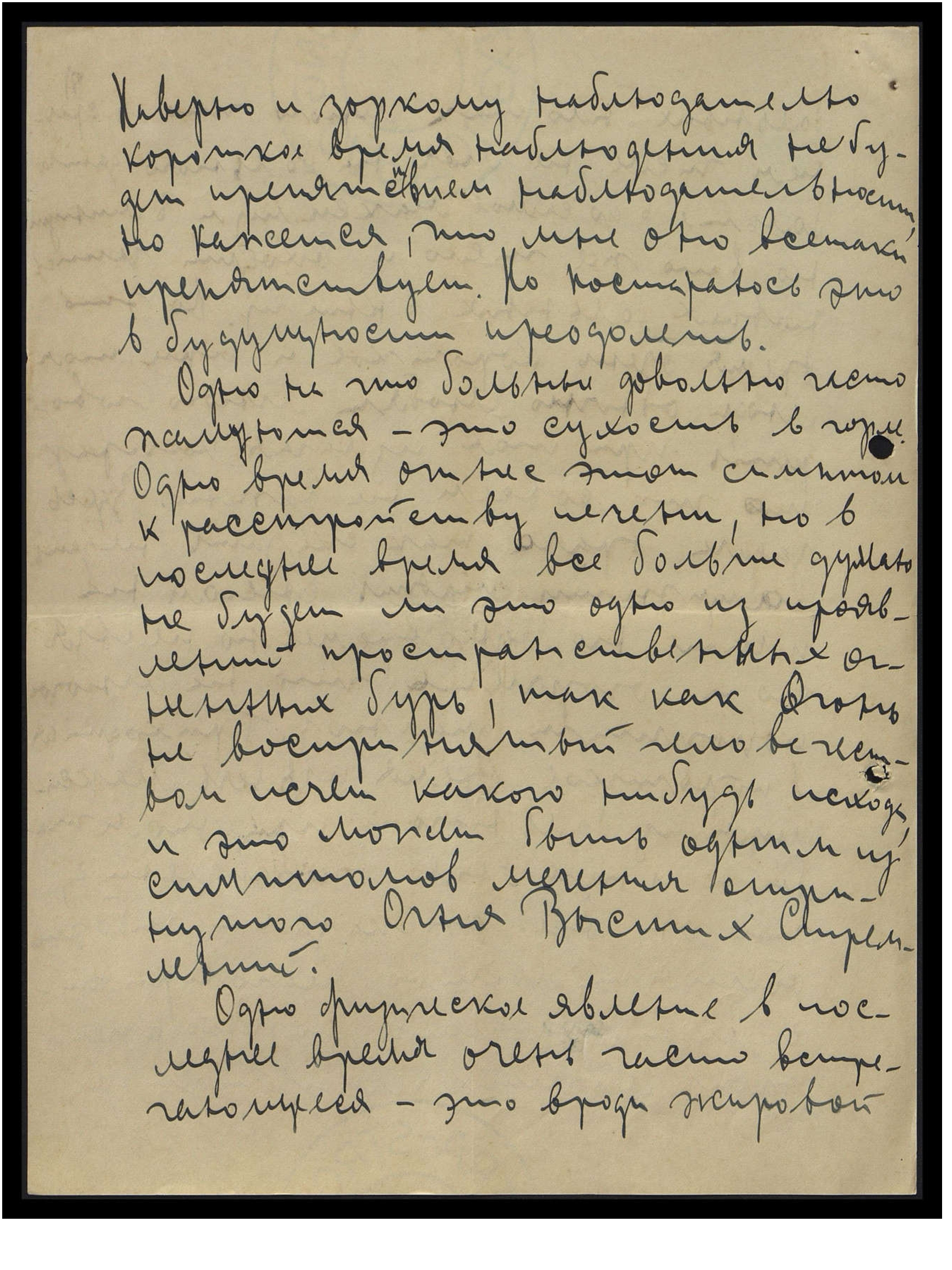 Одно неприятное обстоятельство для меня, так как умер министр народного благополучия Рубулис, а он был бремзой* для Др. Алка, так как не давал полного хода всем его злоумышлениям. Говорят, что он очень долго сопротивлялся тому, чтобы меня подали бы на суд и только с большим трудом удалось его уговорить на этот поступок. А без него, может быть, Алк мне просто административно бы запретил бы давать лекарства, и что я мог бы сказать против него. Слышно, что Алк очень хочет стать этим министром, но сколько я осведомился, то его шансы невелики.