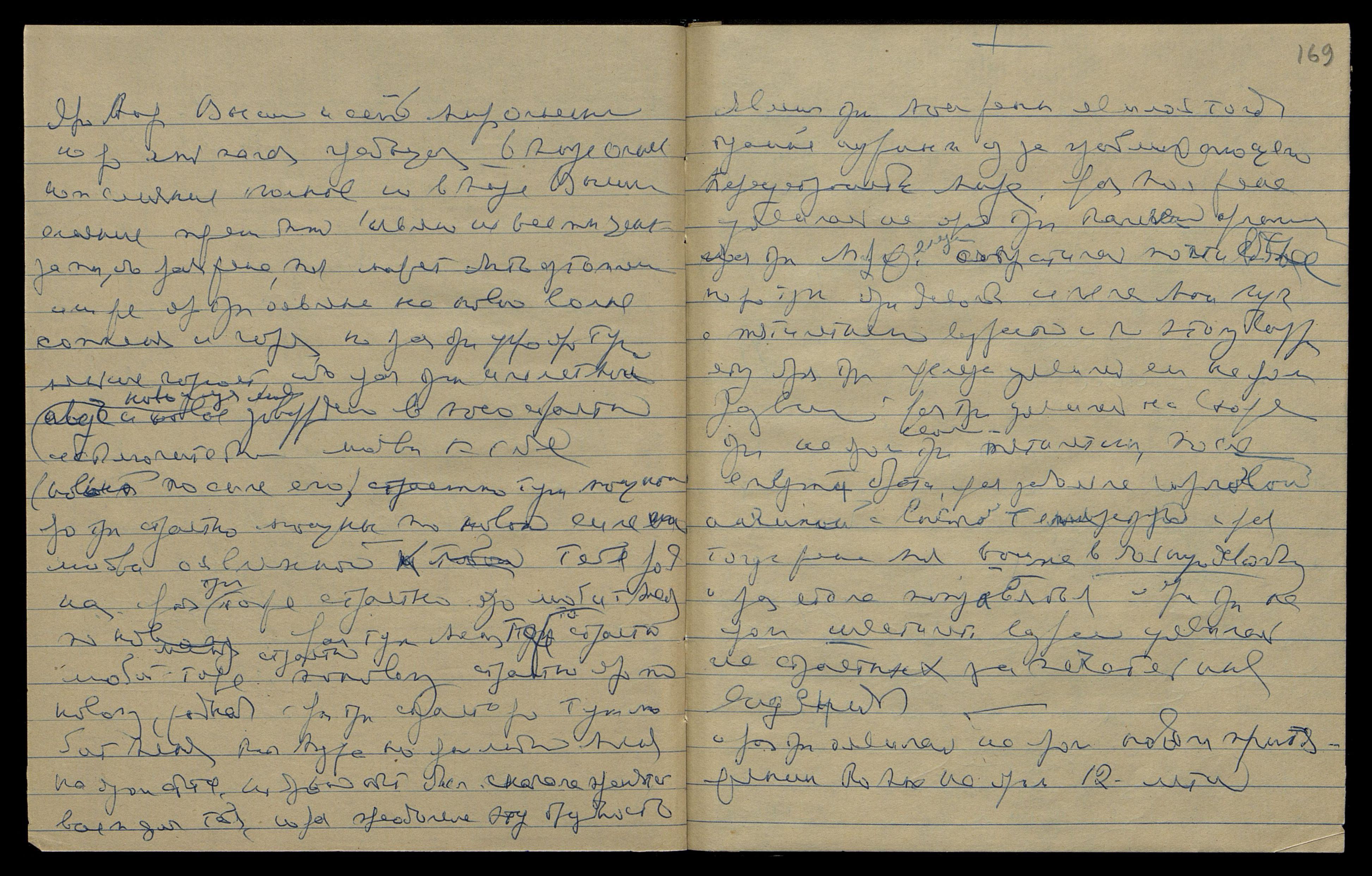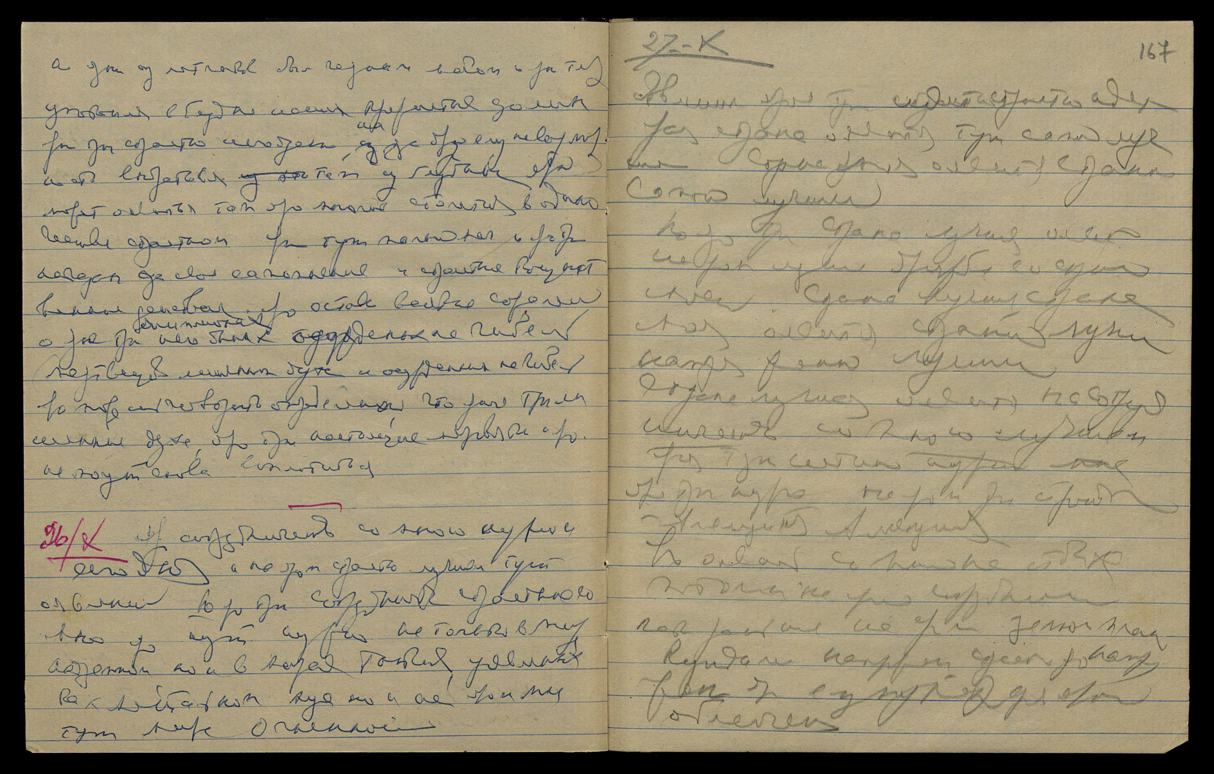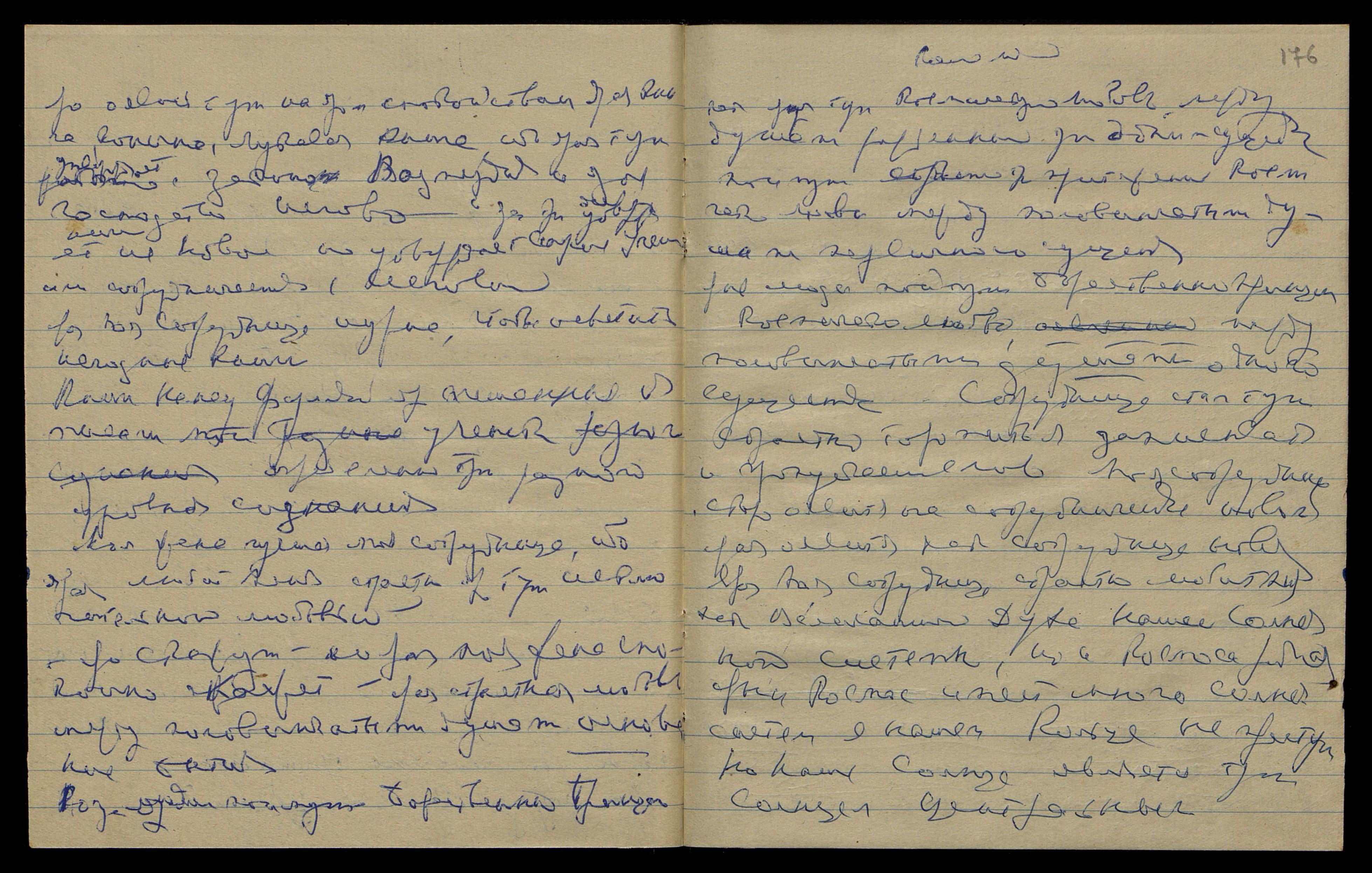 Яро спешу сообщить, что я имею первое пись[мо] и третье из пис[ем] 1935 г., 42, но не 43 не был[о] прислан[о], но нет второго. Хотелось бы Мне успеть их напечатать до отъезда.