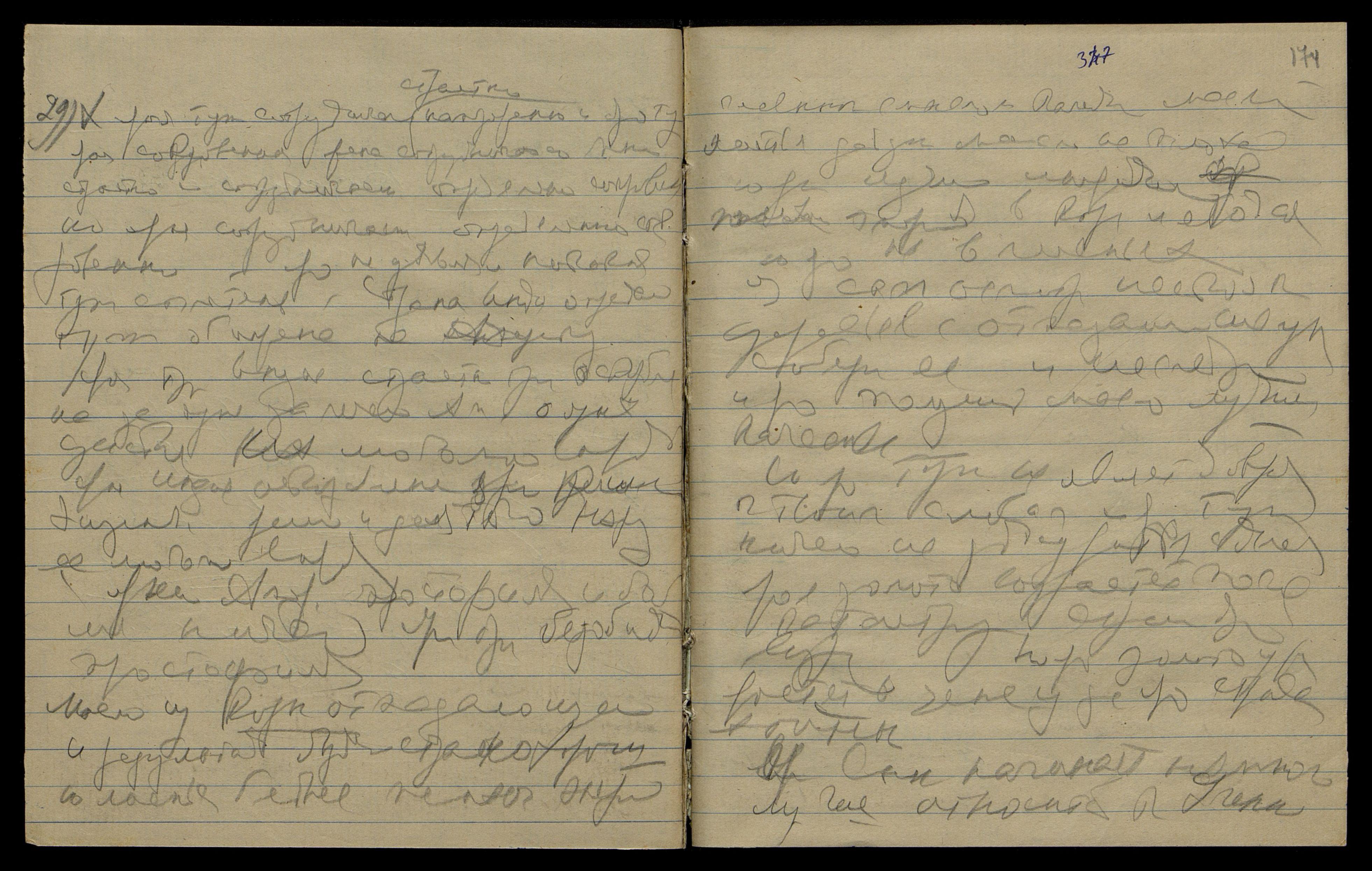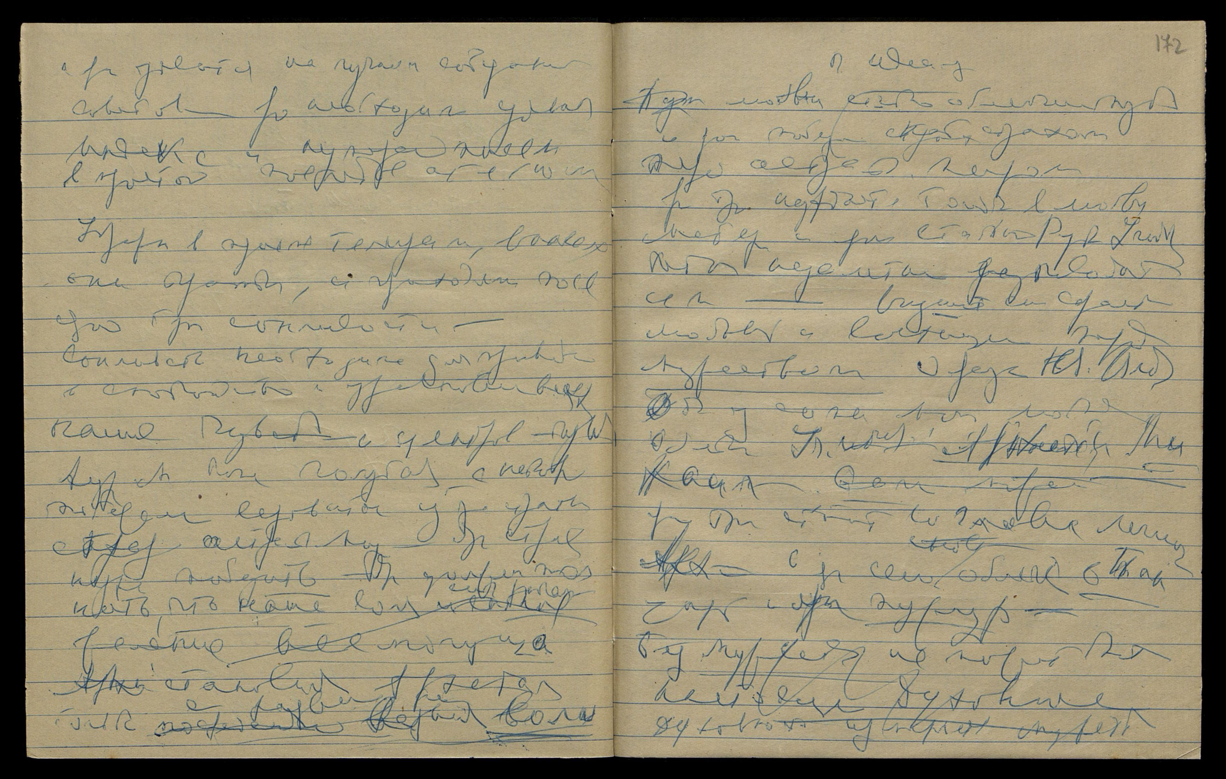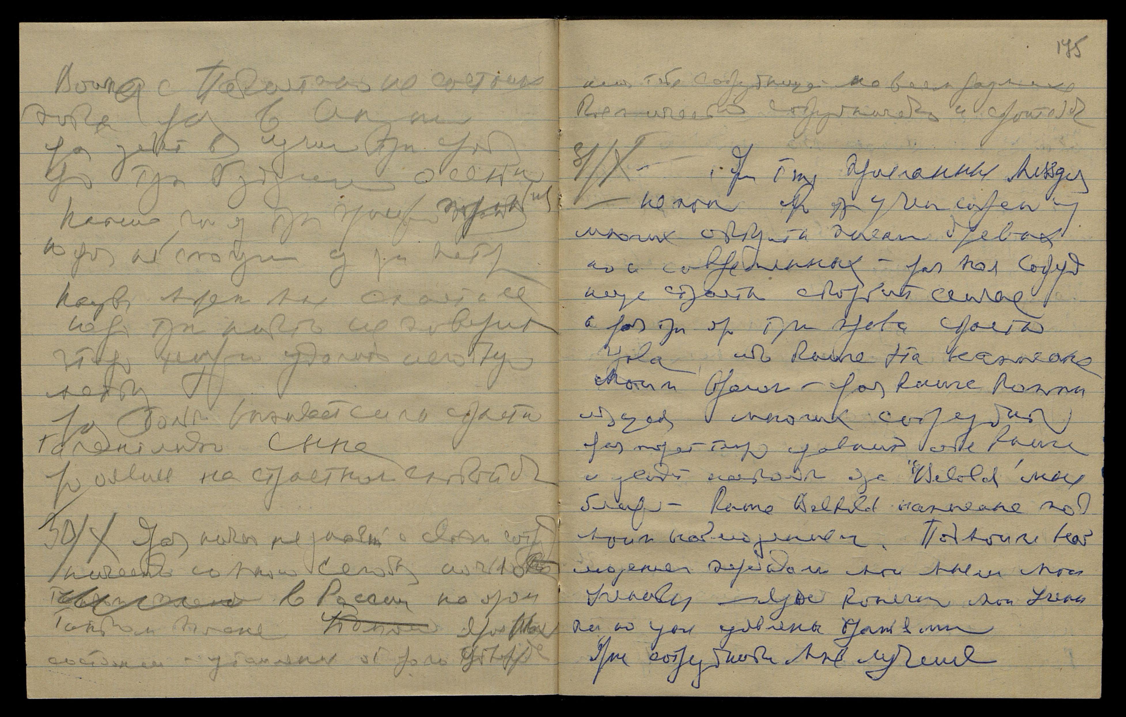 Яро спешу сообщить, что я имею первое пись[мо] и третье из пис[ем] 1935 г., 42, но не 43 не был[о] прислан[о], но нет второго. Хотелось бы Мне успеть их напечатать до отъезда.