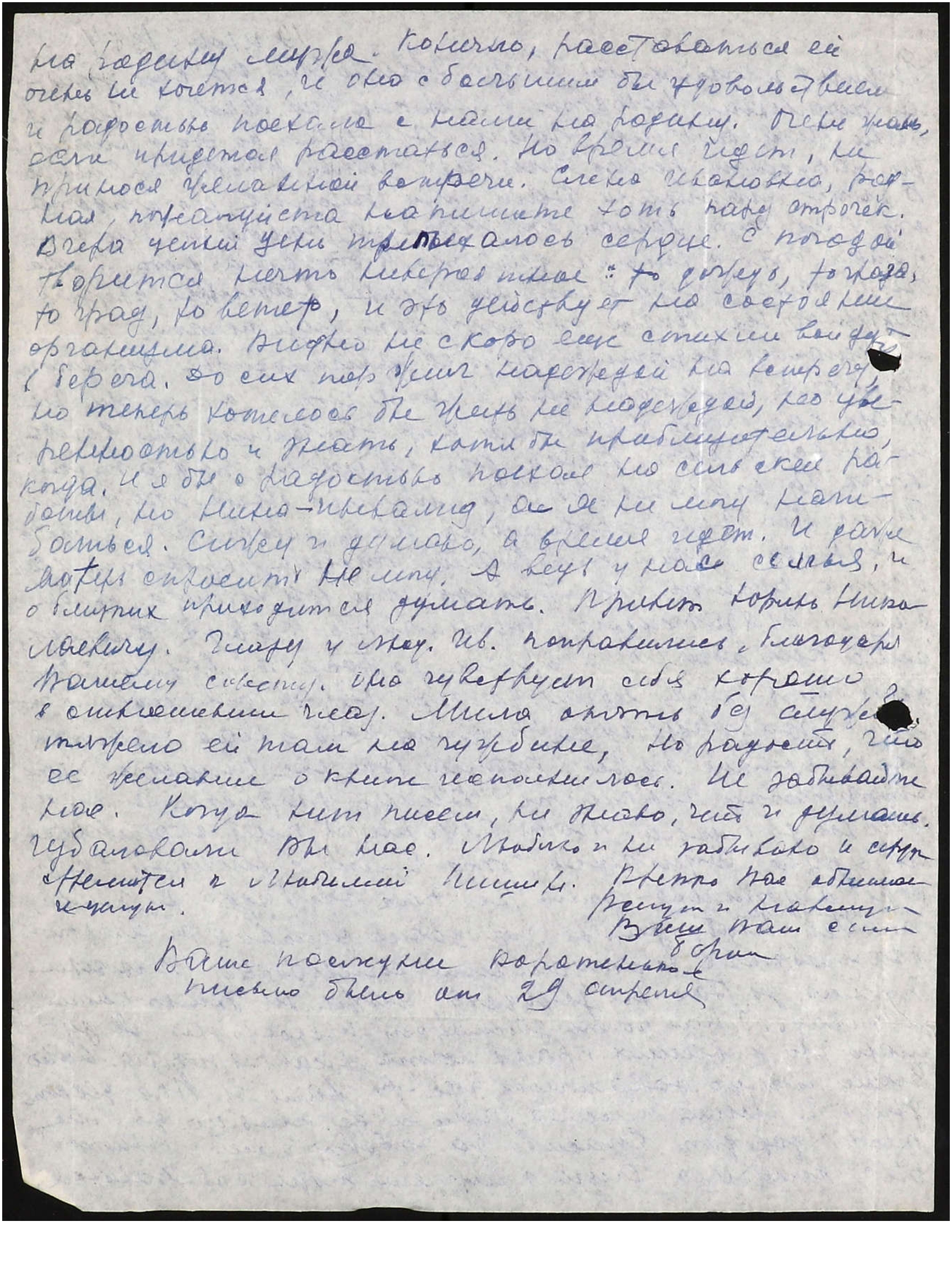 Ваше последнее коротенькое письмо было от 29 апреля.