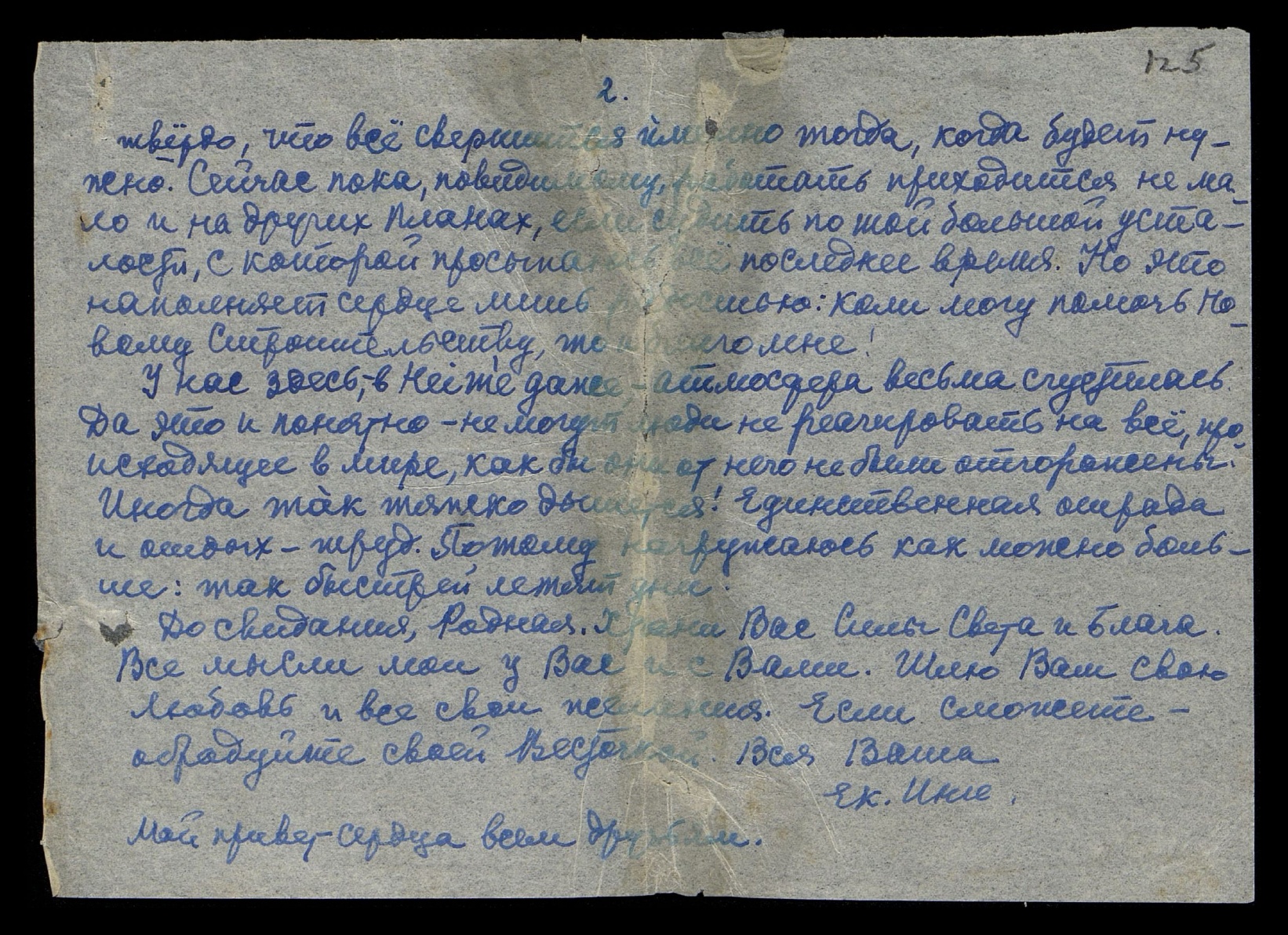 Ну, всего Светлого и радостного желаю Вам и шлю свою самую нежную и самую горячую Любовь и Вам, и В[еликому] Вл[адыке] шлю свое сердце и каждую мысль. И большое, большое спасибо за всё - за Заботу, и за Доверие, и за Ласку.