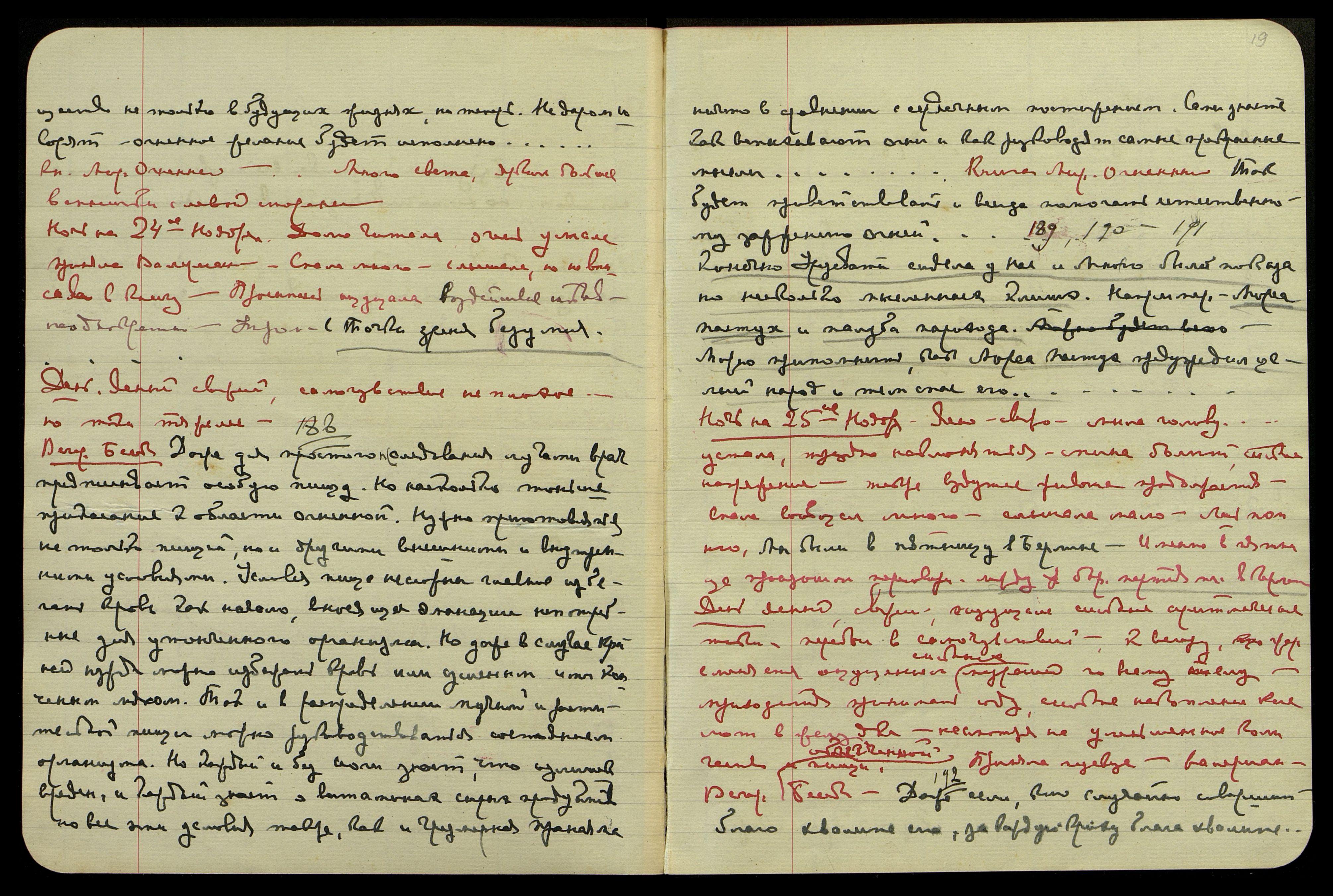 Ночь на 25-е ноября. Ясно, свежо, мыла голову... устала, трудно наклоняться, спина болит, сильное напряжение, также вздутие живота продолжается. Спала вообщем много, слышала мало. Лишь помню: "Мы были в пятницу в Берлине". Именно в пятницу произошли переговоры между бор[ющимися] партиями в Германии.