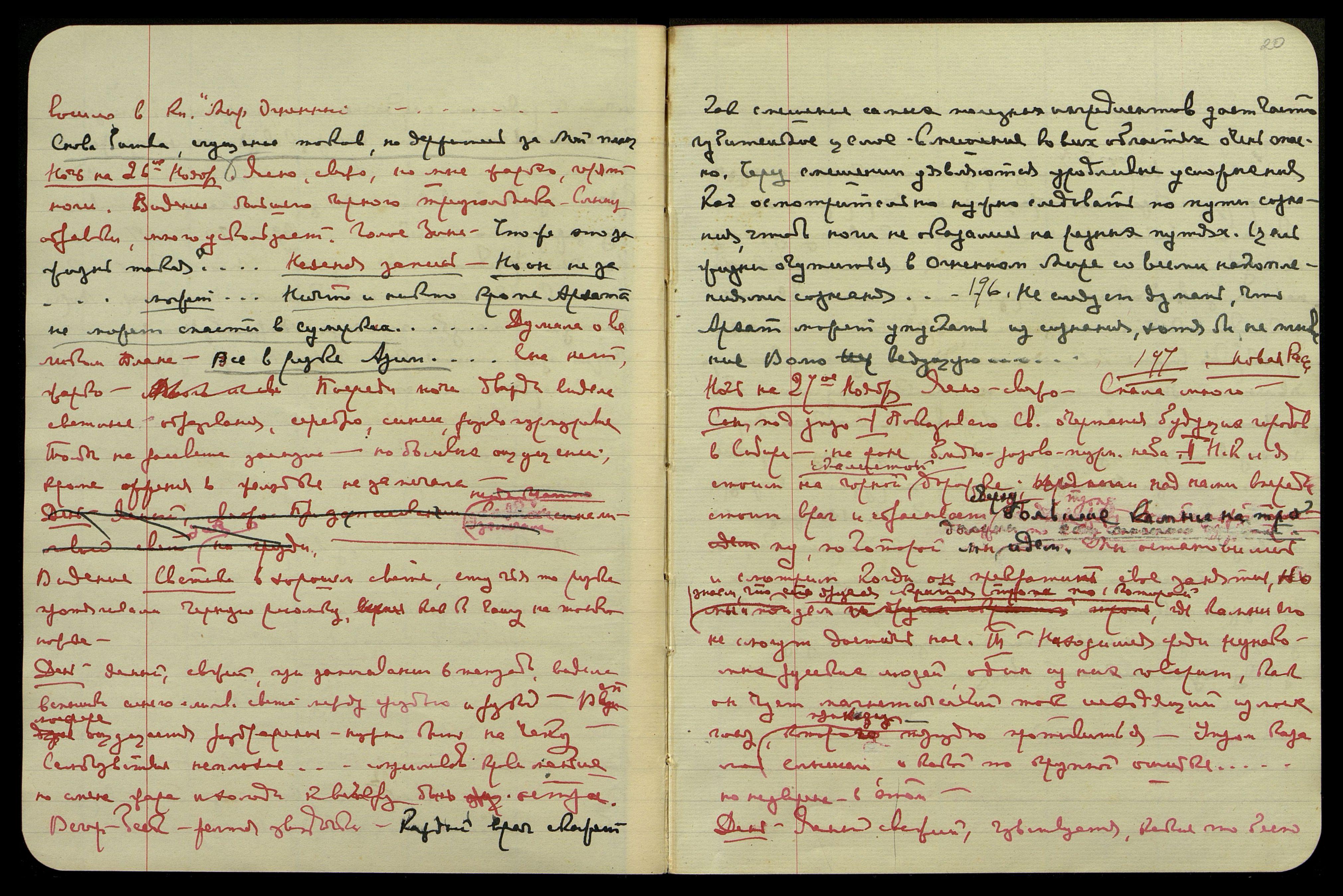 Ночь на 1-е декабря. Ясно, свежо, приняла много валериана. Думы о битве − маленькие серебр[яные] звездочки, заснула и проснулась от двойного пульса, тяжело, видение многих черных осколков в атмосфере. "Центр воронки в
